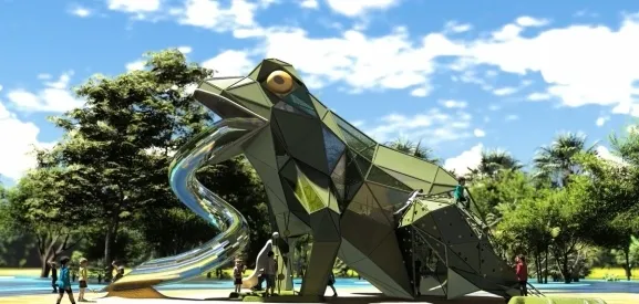 La renovación del parque de Würzburg contará con una nueva seña de identidad: una estructura de juego con forma de rana de casi 7 metros de altura y 170 metros cuadrados de planta. Inspirado en el icónico anfibio de la fachada de la Universidad de Salamanca, este elemento poligonal de color verde tendrá capacidad para más de 200 menores. El diseño incluye un tobogán tubular que simula la lengua, dos toboganes abiertos y un interior equipado con tres plataformas, trepas inclinados y cestas nido, todo ello sobre una base de caucho con forma de nenúfar.