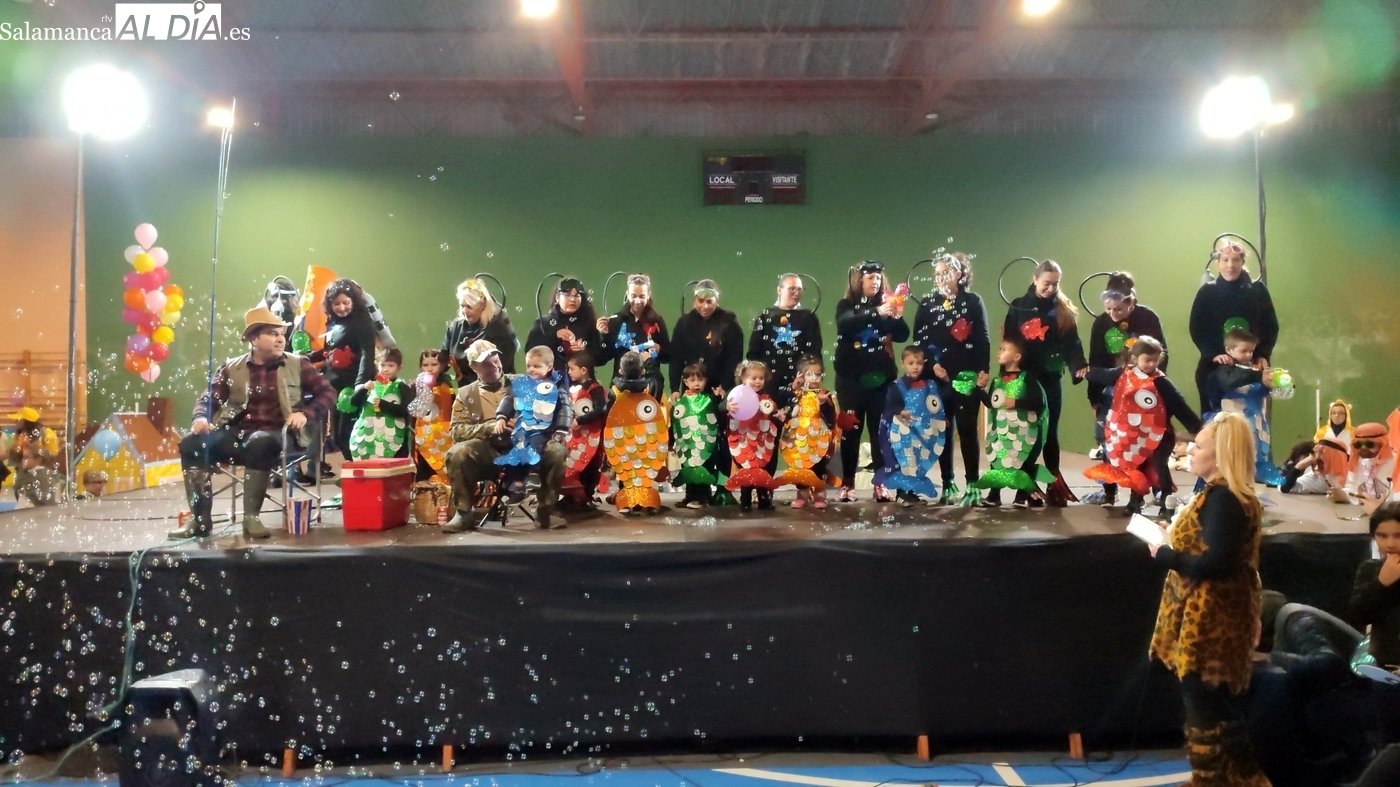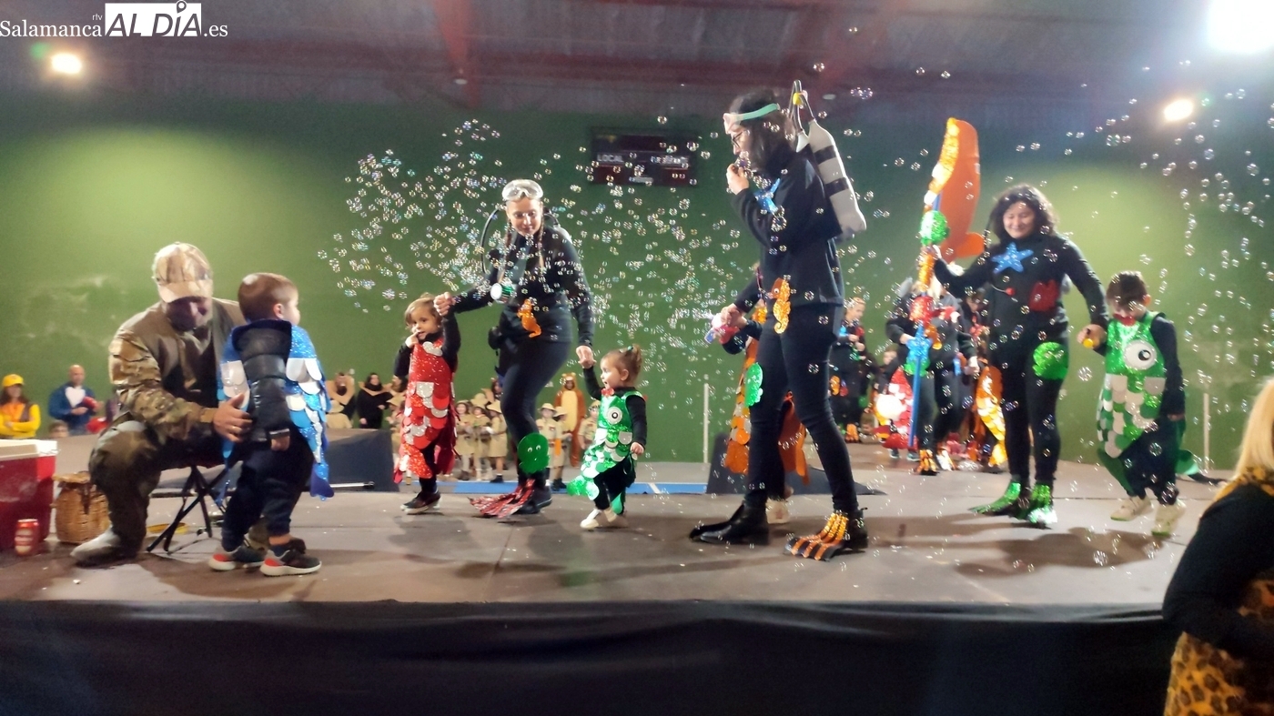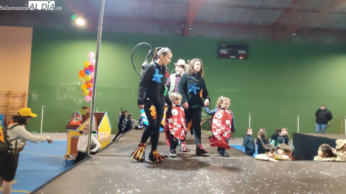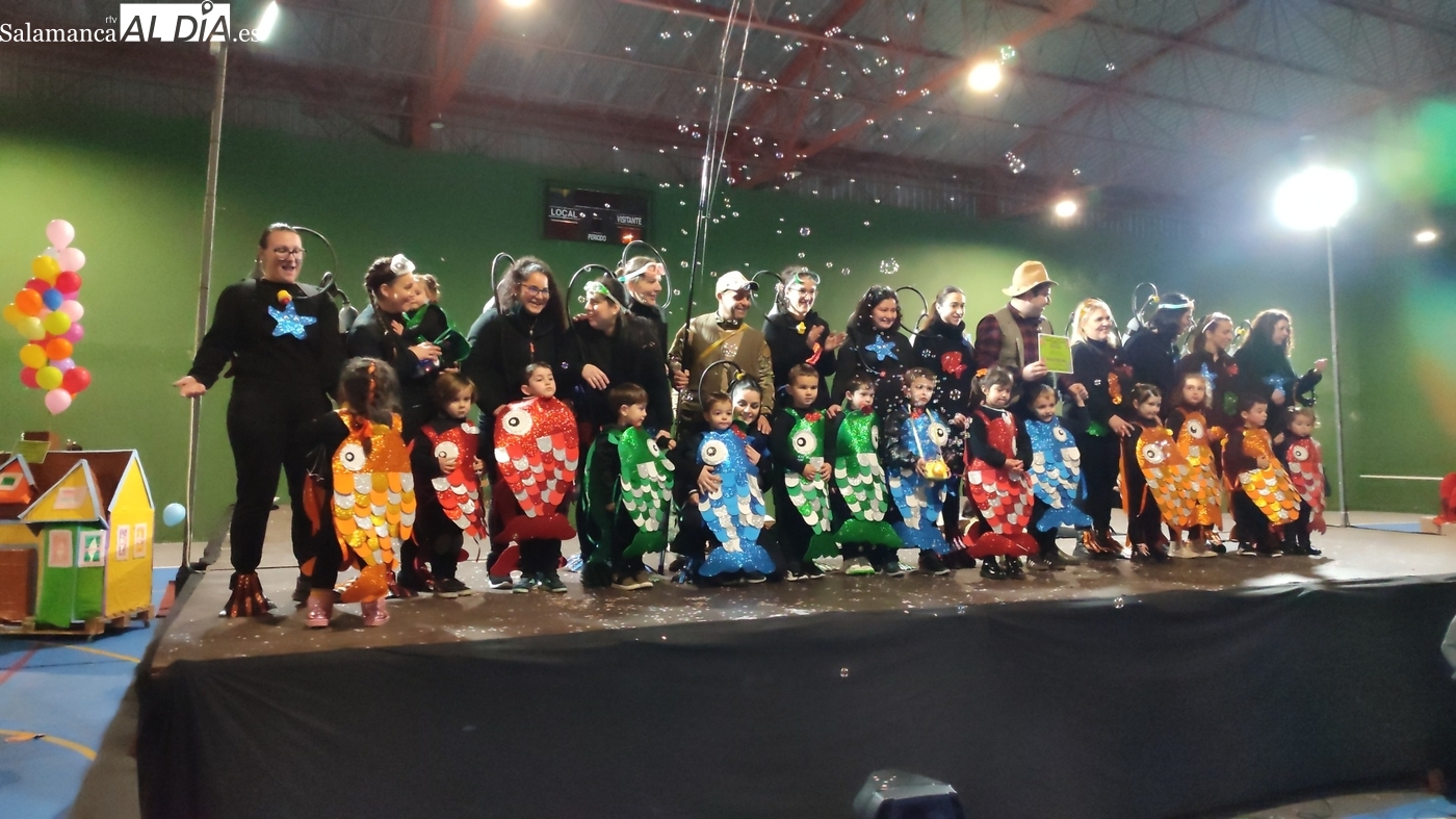 El primer premio, dotado con 150 euros, recayó en el grupo ‘Bajo el mar’, que llenó el escenario de color y fantasía marina. El segundo premio, con una cuantía de 100 euros, fue para la recreación de la película ‘Up’. Los encargados de entregar los galardones fueron los concejales del equipo de Gobierno municipal Nacho Pascua y Jesús Herrero.