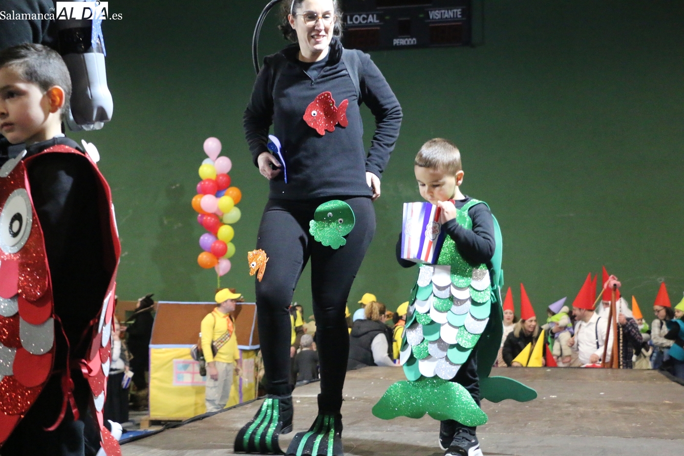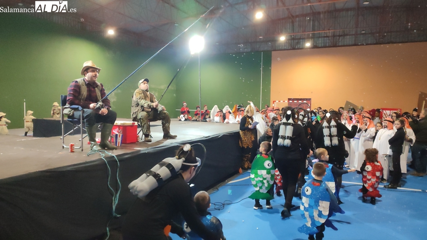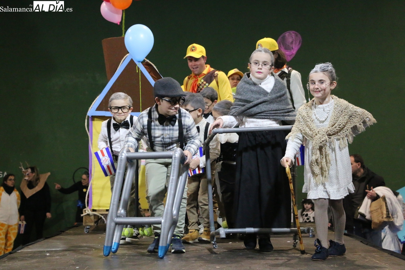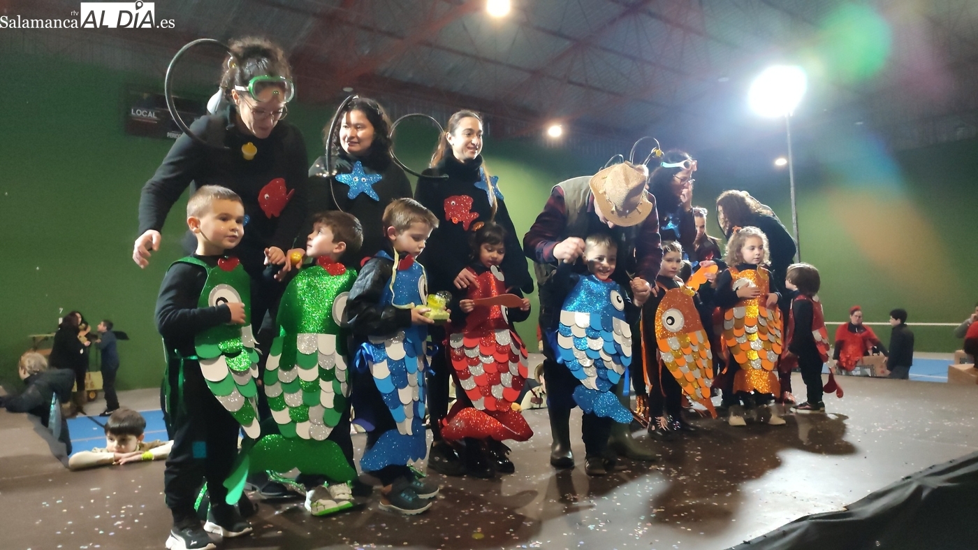 El primer premio, dotado con 150 euros, recayó en el grupo ‘Bajo el mar’, que llenó el escenario de color y fantasía marina. El segundo premio, con una cuantía de 100 euros, fue para la recreación de la película ‘Up’. Los encargados de entregar los galardones fueron los concejales del equipo de Gobierno municipal Nacho Pascua y Jesús Herrero.