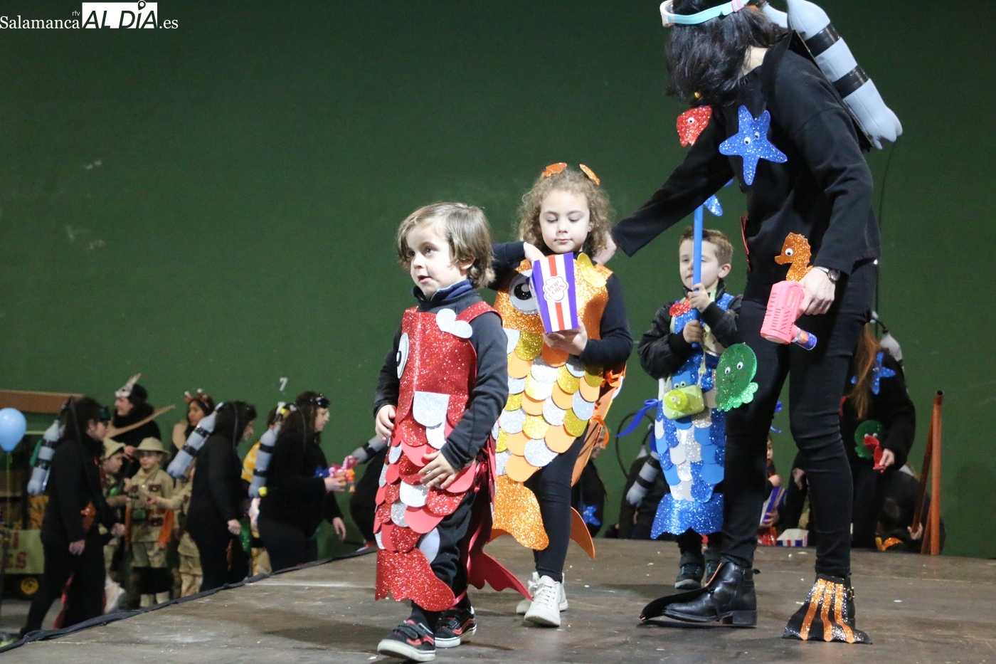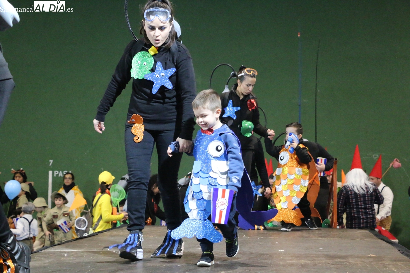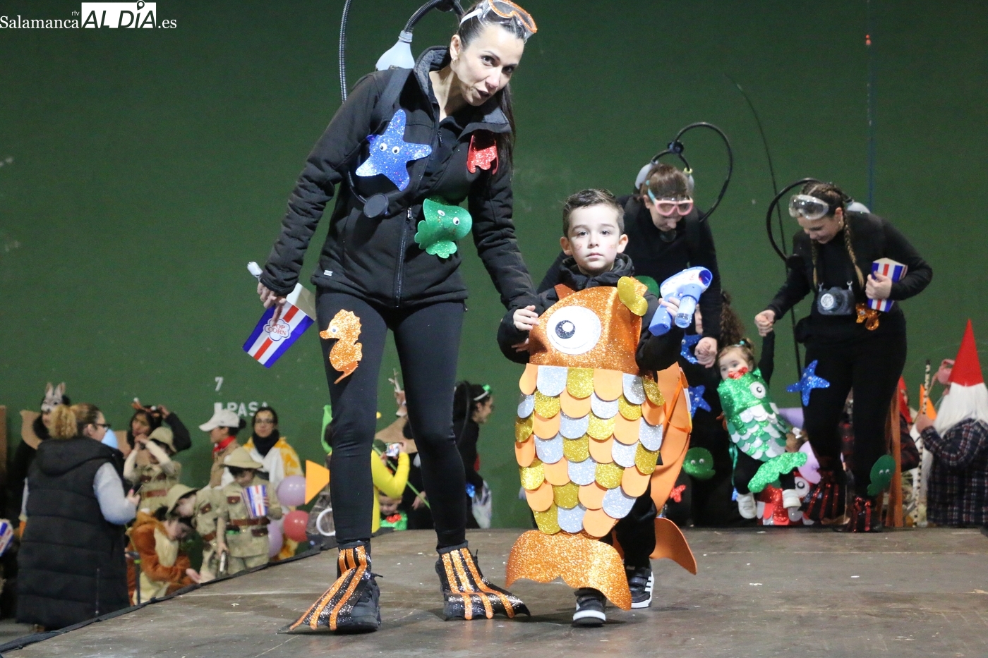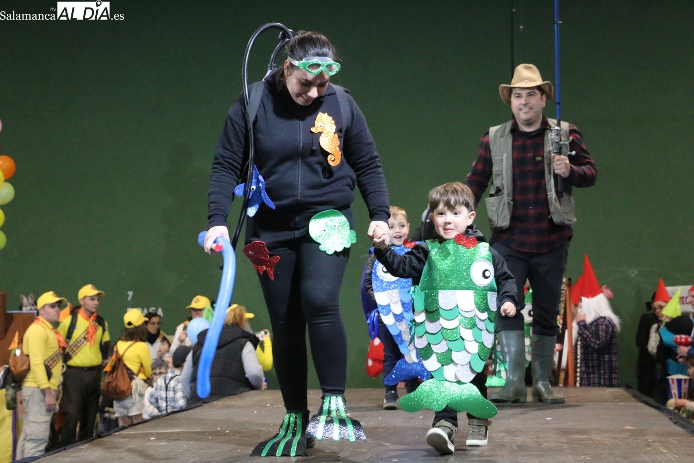 El primer premio, dotado con 150 euros, recayó en el grupo ‘Bajo el mar’, que llenó el escenario de color y fantasía marina. El segundo premio, con una cuantía de 100 euros, fue para la recreación de la película ‘Up’. Los encargados de entregar los galardones fueron los concejales del equipo de Gobierno municipal Nacho Pascua y Jesús Herrero.