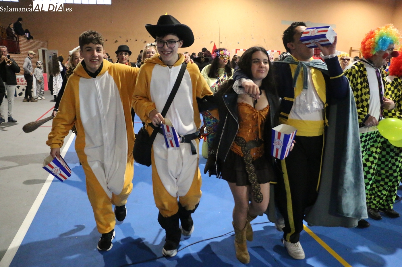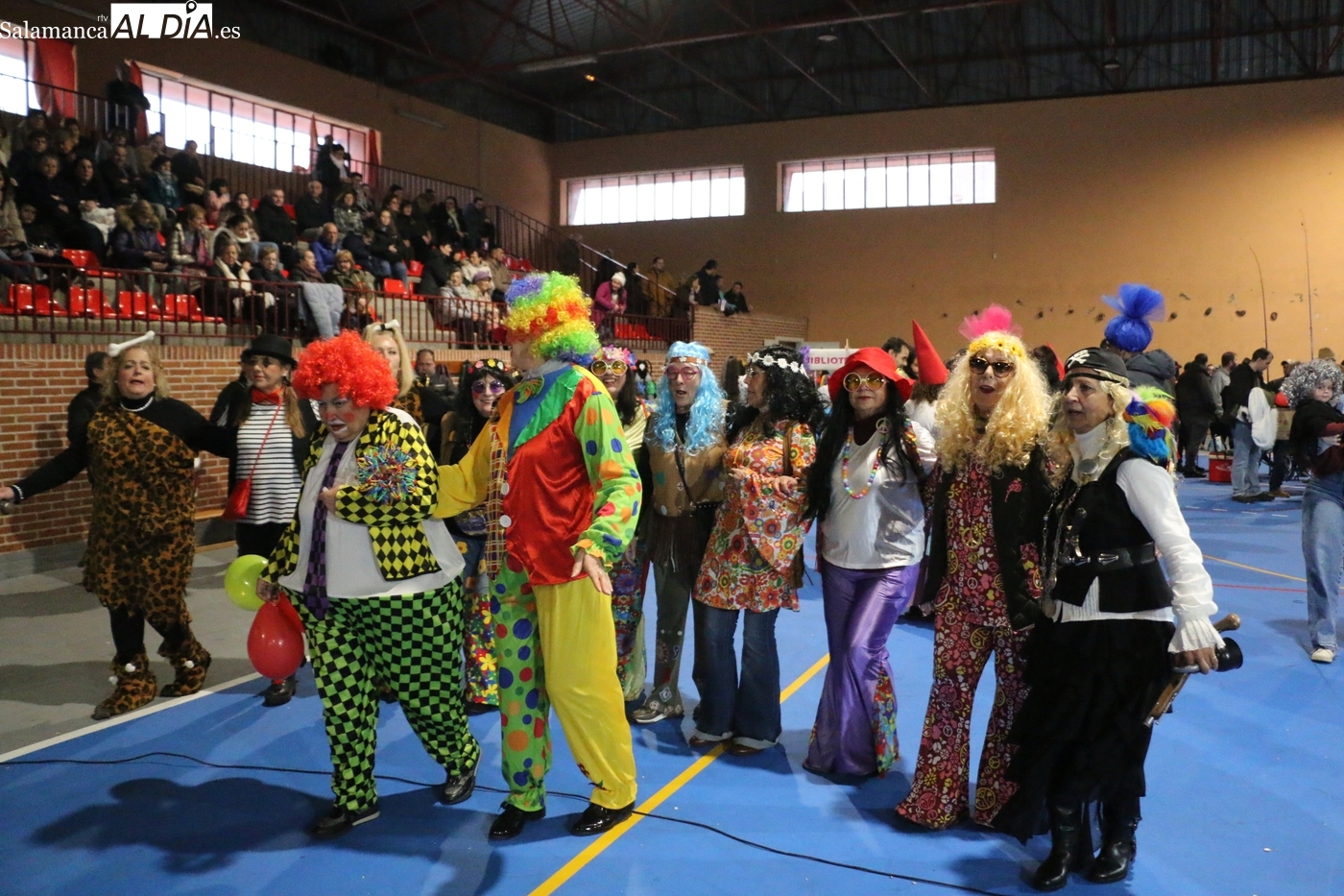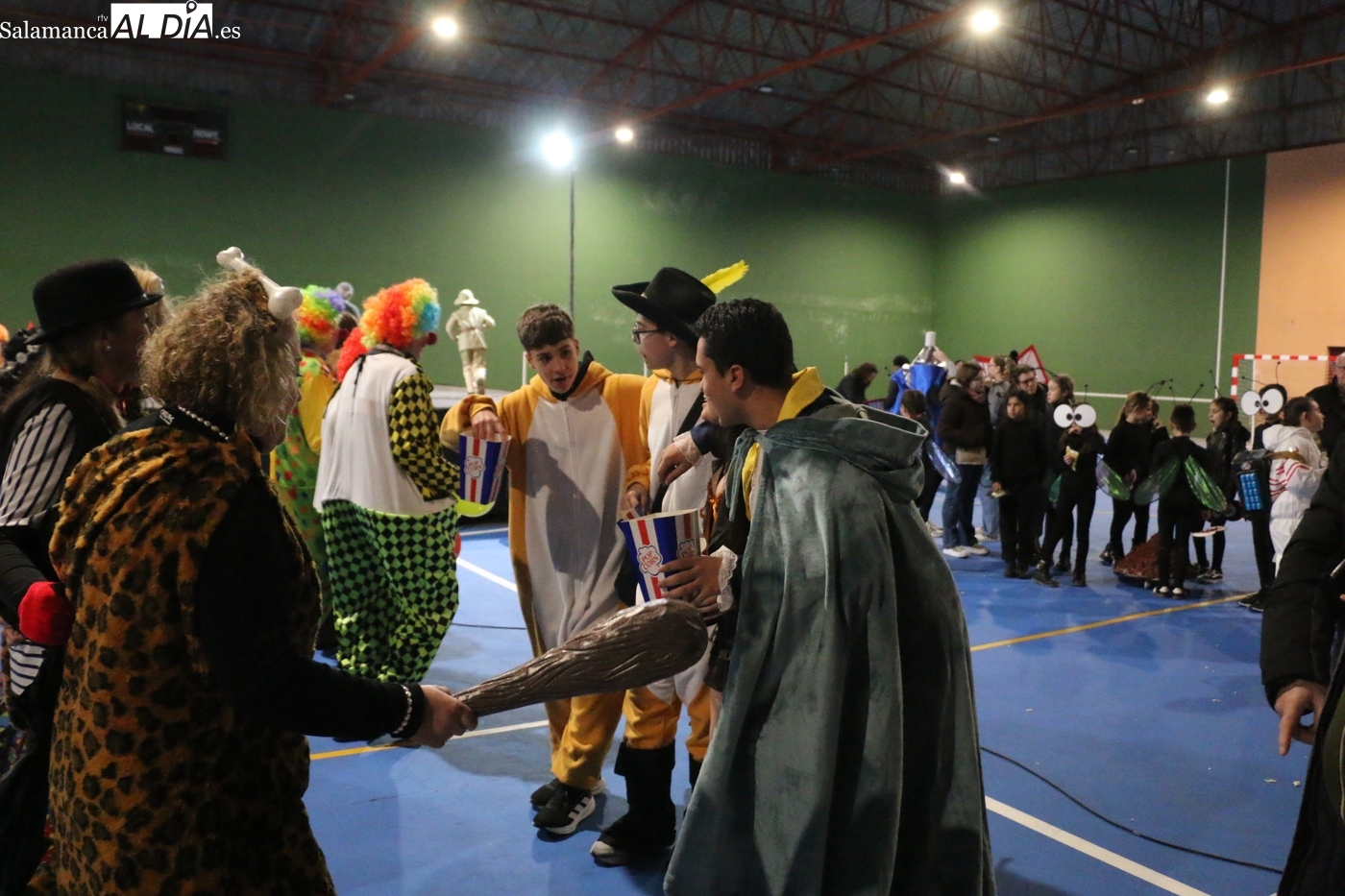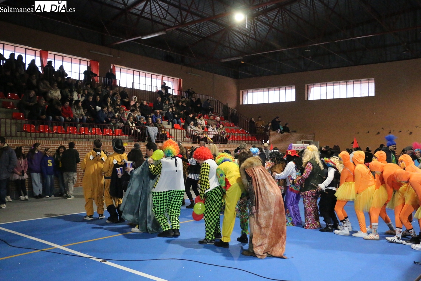 La climatología adversa no ha logrado deslucir la celebración del Lunes de Carnaval en la capital del Abadengo. Aunque la lluvia obligó a modificar los planes iniciales y trasladar el desfile y el concurso de la Plaza Mayor al pabellón polideportivo, la respuesta de los vecinos de Lumbrales ha sido ejemplar. El recinto cubierto ha registrado una excelente entrada, acogiendo a un público entregado que no quiso perderse el colorido espectáculo organizado por el Ayuntamiento y amenizado musicalmente por la charanga Al Rojo.