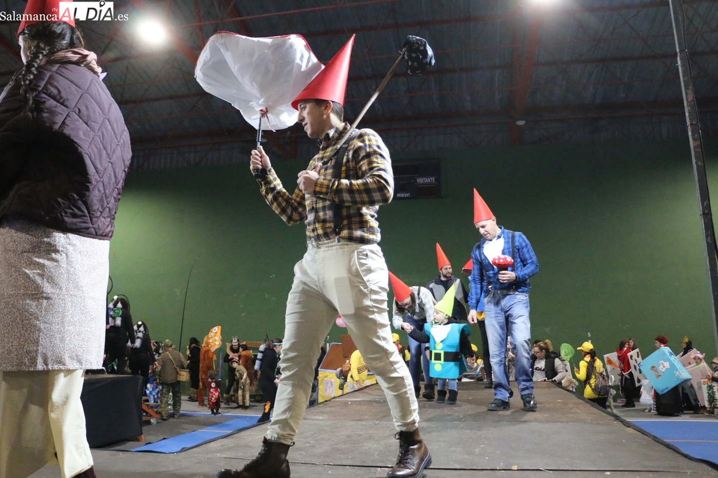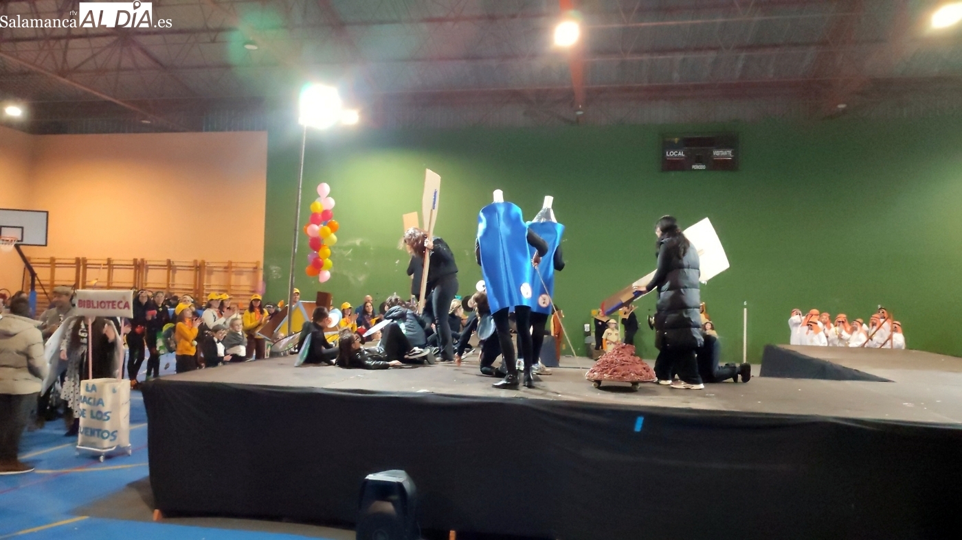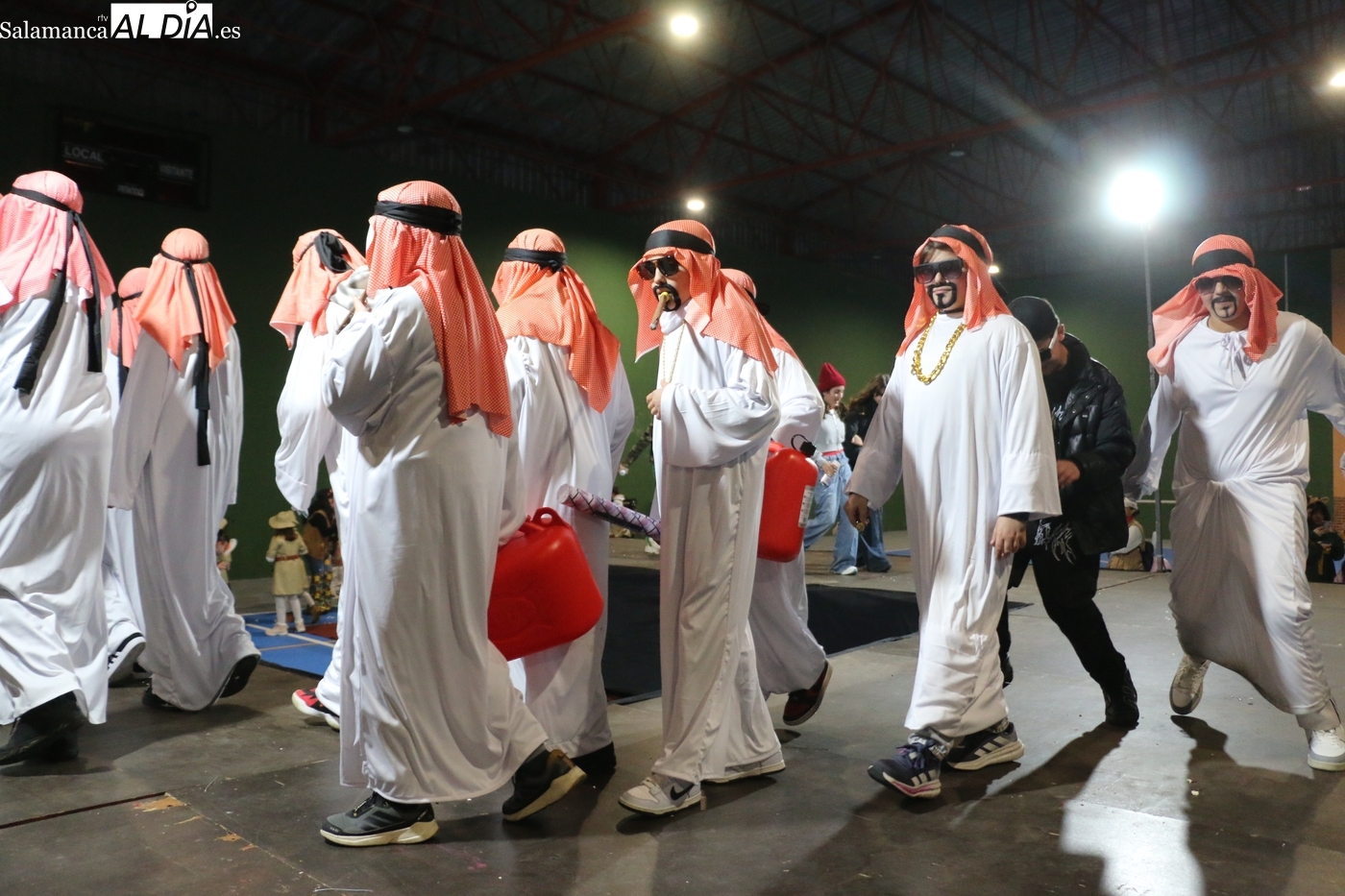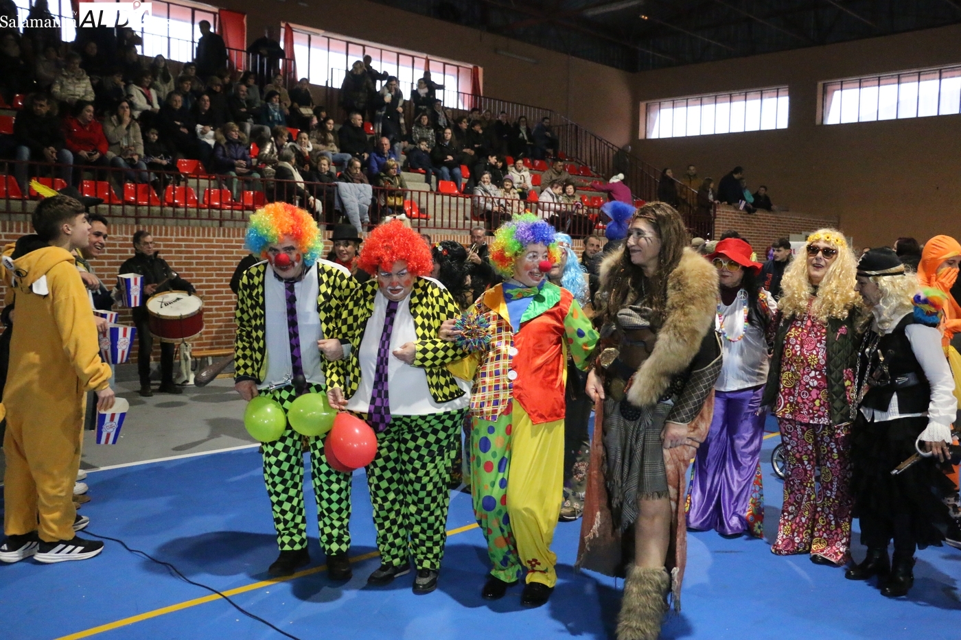 La climatología adversa no ha logrado deslucir la celebración del Lunes de Carnaval en la capital del Abadengo. Aunque la lluvia obligó a modificar los planes iniciales y trasladar el desfile y el concurso de la Plaza Mayor al pabellón polideportivo, la respuesta de los vecinos de Lumbrales ha sido ejemplar. El recinto cubierto ha registrado una excelente entrada, acogiendo a un público entregado que no quiso perderse el colorido espectáculo organizado por el Ayuntamiento y amenizado musicalmente por la charanga Al Rojo.