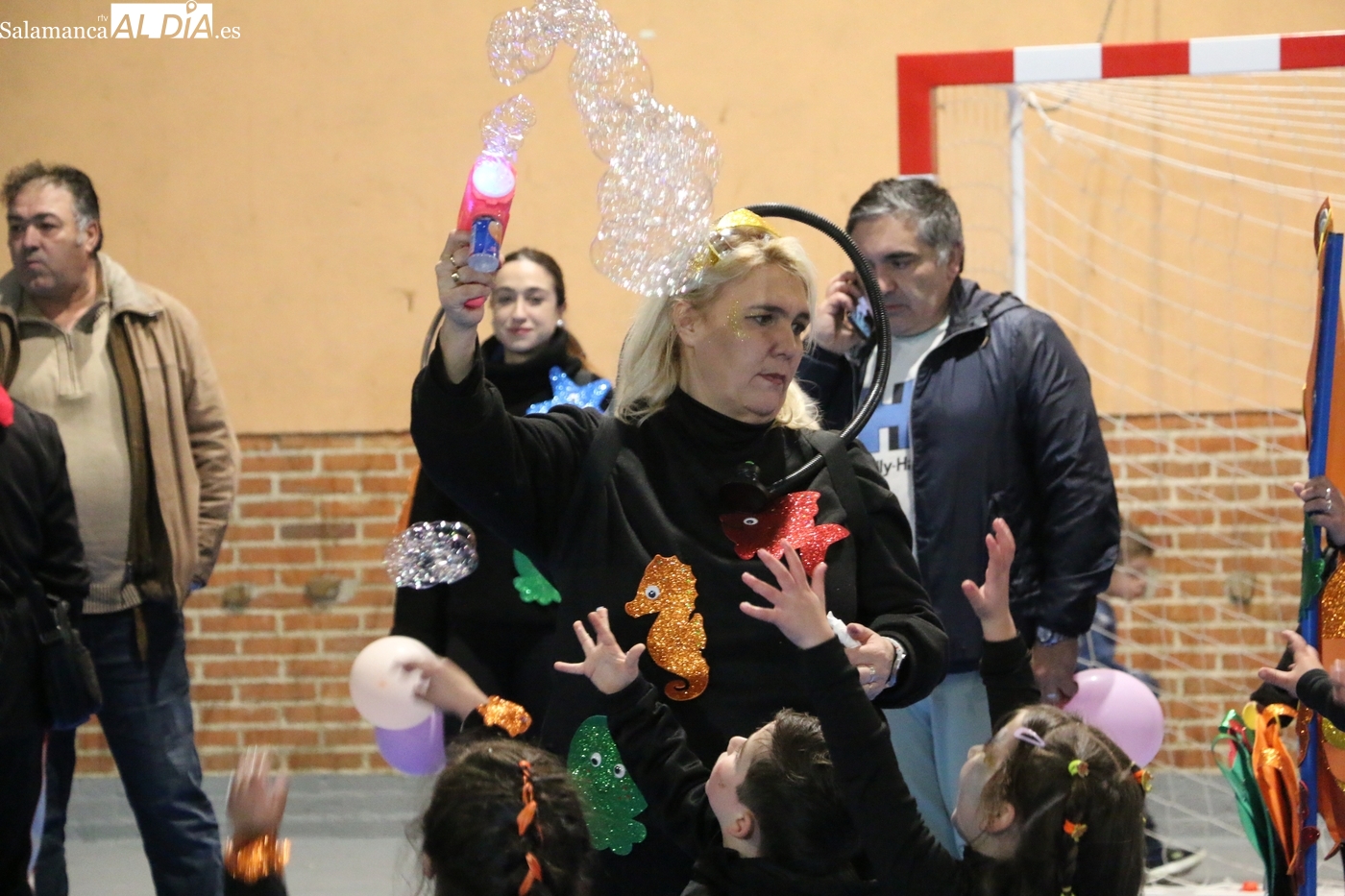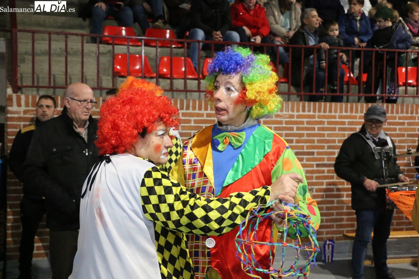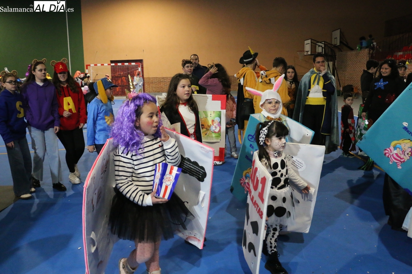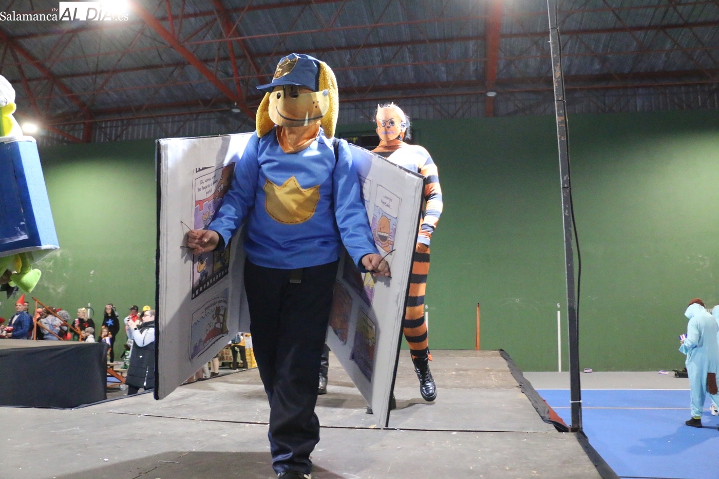 La climatología adversa no ha logrado deslucir la celebración del Lunes de Carnaval en la capital del Abadengo. Aunque la lluvia obligó a modificar los planes iniciales y trasladar el desfile y el concurso de la Plaza Mayor al pabellón polideportivo, la respuesta de los vecinos de Lumbrales ha sido ejemplar. El recinto cubierto ha registrado una excelente entrada, acogiendo a un público entregado que no quiso perderse el colorido espectáculo organizado por el Ayuntamiento y amenizado musicalmente por la charanga Al Rojo.