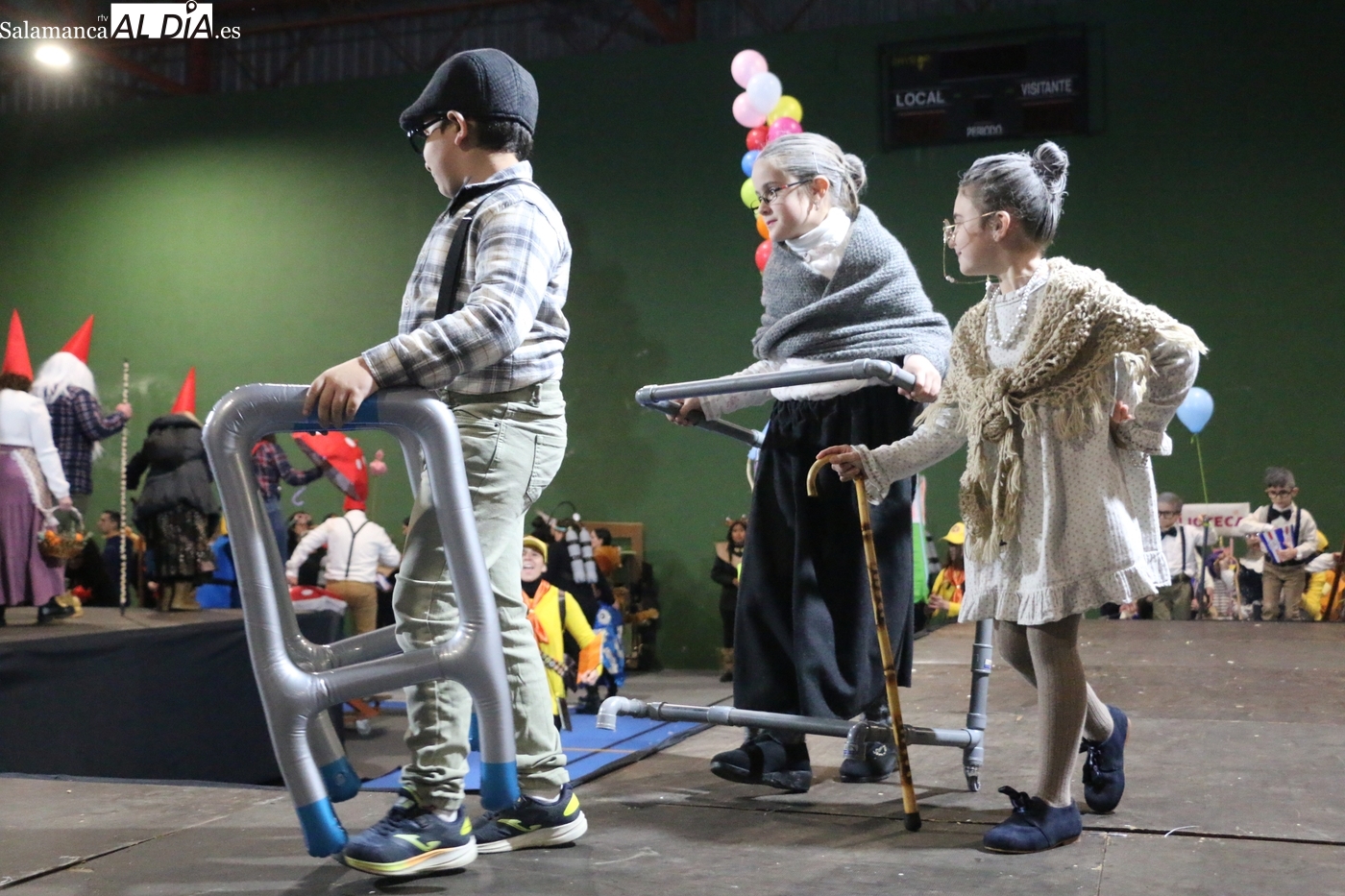 El cambio de ubicación permitió que tanto pequeños como mayores disfrutaran de la fiesta a resguardo, convirtiendo el polideportivo en el epicentro de la alegría carnavalera. El acto central de la tarde fue el concurso de disfraces, que en esta edición de 2026 ha destacado por la alta participación y la calidad de las propuestas. Un total de ocho grupos se inscribieron para optar a los galardones, ofreciendo cada uno de ellos una divertida representación que buscó la complicidad y el aplauso de los asistentes.