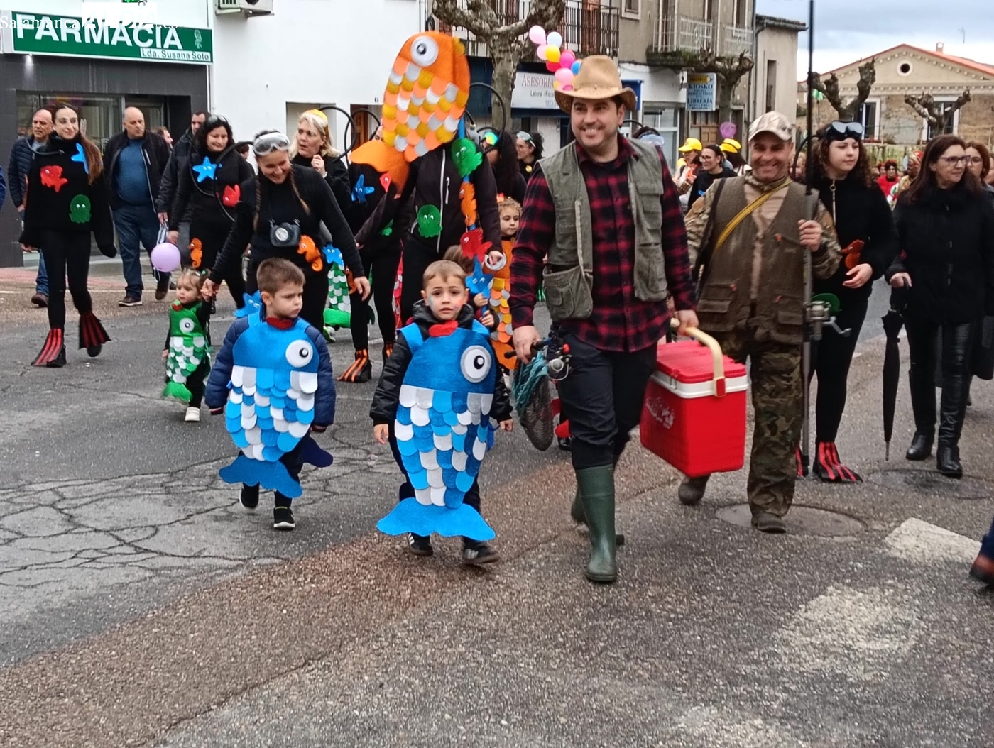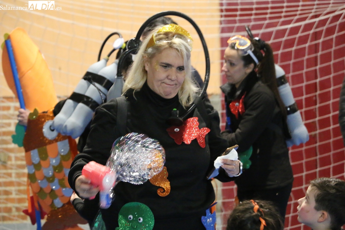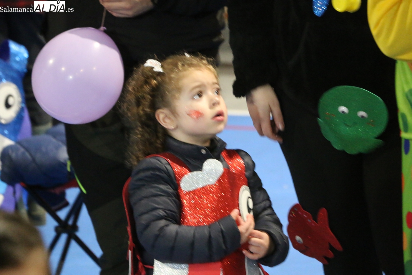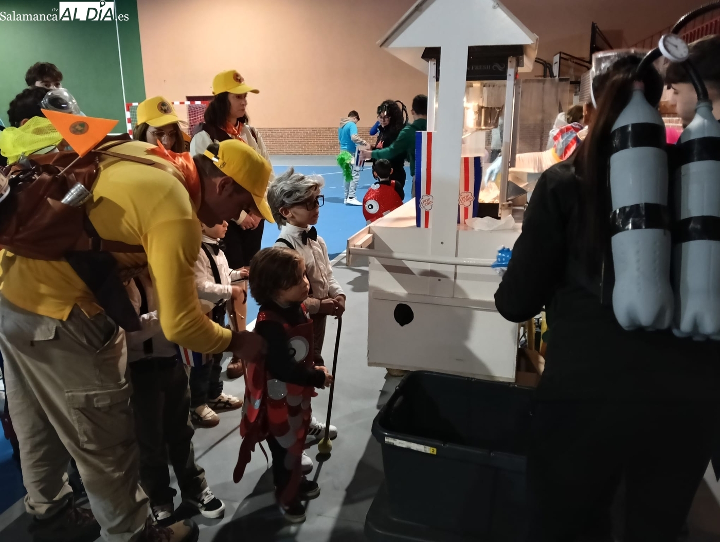 El mal tiempo no impide una participación récord en el concurso de disfraces, que repartió 250 euros en premios y contó con la animación de una charanga y el entusiasmo de ocho grupos participantes. El disfraz 'Bajo el mar' se alza con el primer premio de 150 euros y 'Up' logra el segundo de 100 euros
