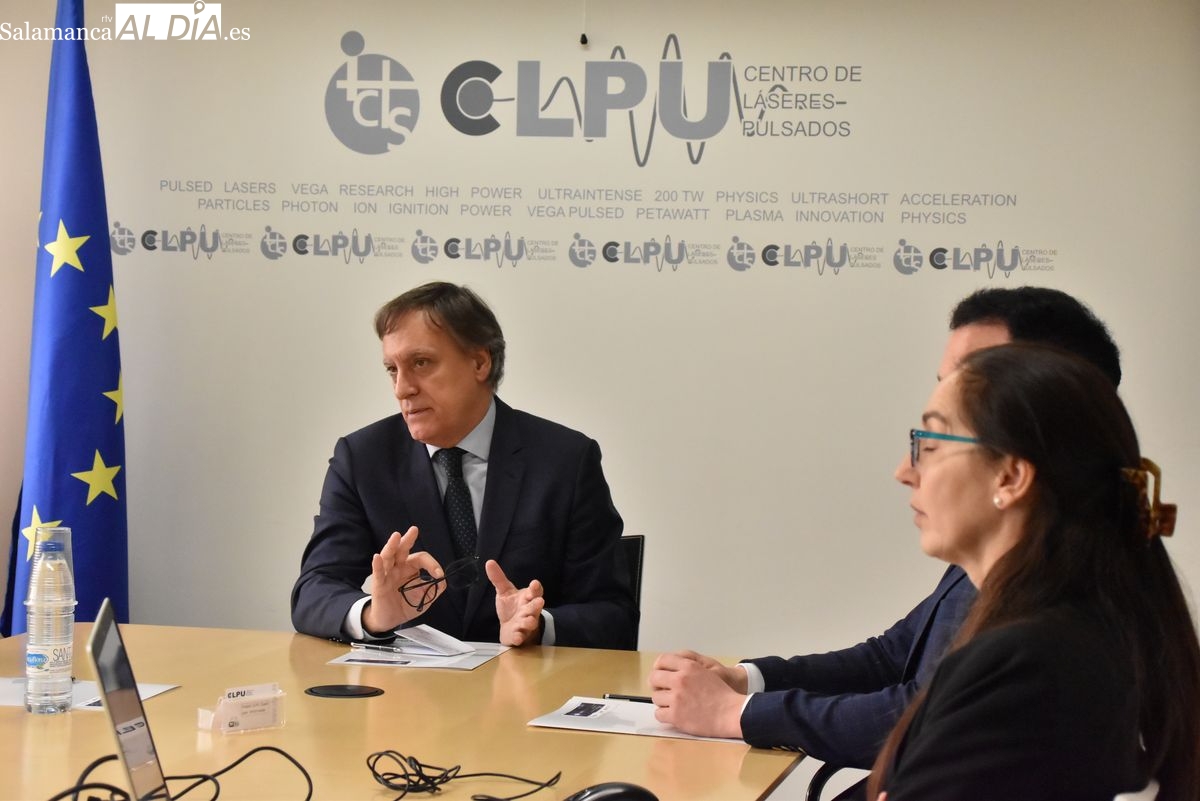El Centro de Láseres Pulsados (CLPU), situado en el Parque Científico de la Universidad de Salamanca en la localidad de Villamayor, afronta una etapa decisiva con la finalización de las obras de expansión de sus instalaciones. Así lo han confirmado esta mañana los responsables institucionales durante la visita realizada por el alcalde de Salamanca, Carlos García Carbayo, acompañado por el director del centro, Giancarlo Gatti, y el vicerrector de Investigación de la USAL, José Miguel Mateos Roco.