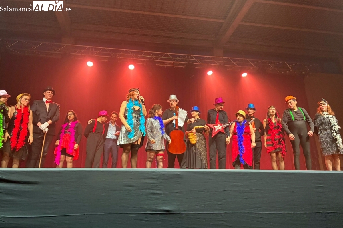 El Centro de Atención Integral de Asprodes Vitigudino recibió una placa conmemorativa por su exhibición de 'Cabaret' fuera de concurso en Ledesma. La gala, que contó con 12 grupos participantes, otorgó el primer premio a la imitación de Celine Dion.