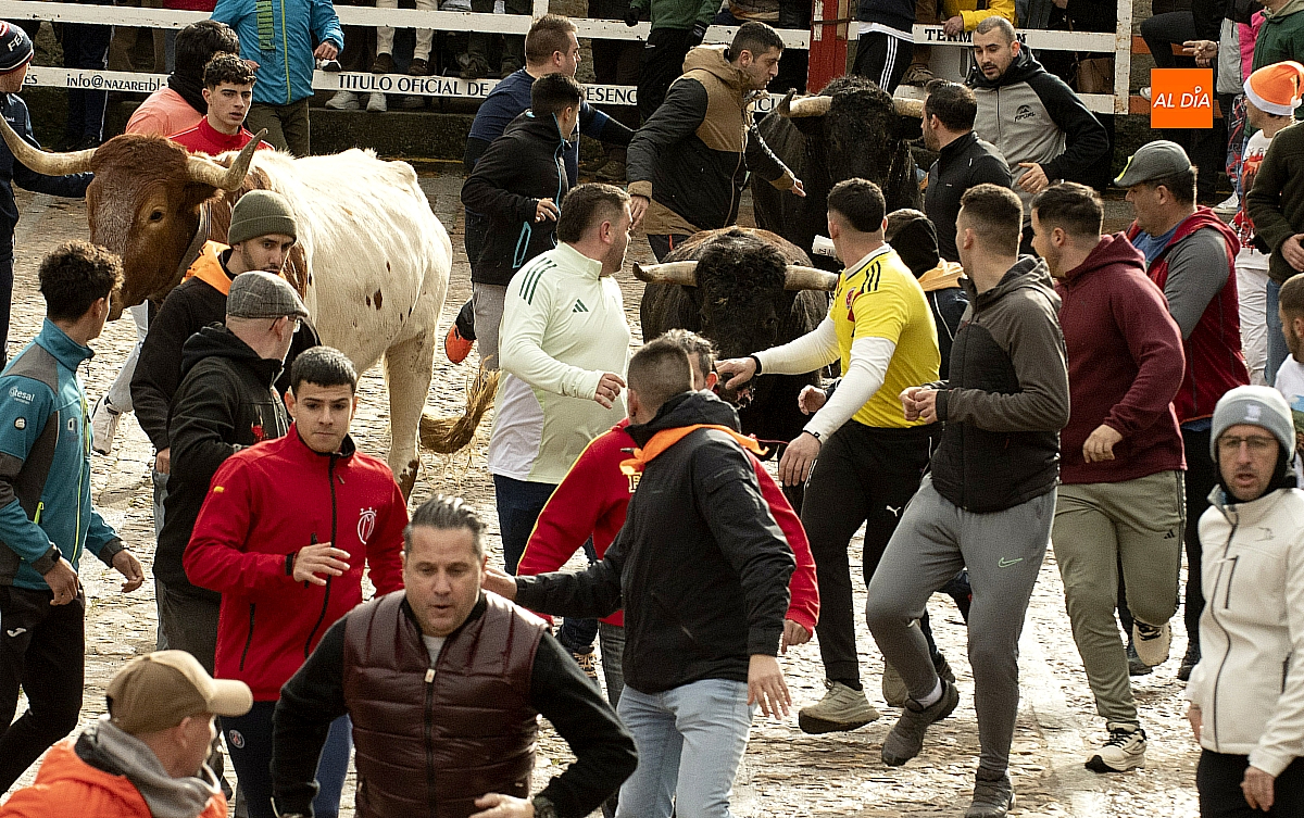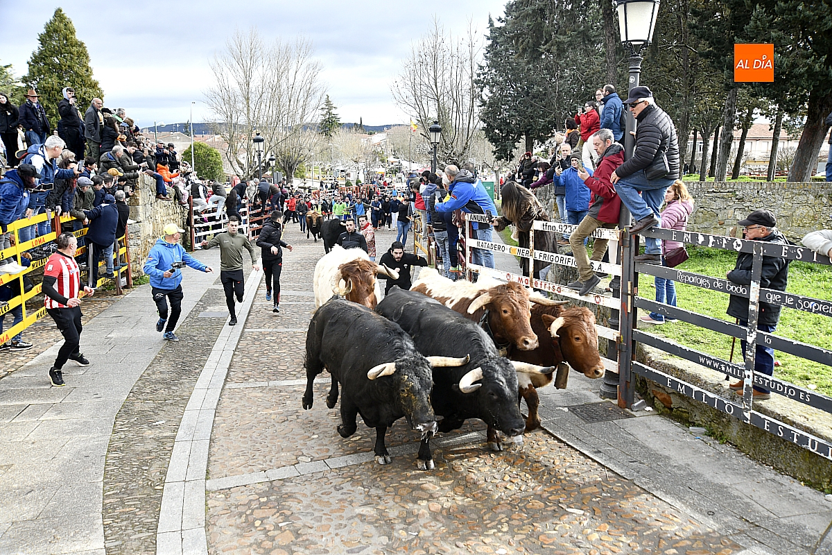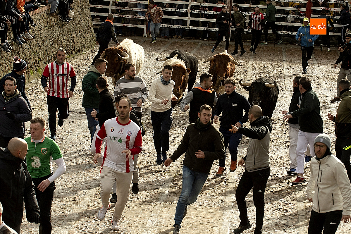 El encierro se desarrolló con rapidez y limpio, sin que se registraran percances, aunque las reses fueron llegando a la plaza de forma escalonada, a cuentagotas, lo que alargó ligeramente la emoción del recorrido. Numeroso público se dio cita a lo largo del recorrido y en el coso para presenciar la carrera, llenando los tablaos y animando con entusiasmo, mientras muchos asistentes aprovechaban para tomar fotografías y grabar vídeos con los que inmortalizar el momento. Además, fueron también numerosos los corredores que se animaron a acompañar a las reses durante el trayecto, corriendo junto a los toros y aportando emoción al encierro.