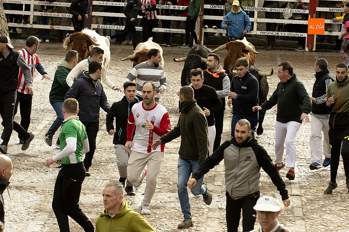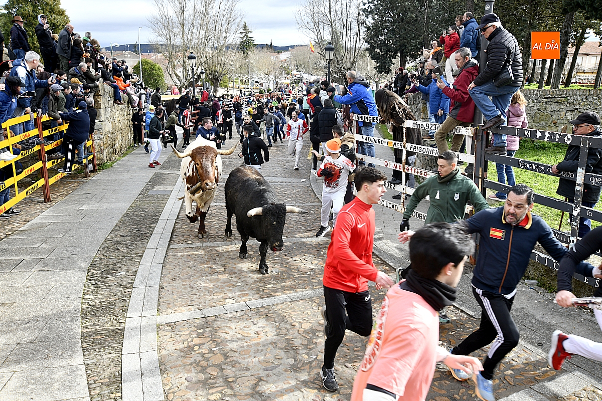 El lunes de Carnaval ha comenzado con el tradicional encierro de las 11:00 horas, en el que seis toros de la ganadería de Fermín Bohórquez, procedentes de la dehesa «Fuente Rey», en Jerez de la Frontera (Cádiz), han recorrido el trayecto desde los corrales de la calle Duero hasta la emblemática Plaza de Toros.