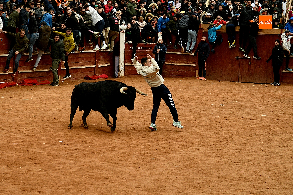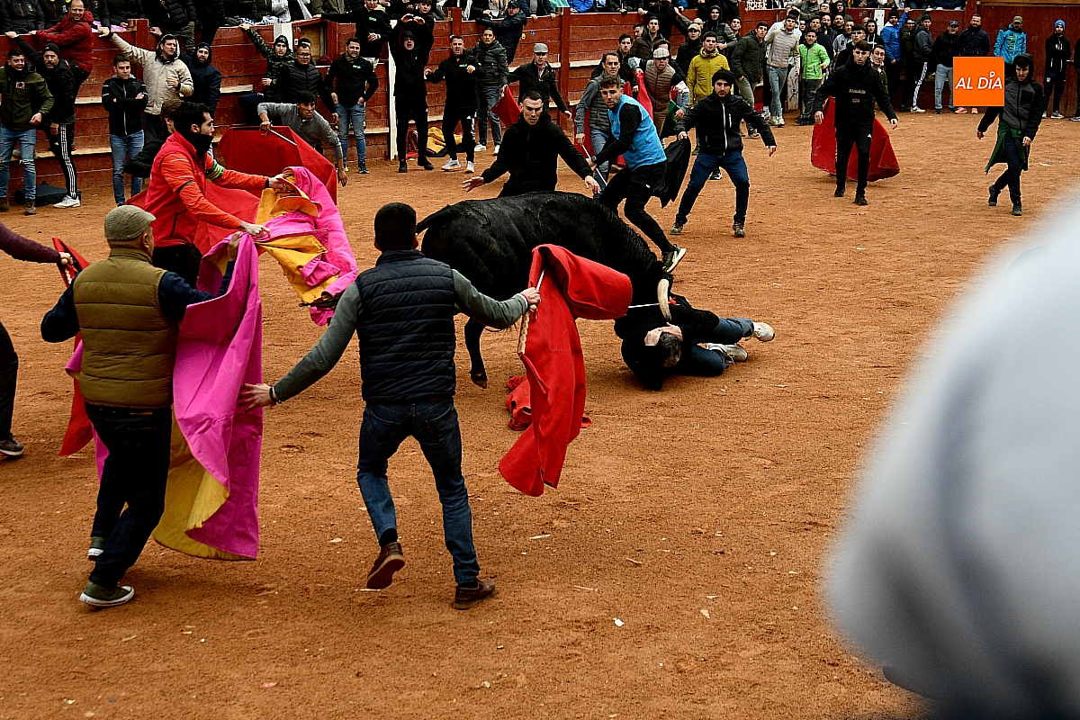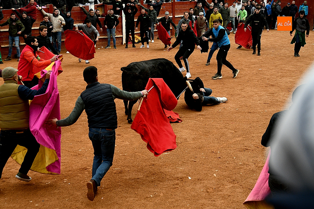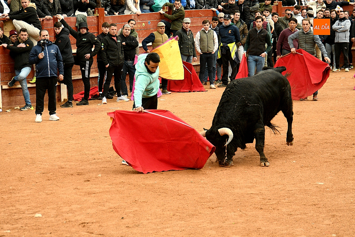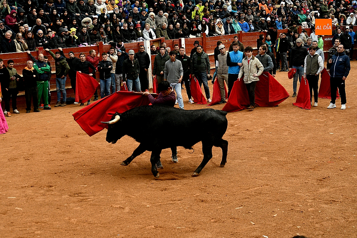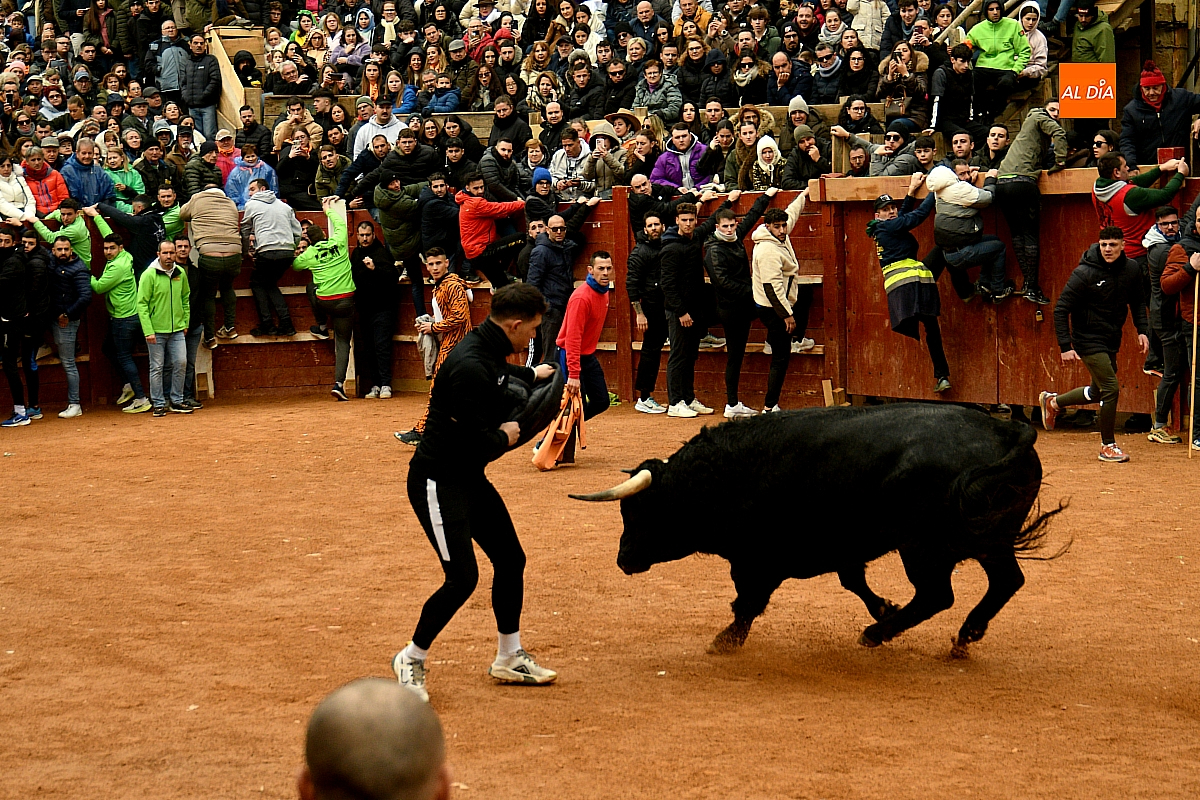 Tras el encierro de campo, la actividad se trasladó a la plaza con la celebración de la tradicional capea. Los astados de la ganadería de Antonio López Gibaja volvieron a demostrar bravura y nobleza, propiciando un juego dinámico que permitió a maletillas y recortadores desplegar su técnica y arrojo. No faltaron instantes de tensión: uno de los habituales de las capeas mirobrigenses fue alcanzado por un toro en una embestida aparatosa que, afortunadamente, no tuvo consecuencias de gravedad.