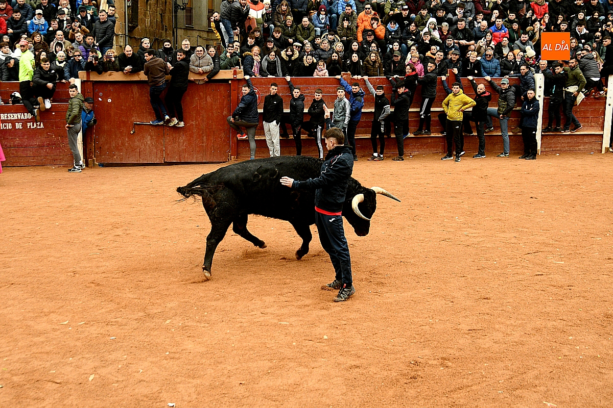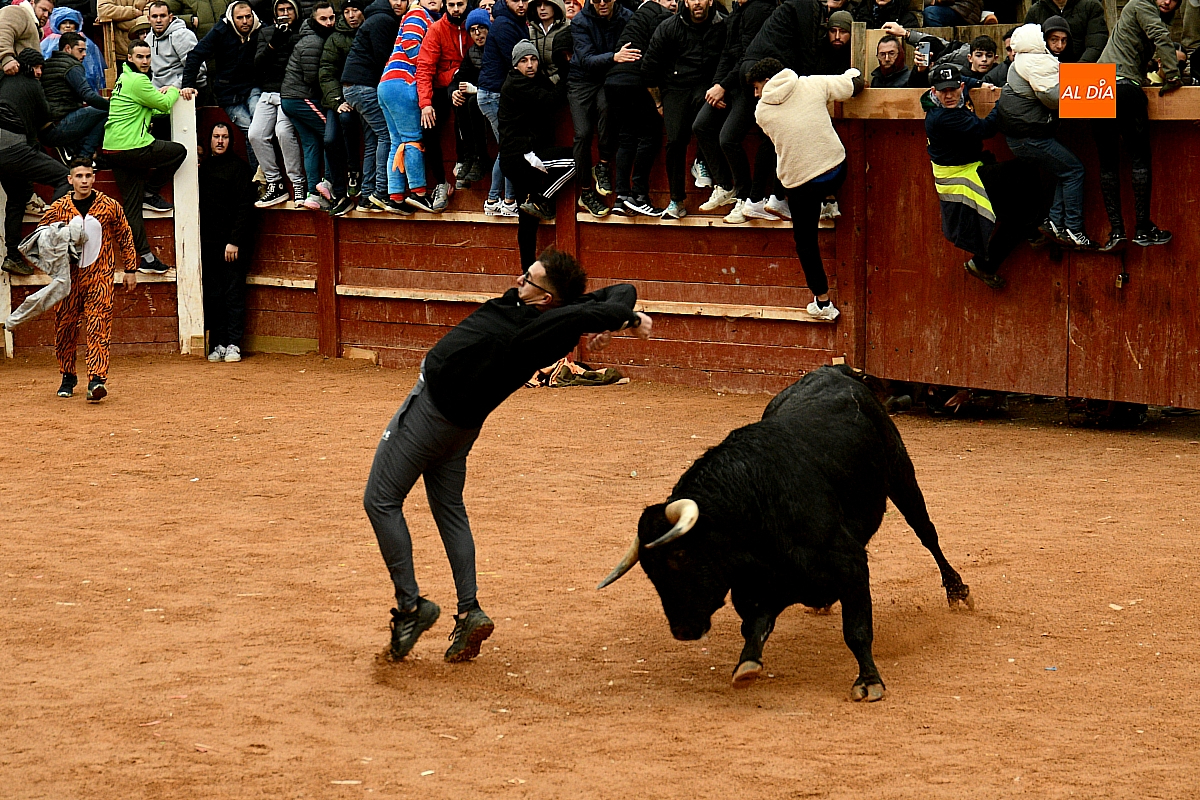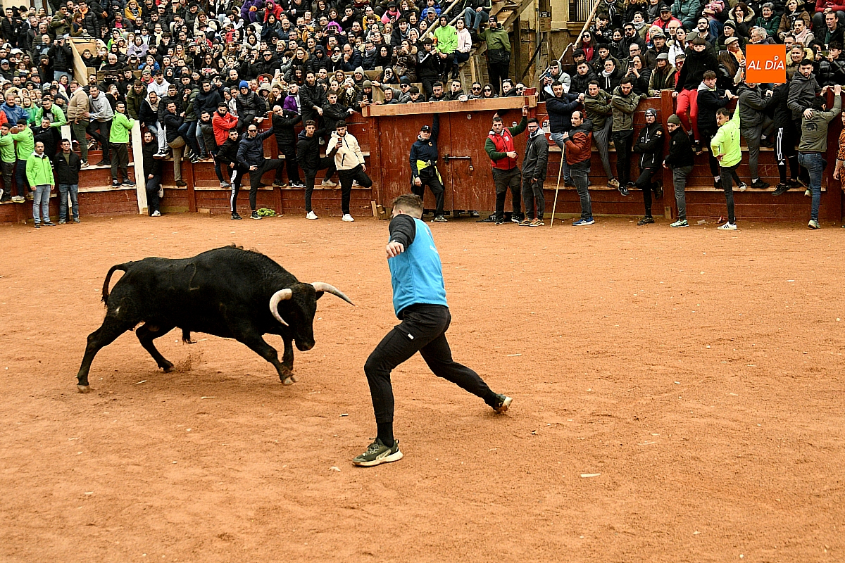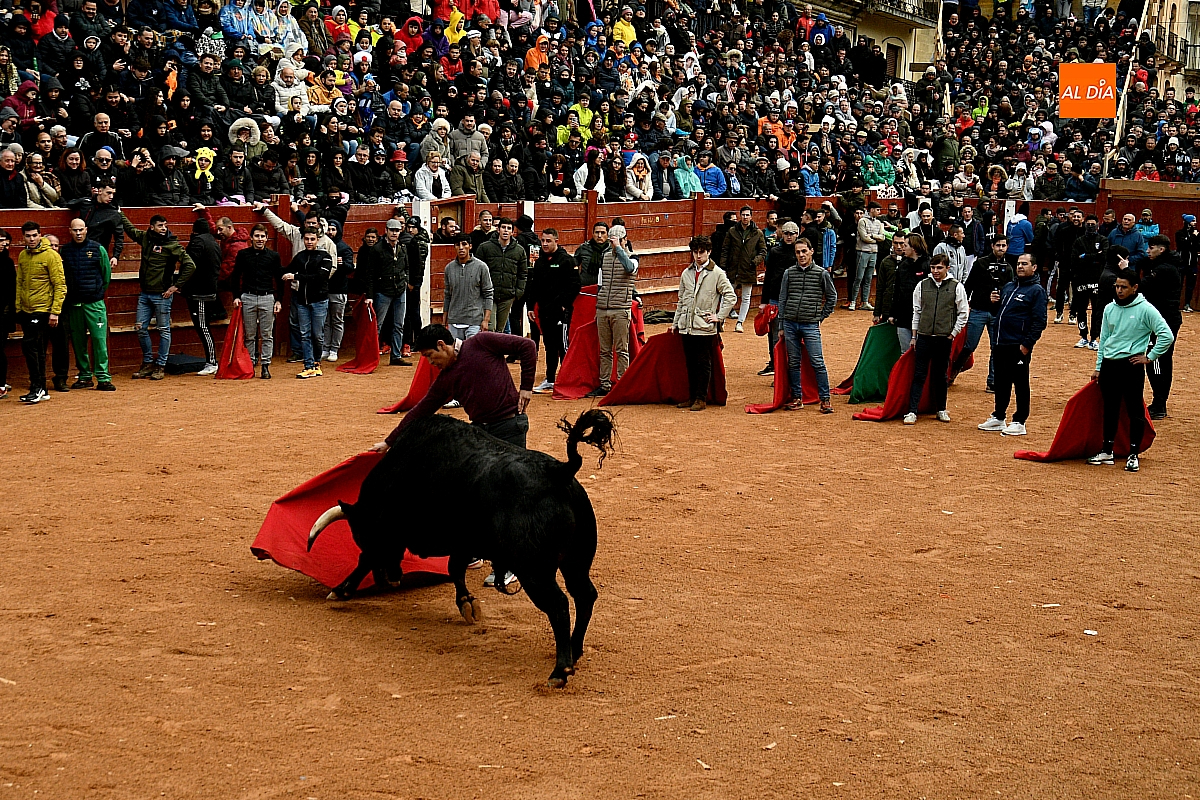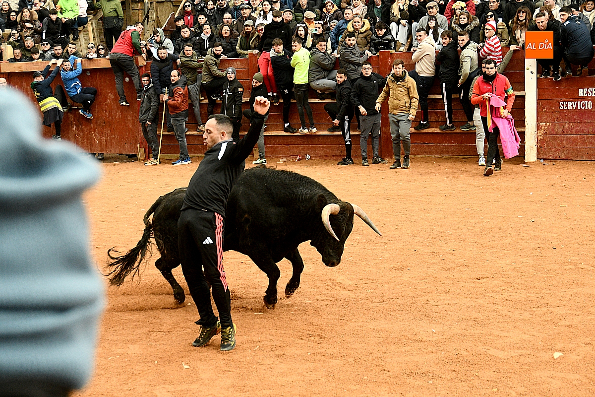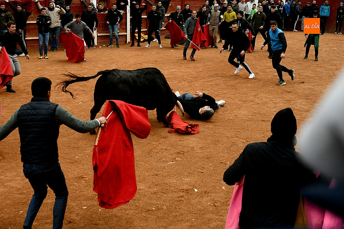 Tras el encierro de campo, la actividad se trasladó a la plaza con la celebración de la tradicional capea. Los astados de la ganadería de Antonio López Gibaja volvieron a demostrar bravura y nobleza, propiciando un juego dinámico que permitió a maletillas y recortadores desplegar su técnica y arrojo. No faltaron instantes de tensión: uno de los habituales de las capeas mirobrigenses fue alcanzado por un toro en una embestida aparatosa que, afortunadamente, no tuvo consecuencias de gravedad.