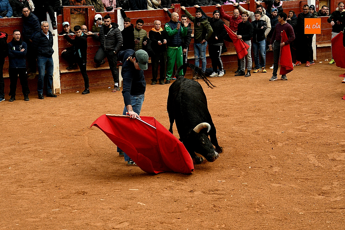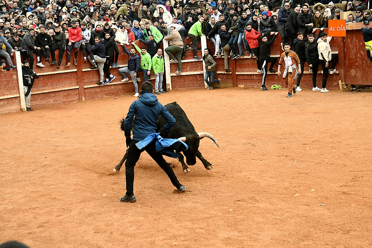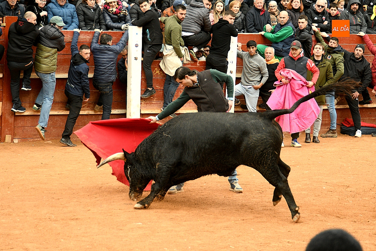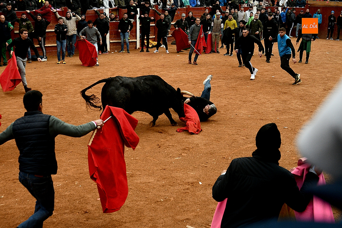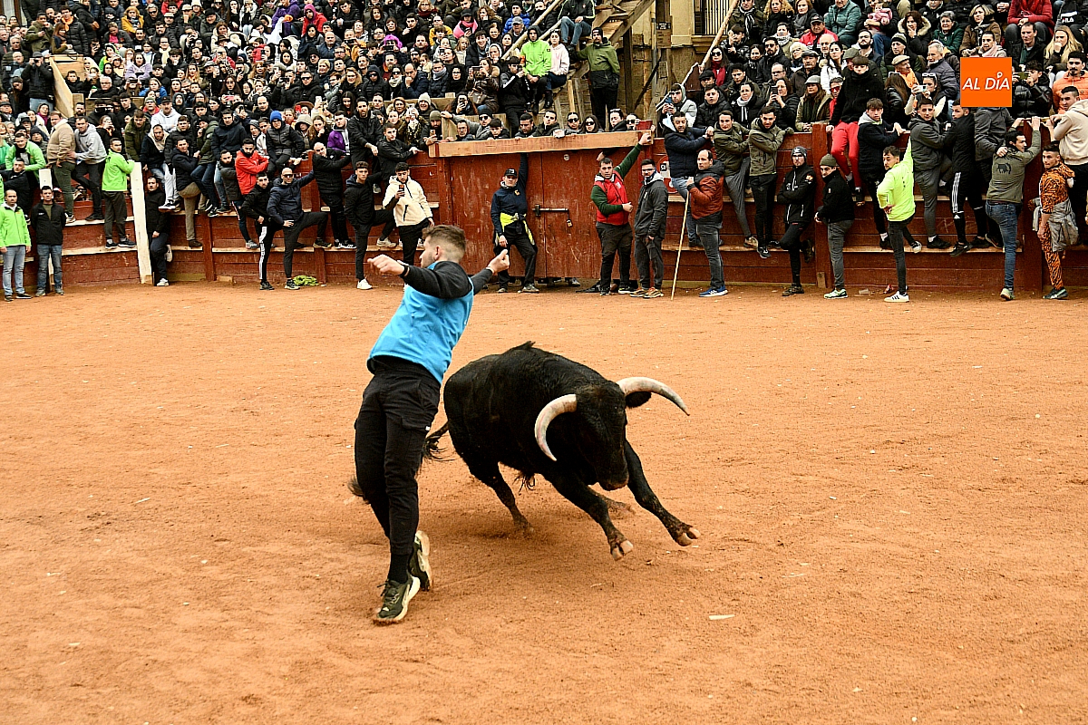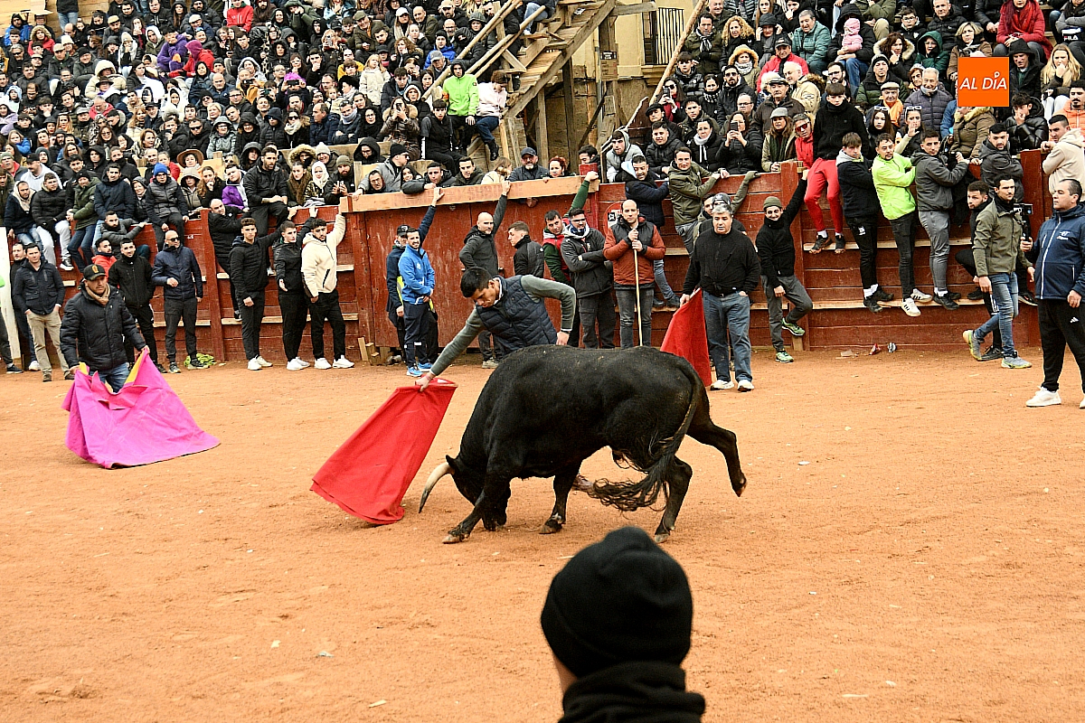 Tras el encierro de campo, la actividad se trasladó a la plaza con la celebración de la tradicional capea. Los astados de la ganadería de Antonio López Gibaja volvieron a demostrar bravura y nobleza, propiciando un juego dinámico que permitió a maletillas y recortadores desplegar su técnica y arrojo. No faltaron instantes de tensión: uno de los habituales de las capeas mirobrigenses fue alcanzado por un toro en una embestida aparatosa que, afortunadamente, no tuvo consecuencias de gravedad.