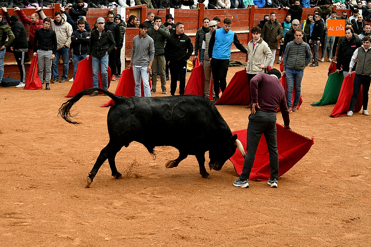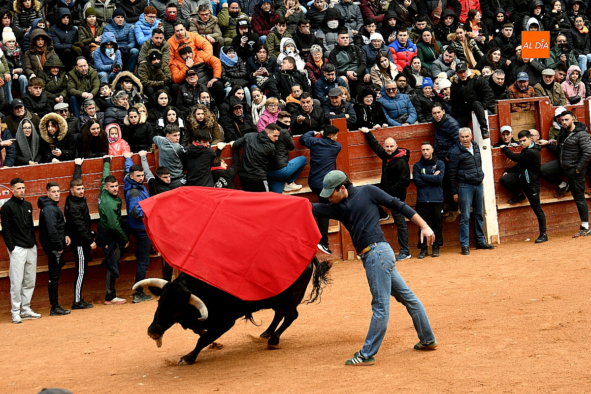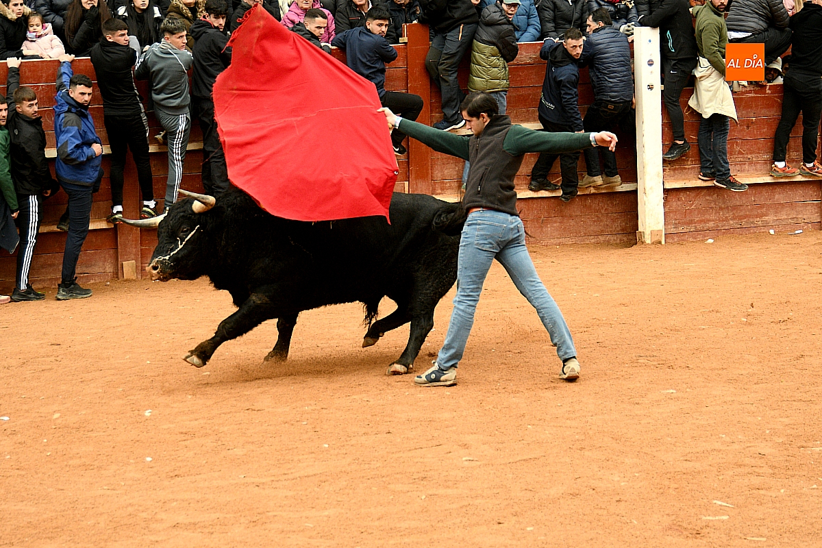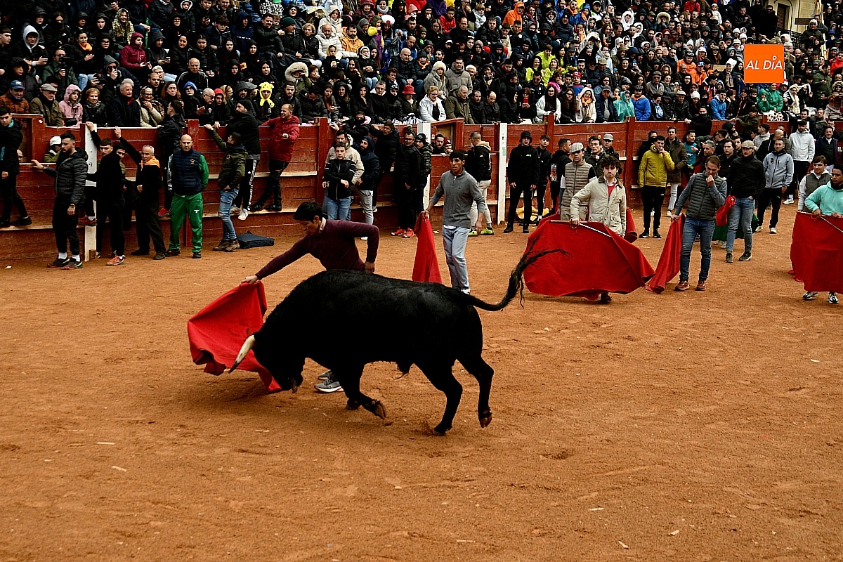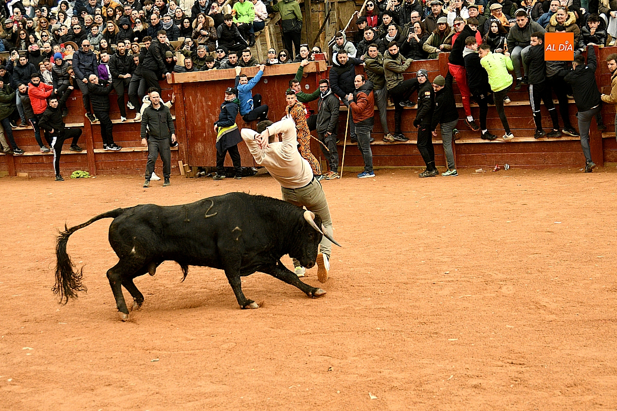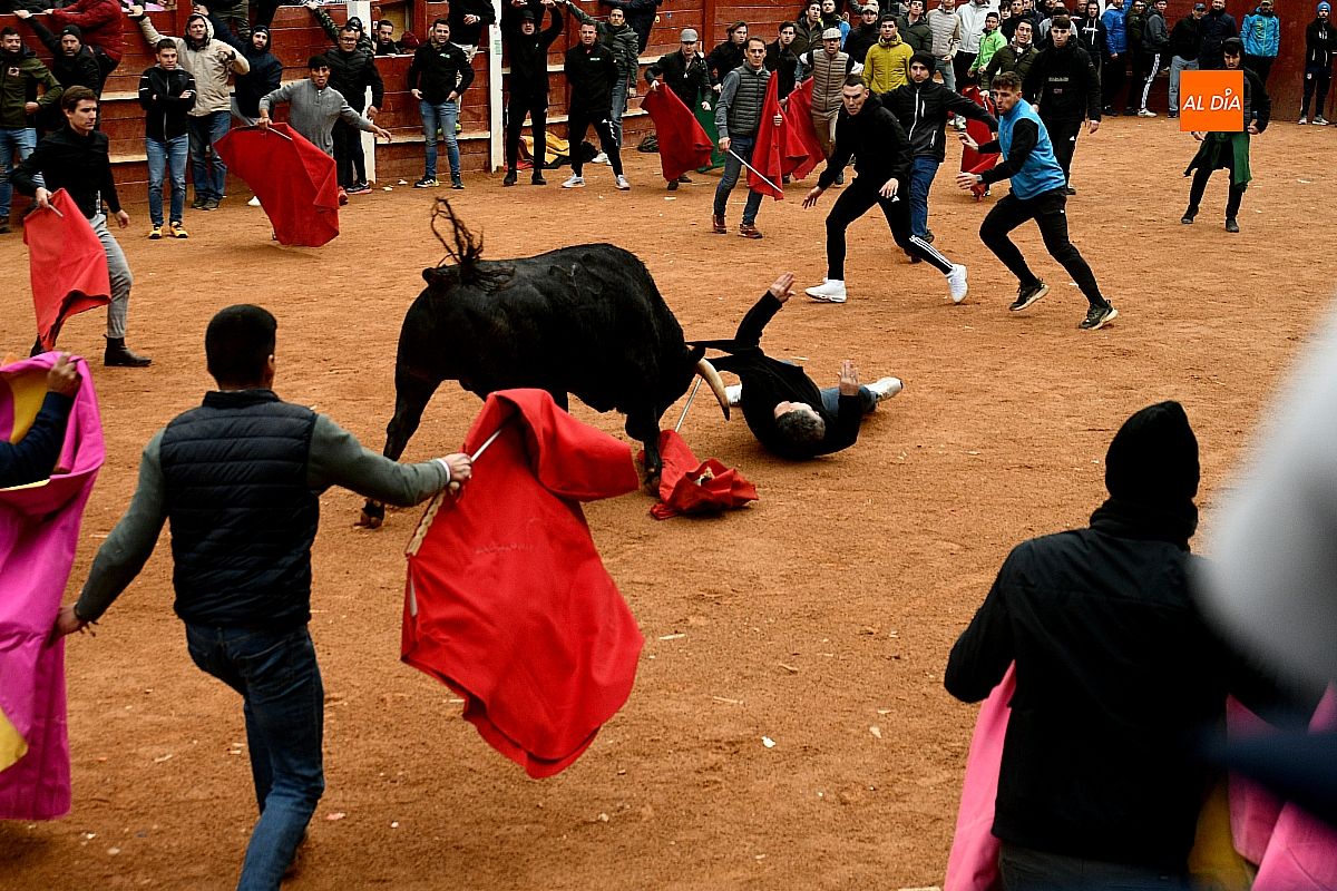 Tras el encierro de campo, la actividad se trasladó a la plaza con la celebración de la tradicional capea. Los astados de la ganadería de Antonio López Gibaja volvieron a demostrar bravura y nobleza, propiciando un juego dinámico que permitió a maletillas y recortadores desplegar su técnica y arrojo. No faltaron instantes de tensión: uno de los habituales de las capeas mirobrigenses fue alcanzado por un toro en una embestida aparatosa que, afortunadamente, no tuvo consecuencias de gravedad.