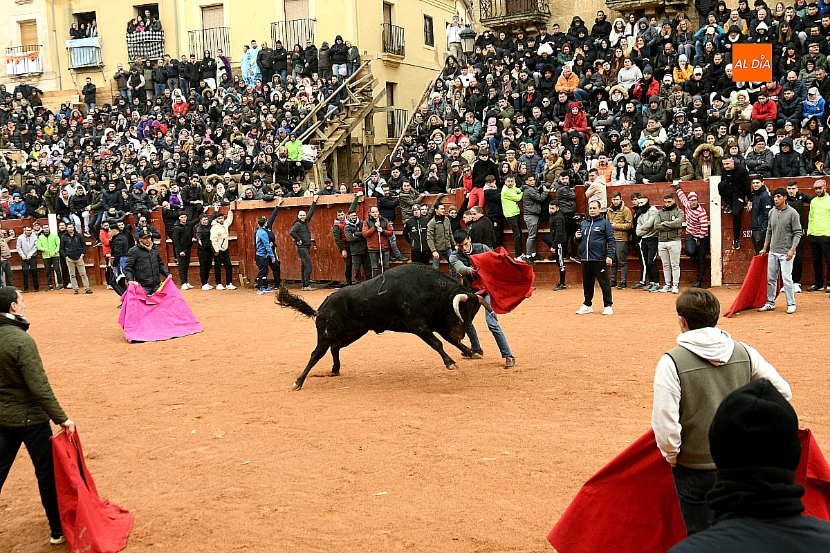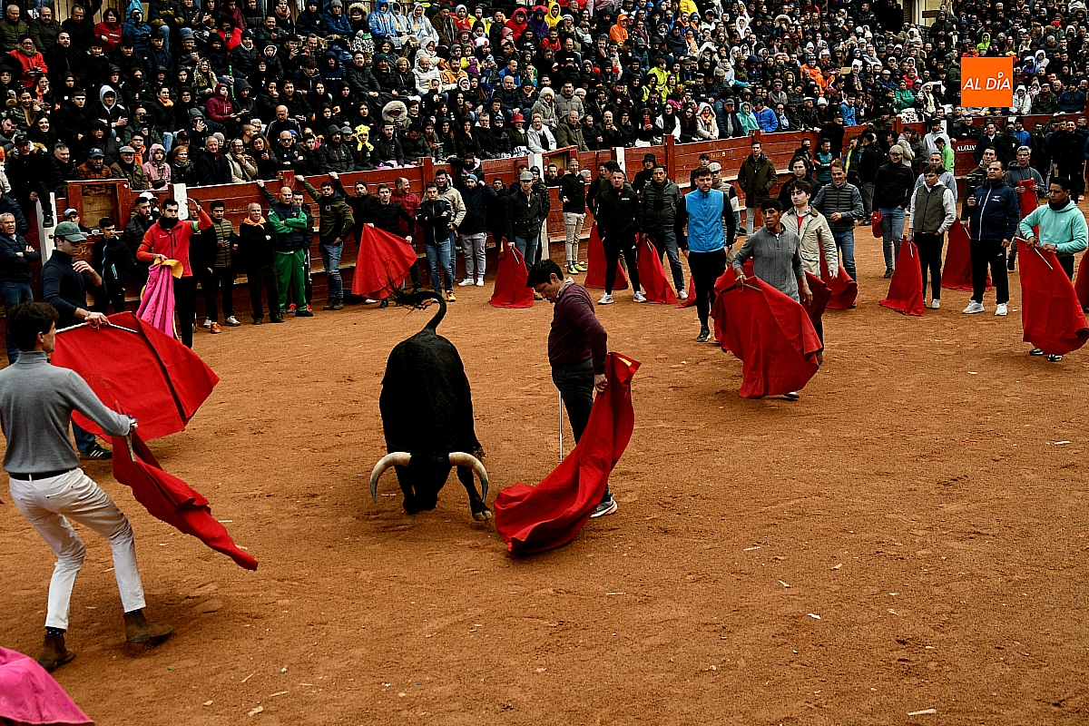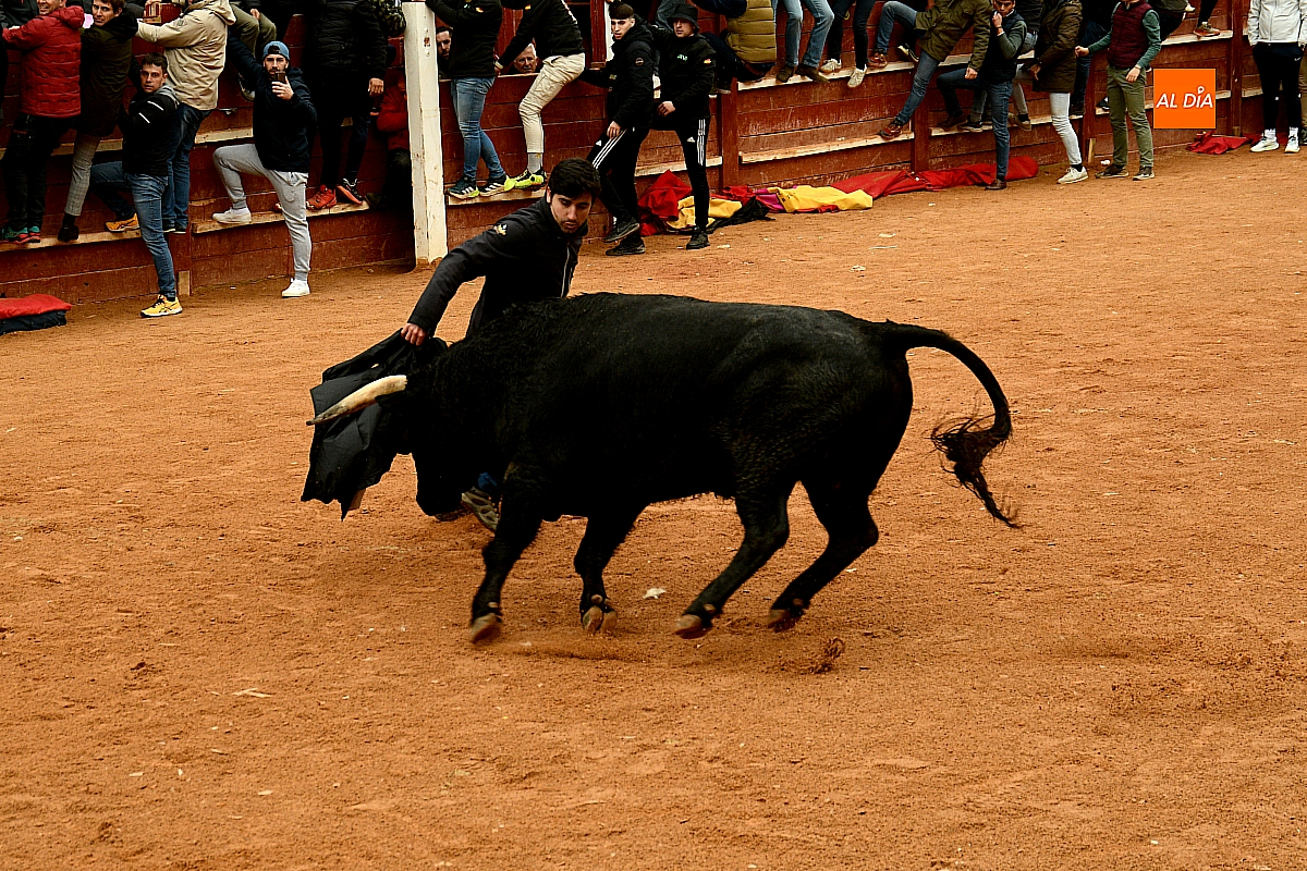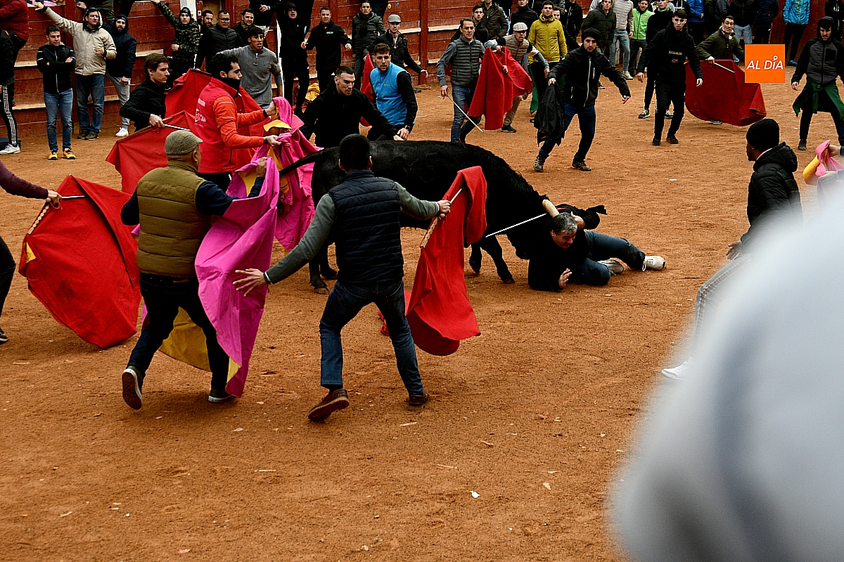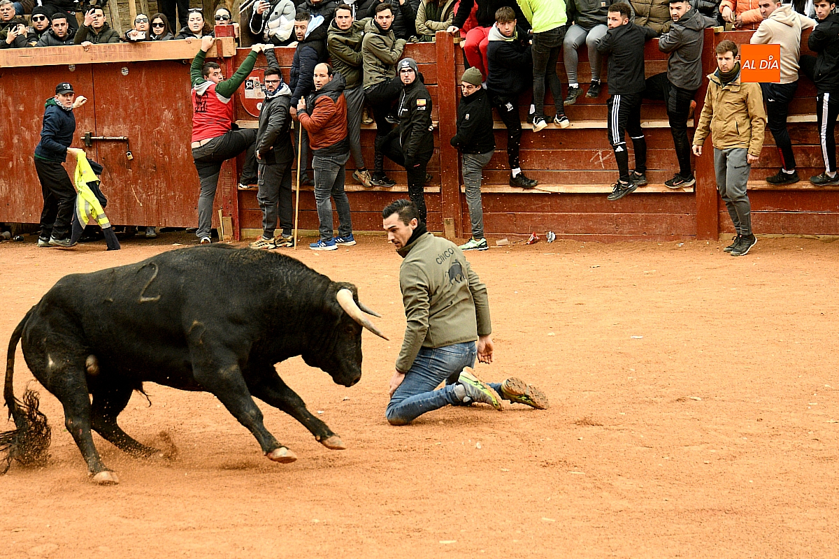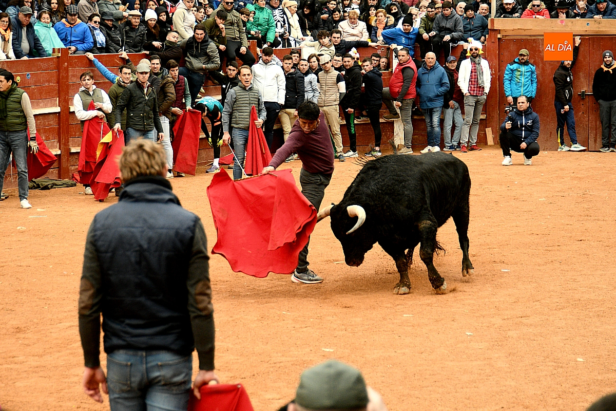 Tras el encierro de campo, la actividad se trasladó a la plaza con la celebración de la tradicional capea. Los astados de la ganadería de Antonio López Gibaja volvieron a demostrar bravura y nobleza, propiciando un juego dinámico que permitió a maletillas y recortadores desplegar su técnica y arrojo. No faltaron instantes de tensión: uno de los habituales de las capeas mirobrigenses fue alcanzado por un toro en una embestida aparatosa que, afortunadamente, no tuvo consecuencias de gravedad.