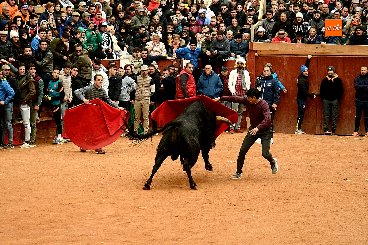 La jornada dominical del Carnaval del Toro volvió a confirmar su naturaleza como eje vertebrador de la identidad festiva de Ciudad Rodrigo, congregando a millares de personas en torno a un programa marcadamente taurino que, desde las primeras horas, transformó la fisonomía urbana en un escenario palpitante de tradición y expectación.
