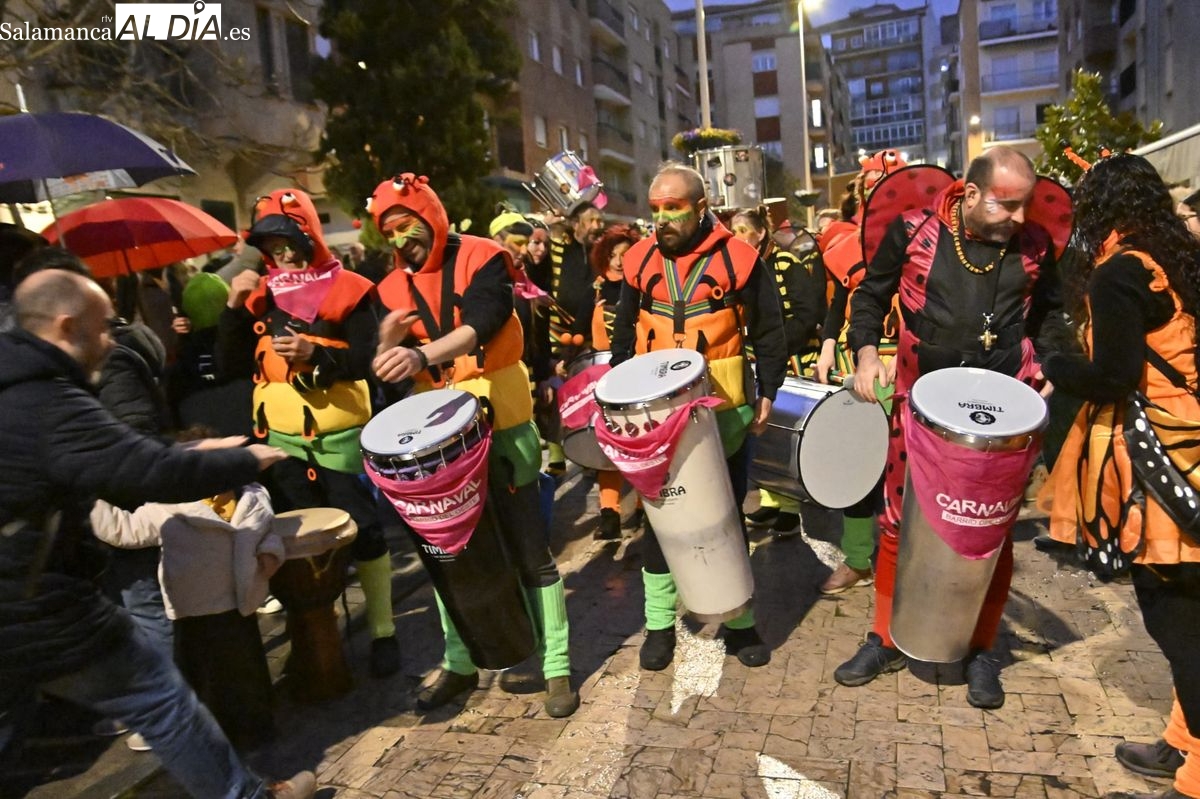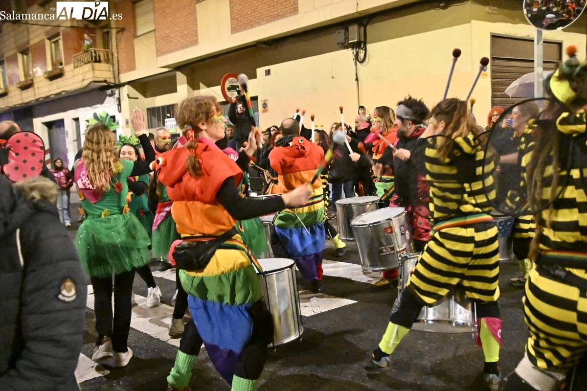 Un gran pasacalles animado por la Batucada Blocco Charro y la Charanga Los del Lío durante una jornada que ha incluido una fiesta infantil previa y ha culminado con música de DJ en la Plaza del Oeste