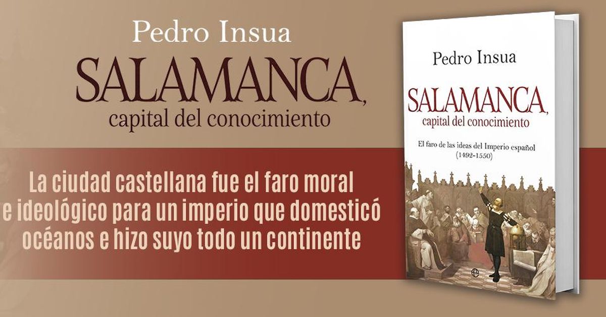 El filósofo Pedro Insua ha presentado su nuevo ensayo, titulado 'Salamanca, capital del conocimiento', una obra publicada por La Esfera de los Libros que propone una relectura audaz de la historia de España. El texto sitúa a la ciudad del Tormes y a su Universidad en el eje central de las coordenadas que transformaron el mundo, definiéndola como el lugar donde se gestó el nacimiento de la modernidad.