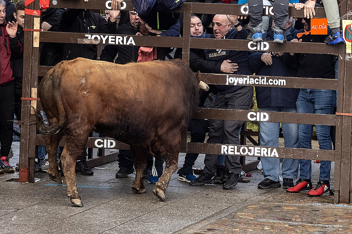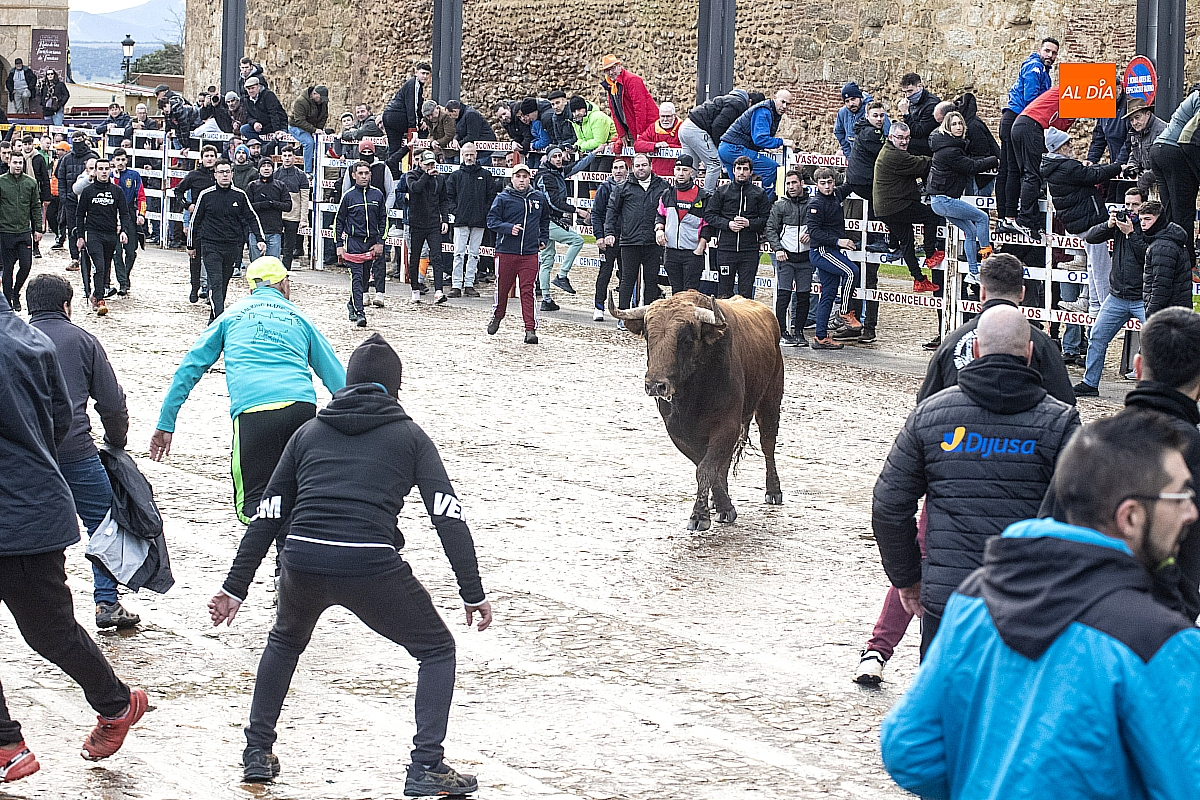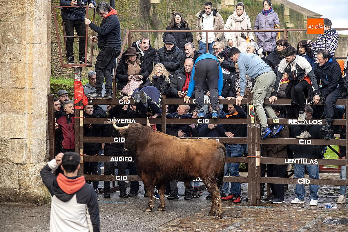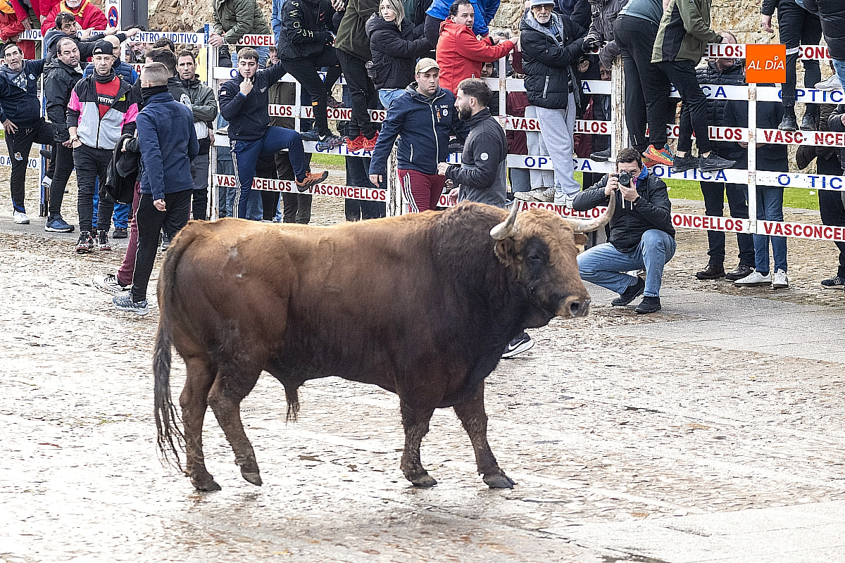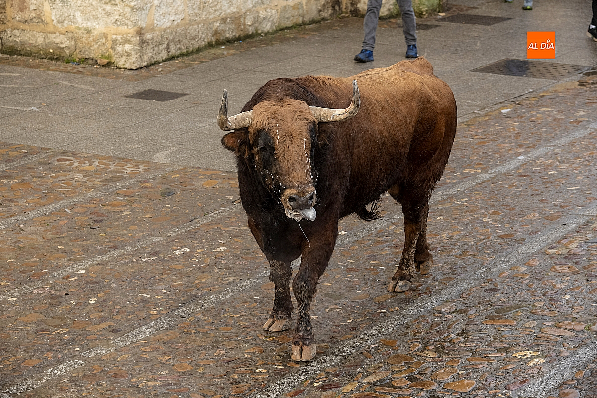 No decepcionó en el recorrido urbano, aunque sí dejó una impresión más tibia en el ruedo. Ese fue el veredicto, casi unánime, de aficionados y corredores tras la suelta del llamado Toro del Aguardiente, protagonizada este año por Pájaro Azul, un ejemplar de la ganadería salmantina de Sánchez Herrero, vecina de El Bodón, cuya presencia fue posible gracias a la aportación de las empresas Aceitunas Miroliva y Construcciones y Obra Civil Sánchez Cepa.