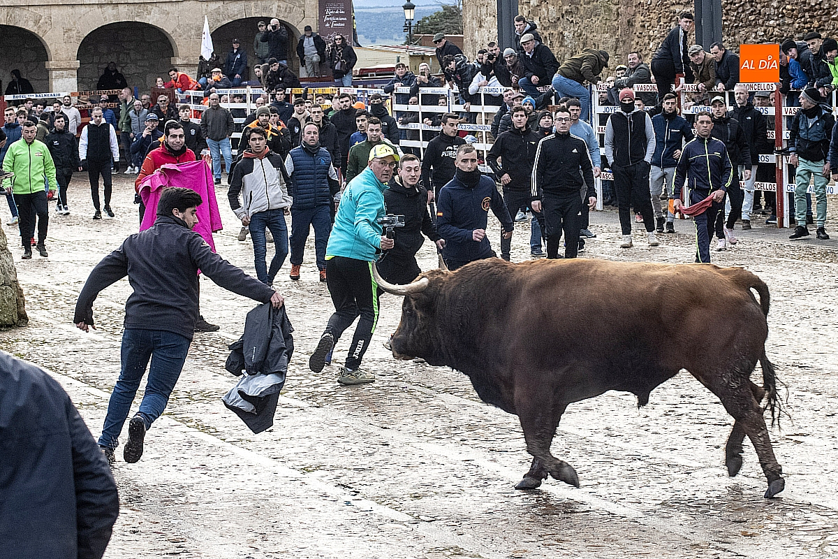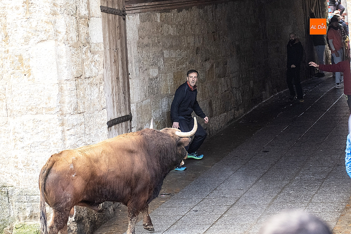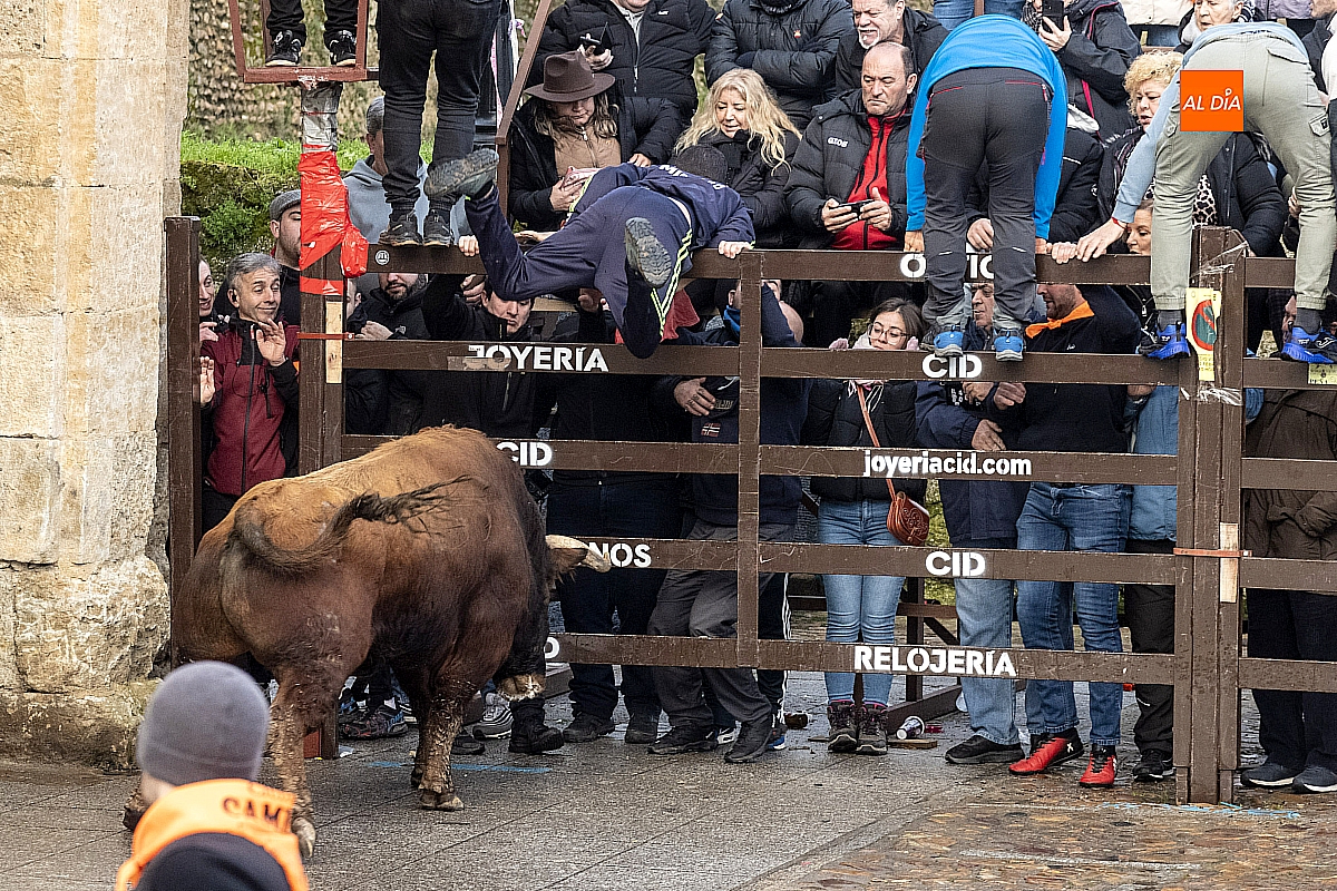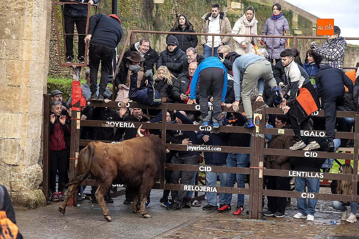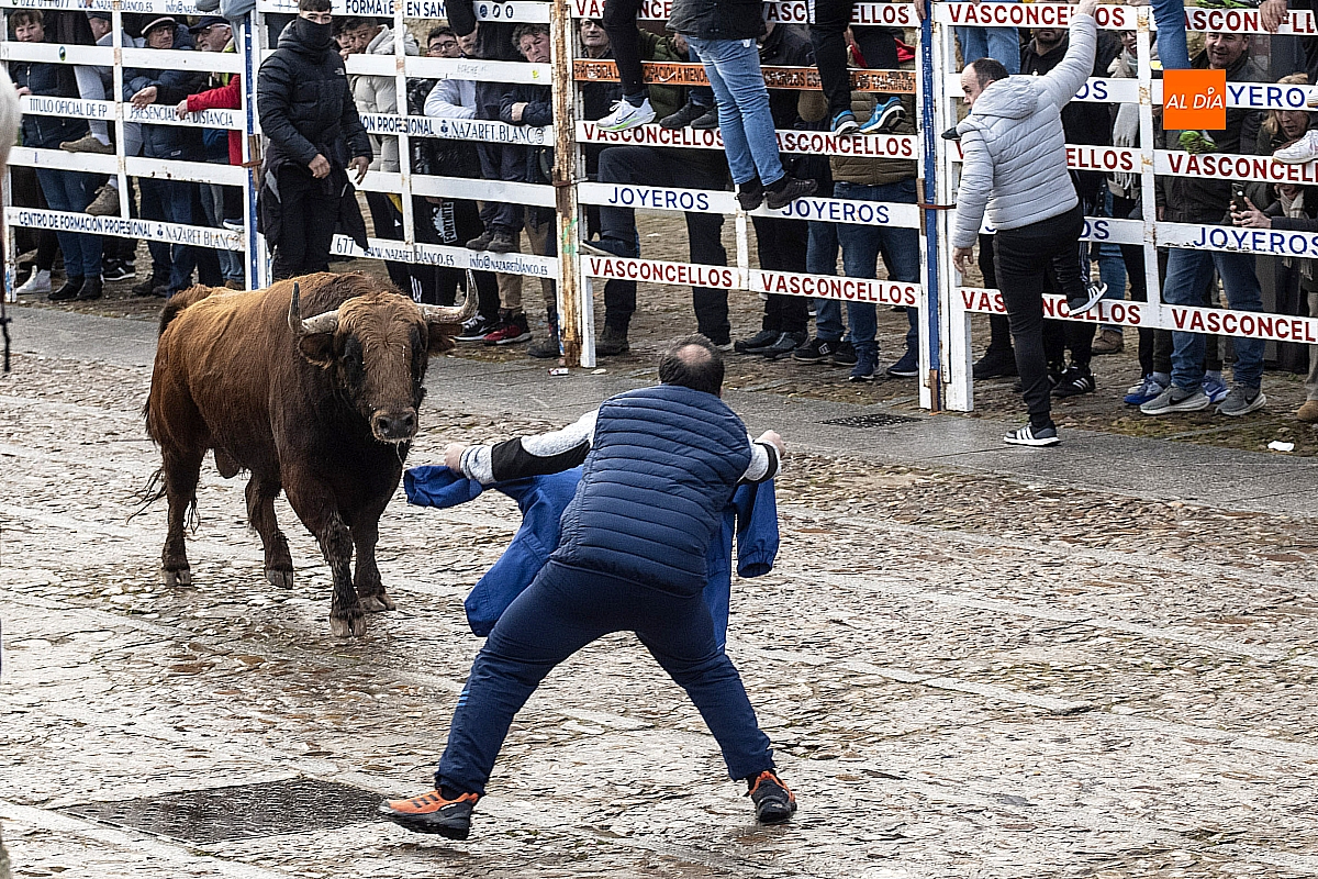 No decepcionó en el recorrido urbano, aunque sí dejó una impresión más tibia en el ruedo. Ese fue el veredicto, casi unánime, de aficionados y corredores tras la suelta del llamado Toro del Aguardiente, protagonizada este año por Pájaro Azul, un ejemplar de la ganadería salmantina de Sánchez Herrero, vecina de El Bodón, cuya presencia fue posible gracias a la aportación de las empresas Aceitunas Miroliva y Construcciones y Obra Civil Sánchez Cepa.