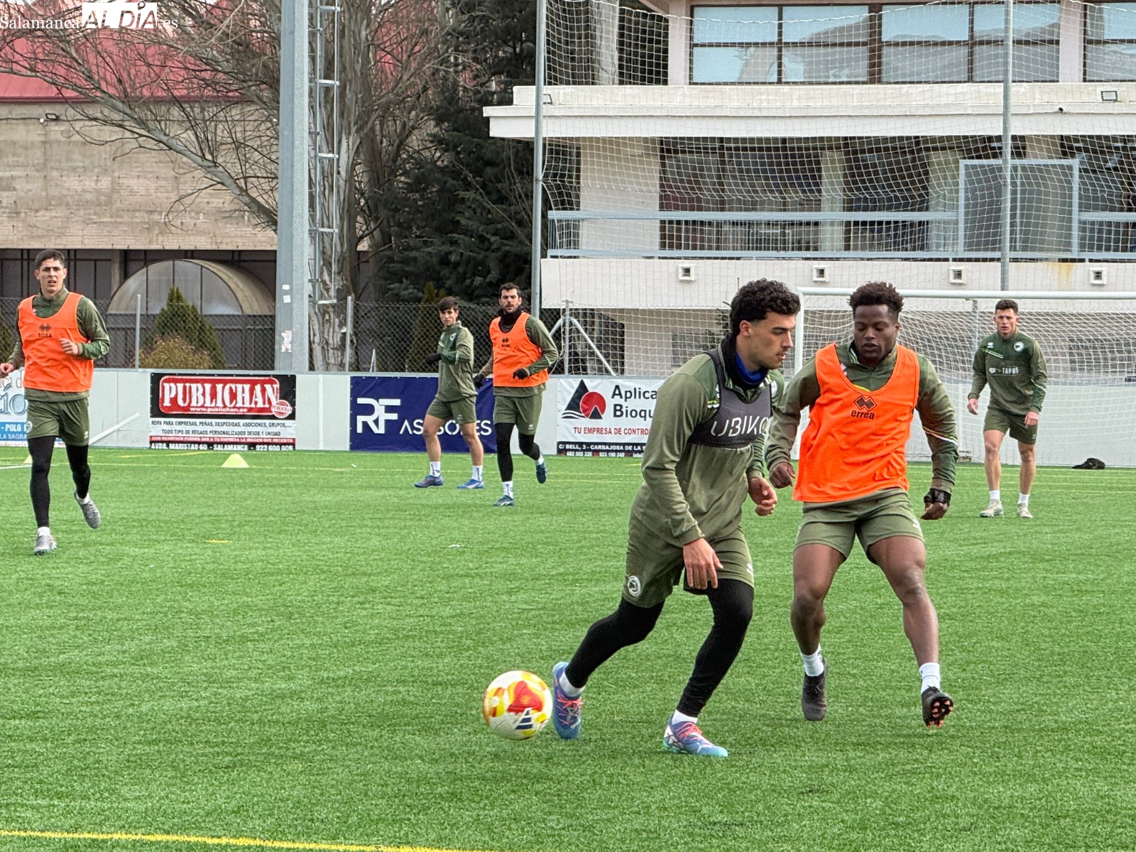 Olmedo ha empezado a entrar al grupo tras su lesión de hombro en un entrenamiento de Unionistas sin Jan, Mounir y Pere. De este modo, el lateral ha tocado balón y hecho los primeros ejercicios de la sesión antes de quedarse en solitario, igual que han hecho los dos últimos.