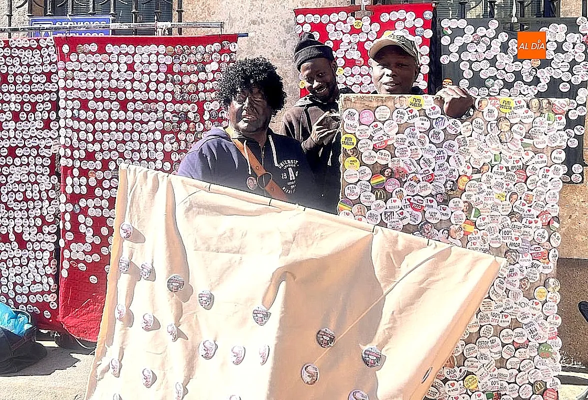 Jesús Martín, con esa alegría que desprende y que siempre —y cuando digo siempre es siempre— nos sorprende, volvió a hacerlo. Disfraces trabajados, imaginación desbordante y muchas ganas de que los demás lo pasemos bien. Esta vez tuvo la brillante idea de honrar a un colectivo que desde hace años no falta en el carnaval: los vendedores ambulantes de chapas, gafas, gorras y todo lo que cabe en unas cajas que transportan de un lado a otro, recorriendo las calles día tras día con una sonrisa mientras ofrecen su mercancía.
