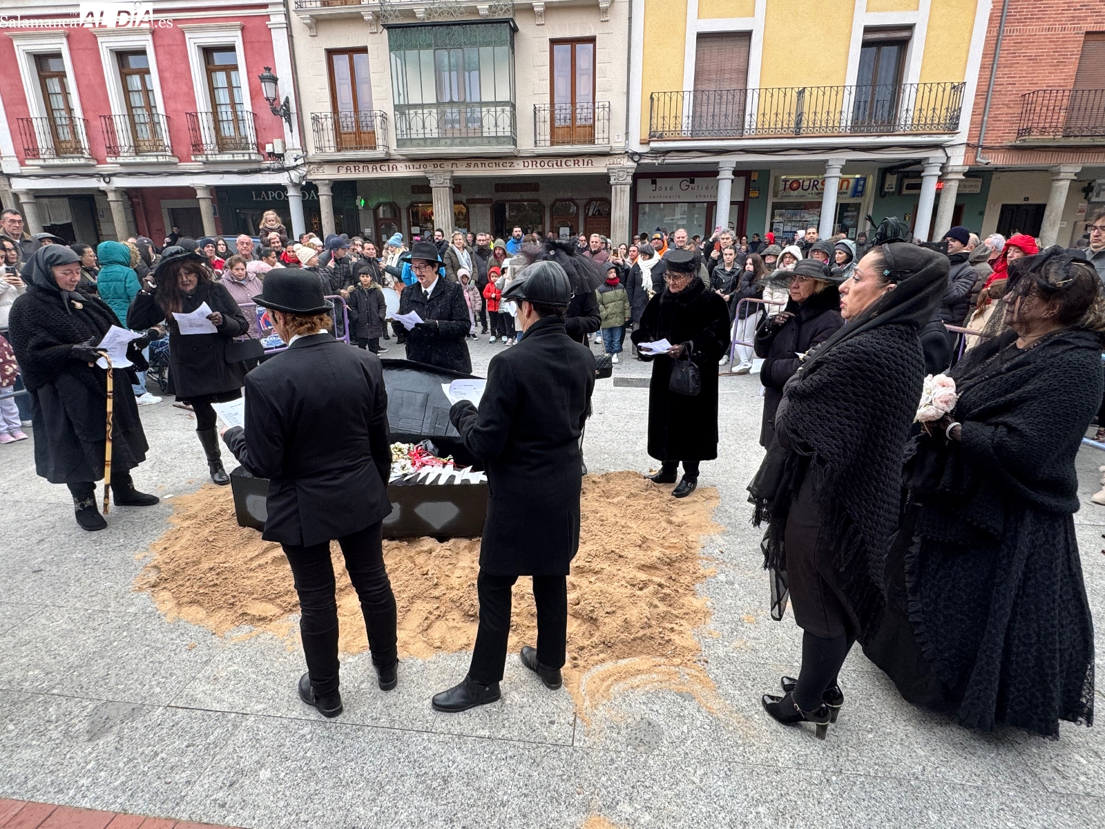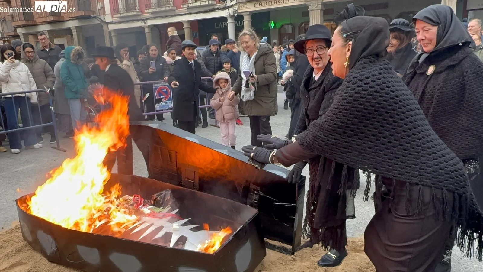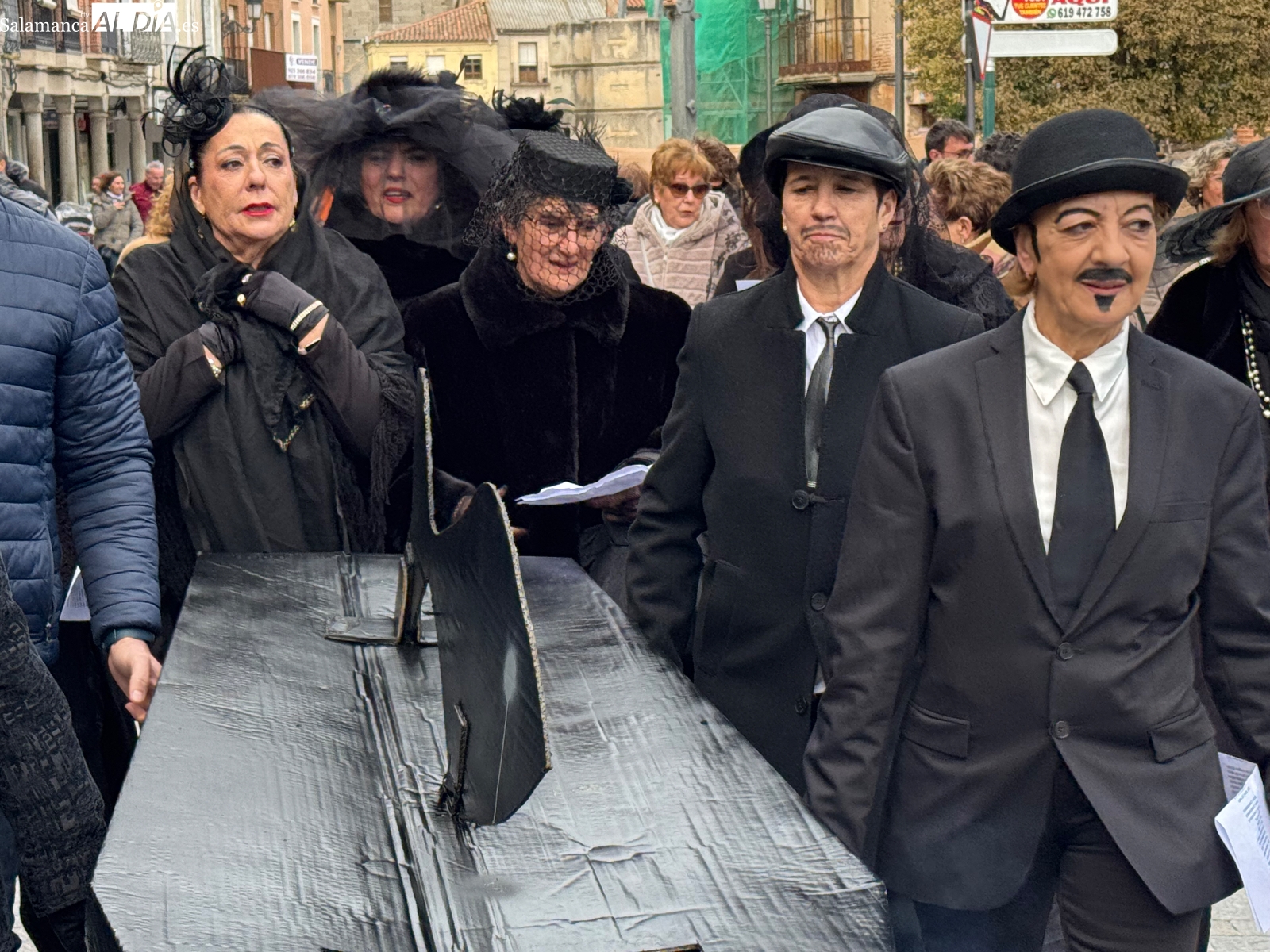 La celebración arrancaba a las cinco de la tarde, cuando los sones de la dulzaina de Alborada anunciaban la salida de la ‘santa comitiva’. Los llantos y largos lamentos de las viudas eran la simpática compañía al cortejo fúnebre, que recorrió las plazas manteniendo el tono desenfadado y festivo. El ataúd, gran protagonista de la jornada, avanzó entre bromas y miradas cómplices, recordando que el carnaval se despide… pero siempre promete volver.