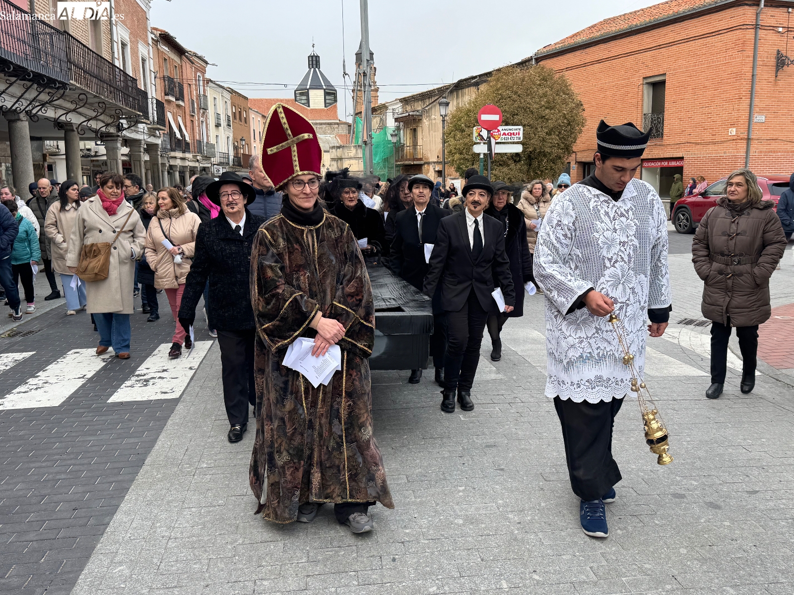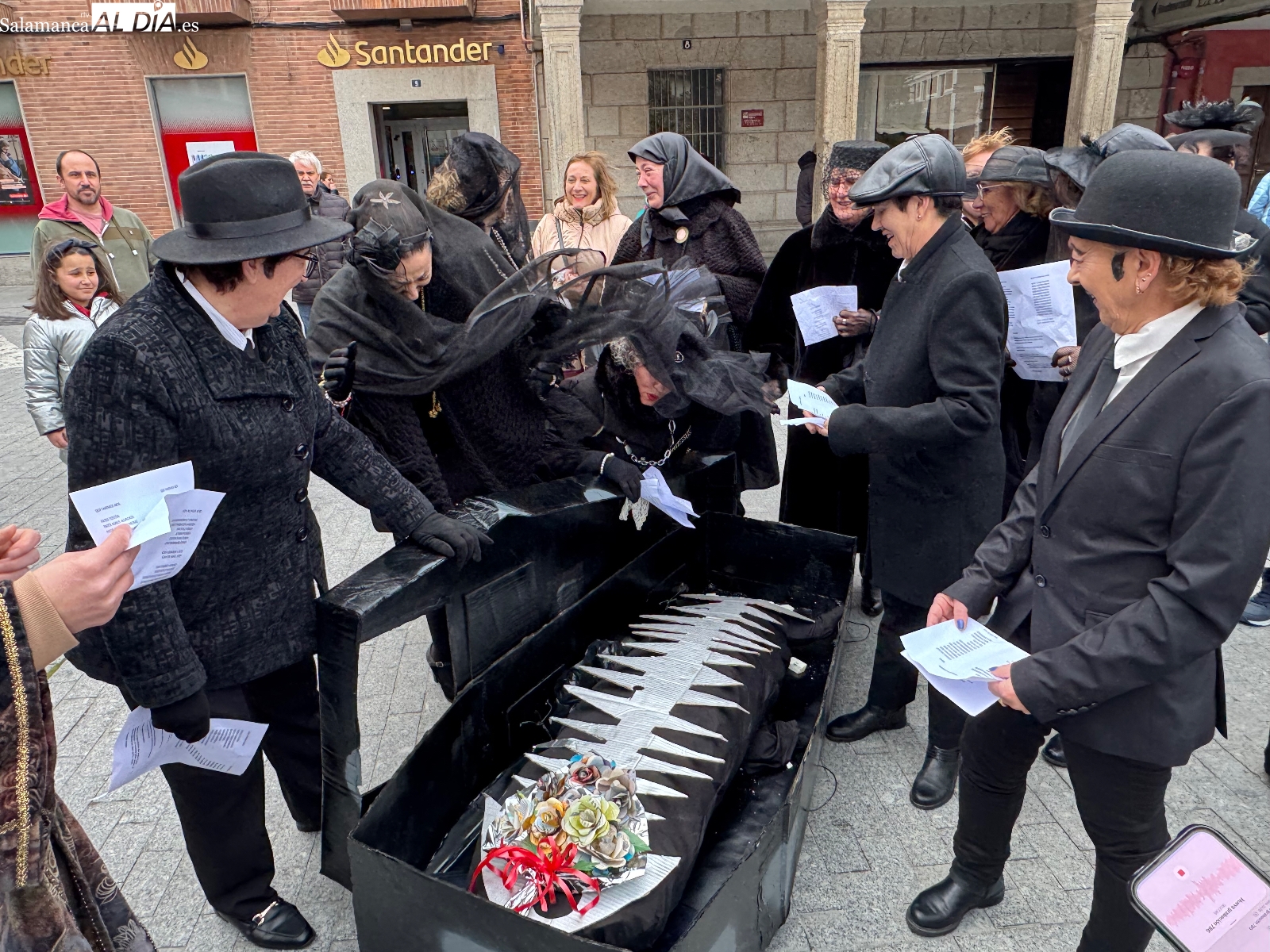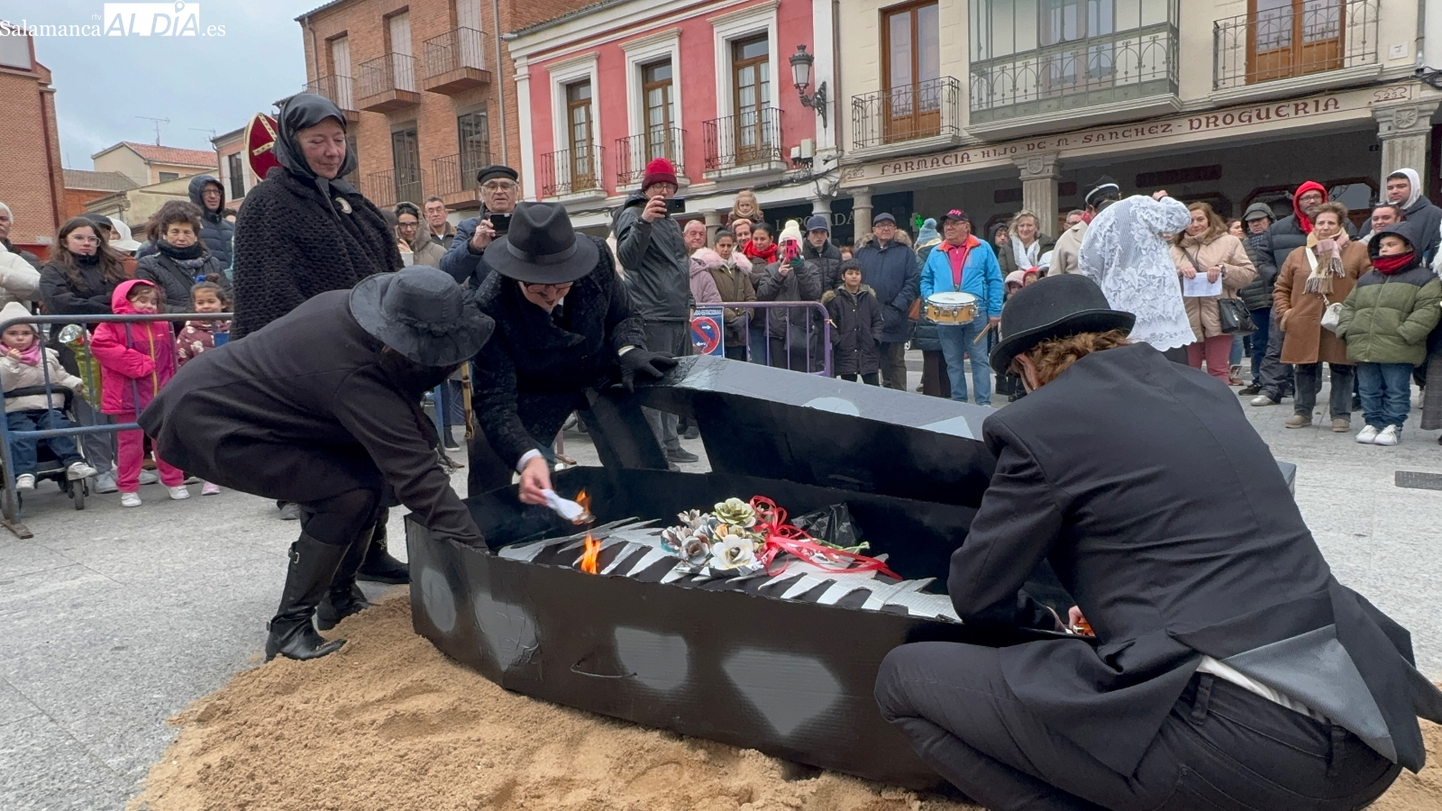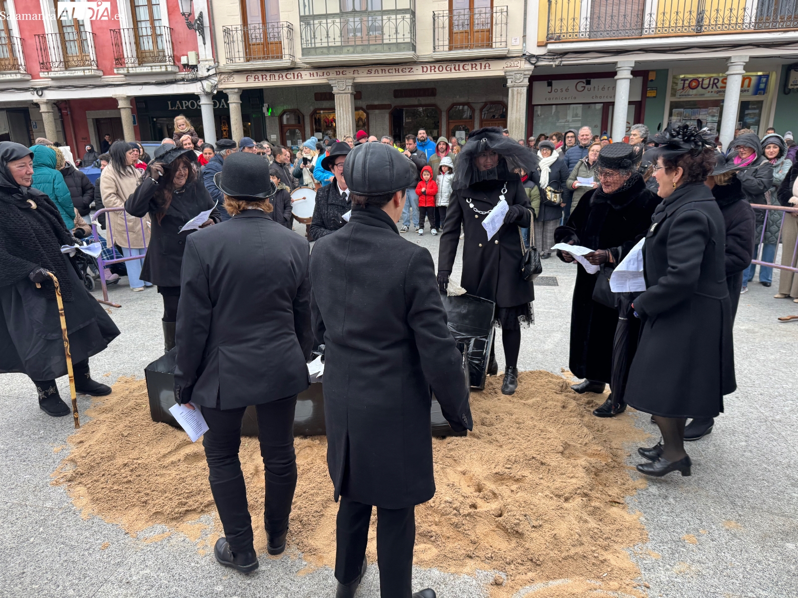 La celebración arrancaba a las cinco de la tarde, cuando los sones de la dulzaina de Alborada anunciaban la salida de la ‘santa comitiva’. Los llantos y largos lamentos de las viudas eran la simpática compañía al cortejo fúnebre, que recorrió las plazas manteniendo el tono desenfadado y festivo. El ataúd, gran protagonista de la jornada, avanzó entre bromas y miradas cómplices, recordando que el carnaval se despide… pero siempre promete volver.