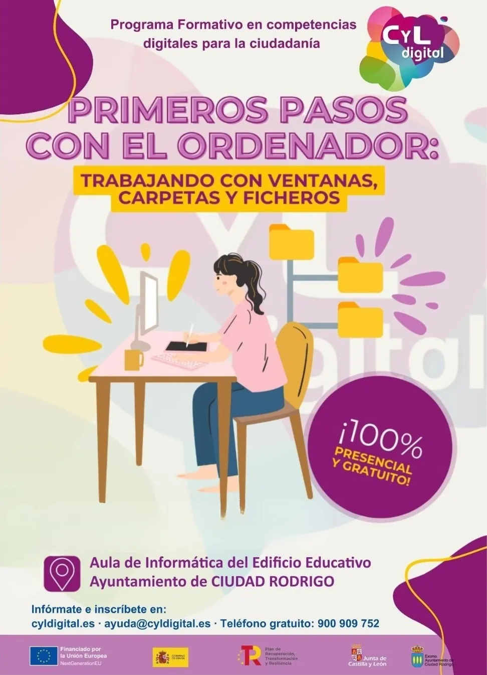 El Centro de Castilla y León Digital de Ciudad Rodrigo impartirá un curso gratuito de alfabetización tecnológica en la UNED del 23 al 26 de febrero. Titulado "Primeros pasos con el ordenador", está dirigido a personas sin conocimientos previos. La inscripción está abierta hasta el inicio de las clases.