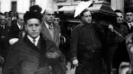 Y también por el mismo motivo, el comandante-alcalde Valle, el 4 de enero del 37, tres días después del entierro falangelizado cuando otro concejal de derechas, Ibáñez, que quiso solicitar el pésame, simplemente, para la familia, no le hubiera denegado la moción, pero le mandó callar, tajantemente dos veces.