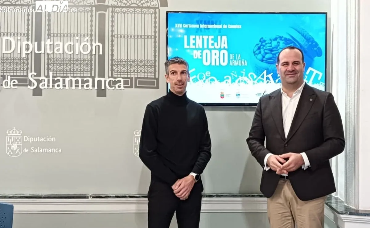 La provincia de Salamanca reafirma su compromiso con las letras a través de uno de sus concursos más consolidados. El diputado de Cultura, David Mingo, acompañado por el alcalde de Parada de Rubiales, José María Cubillo, ha presentado esta mañana en el Palacio de La Salina la 26ª edición del Certamen Internacional de Cuentos 'Lenteja de Oro de la Armuña'. Esta nueva convocatoria mantiene su atractivo principal con una dotación económica de 3.000 euros para el ganador, una cifra que posiciona a este evento organizado por un municipio de apenas 250 habitantes como un referente en su categoría.