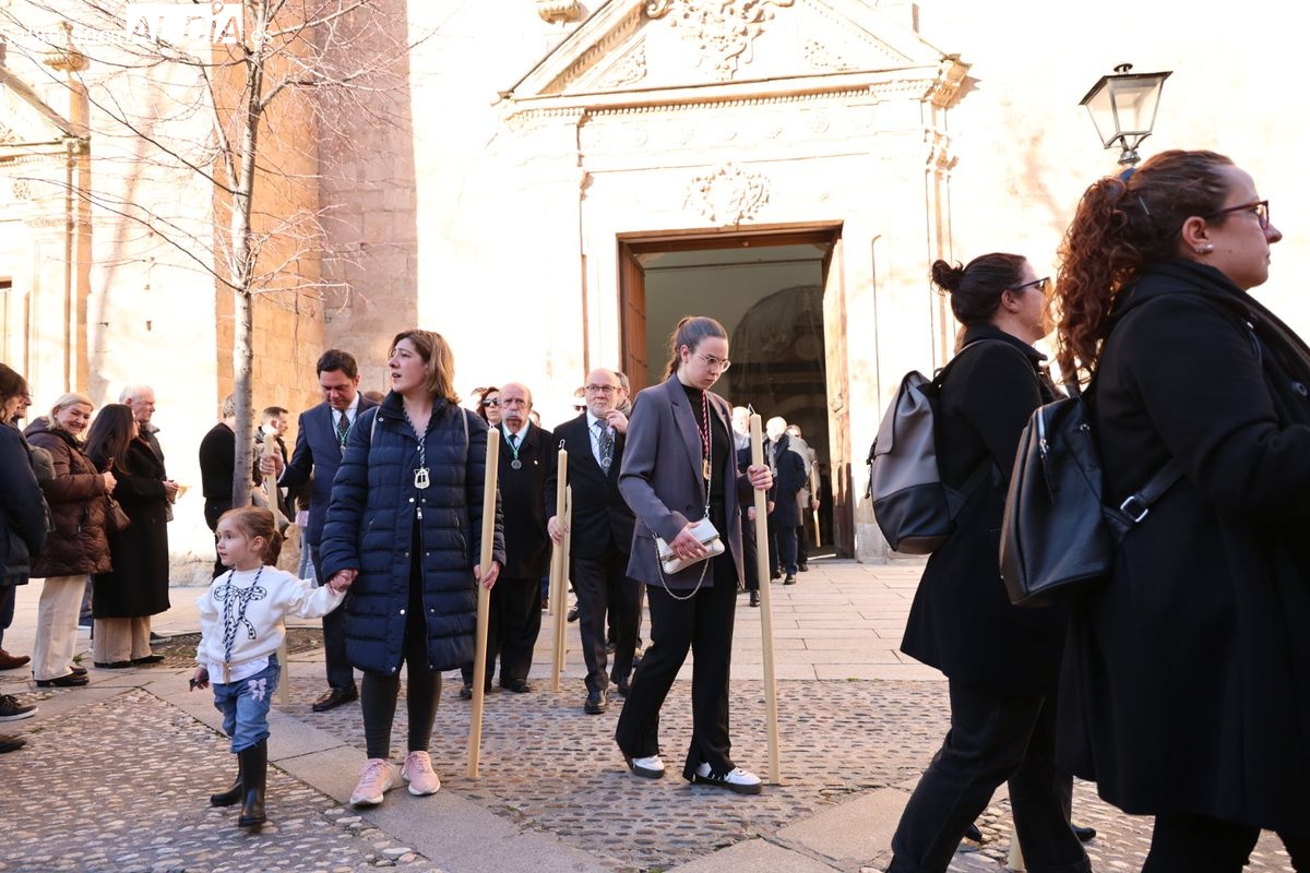 Tras finalizar el acto penitencial en el templo mayor, la comitiva ha emprendido el camino de regreso hacia el convento de las Úrsulas, completando así el traslado de la imagen del Crucificado.