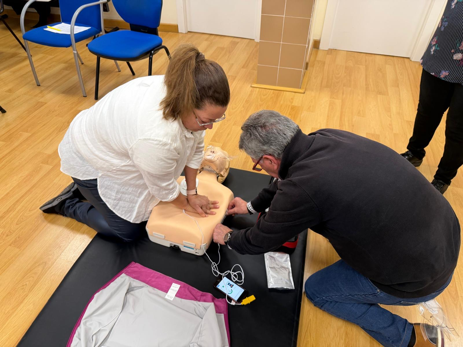 El Centro de Salud de Peñaranda realizaba este pasado sábado dos talleres destinados a ofrecer formación a la población sobre maniobras RCP y atragantamiento. Los profesionales sanitarios eran los encargados de desarrollar esta acción, en la que la técnica era parte fundamental, buscando que los participantes conozcan y manejen dichas técnicas para poder ofrecer una respuesta inmediata ante una emergencia. Desde el