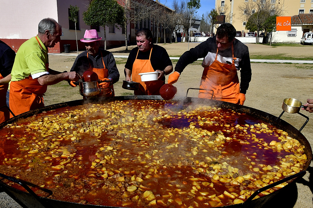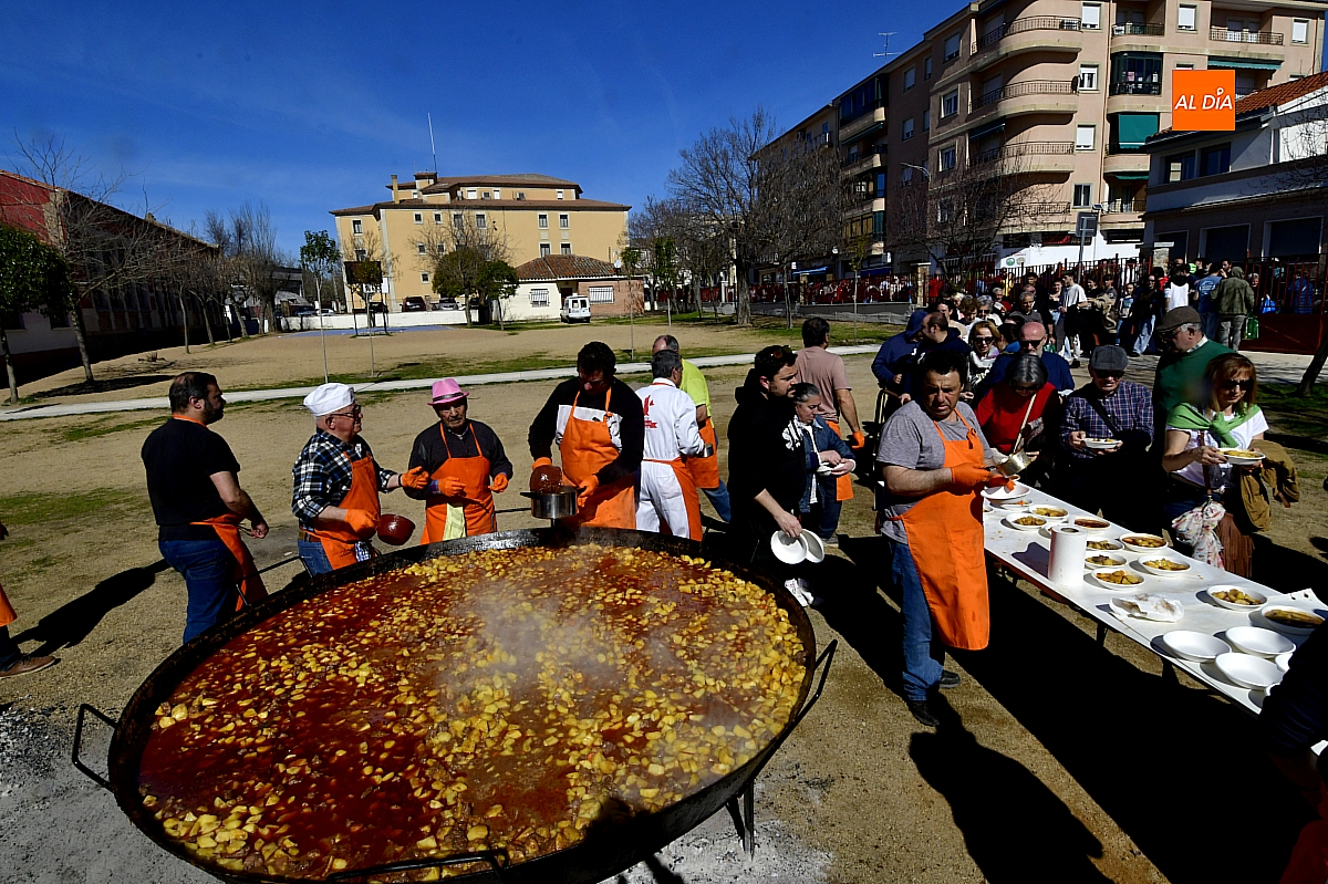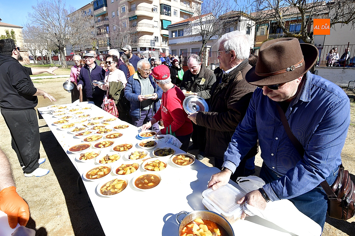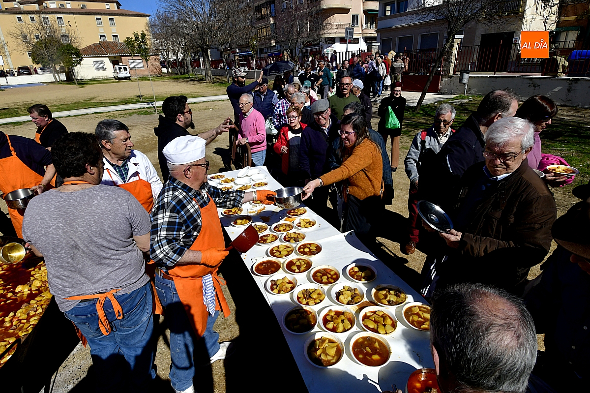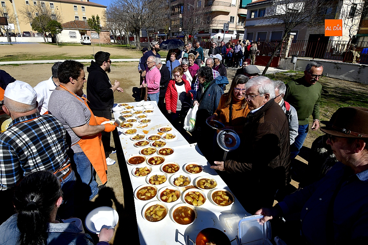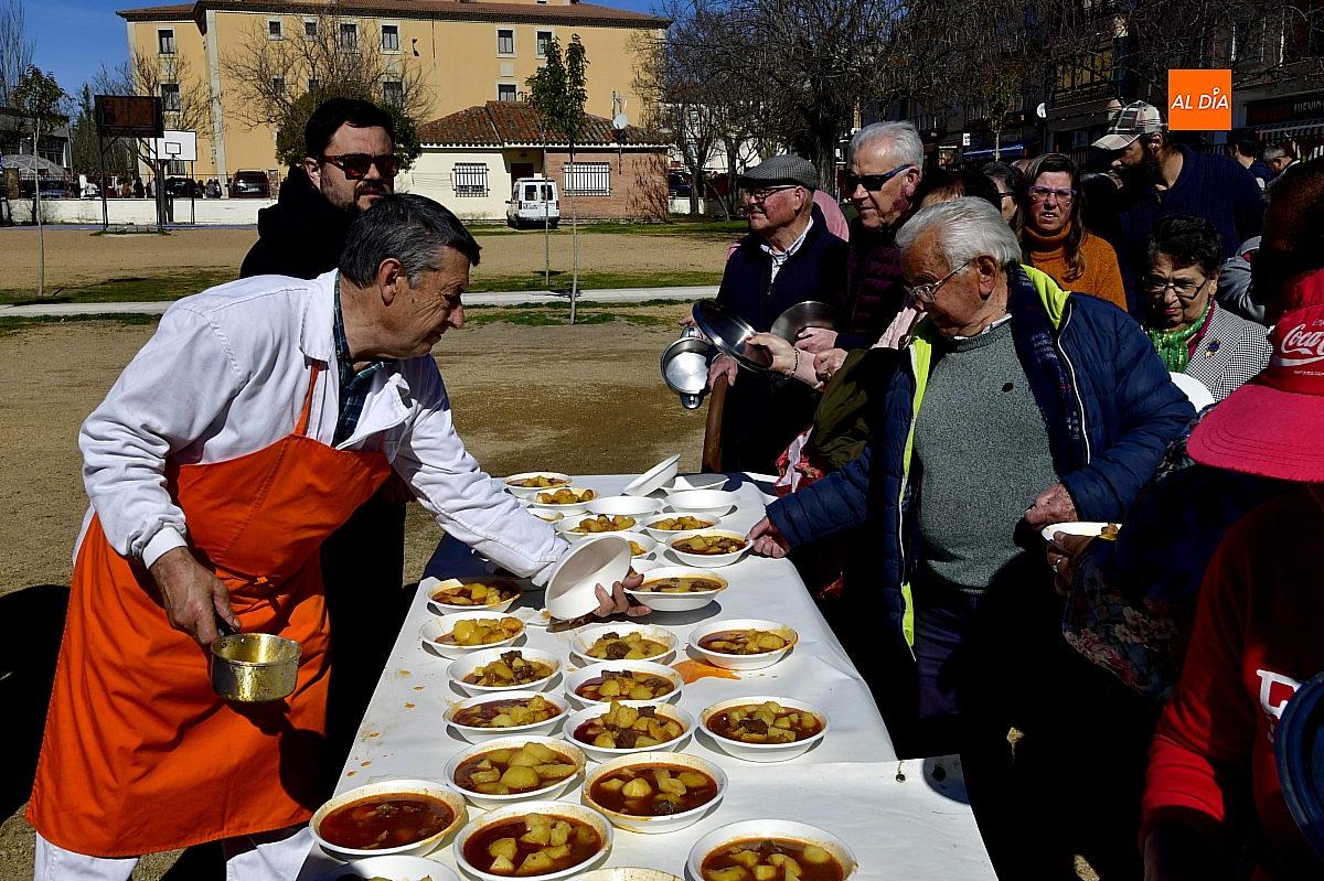 En el patio del Colegio de San Francisco, una treintena de voluntarios trabajaron desde primeras horas para elaborar cerca de 400 kilogramos de carne procedente de dos toros del Carnaval, a los que se sumaron otros 600 kilogramos de patatas repartidos en unas seis mil raciones. El reparto, de forma dádiva y ordenada, congregó a millares de personas que aguardaban su turno bajo un sol agradecido tras semanas de lluvias persistentes.