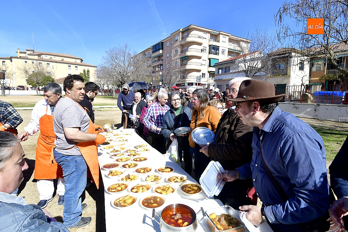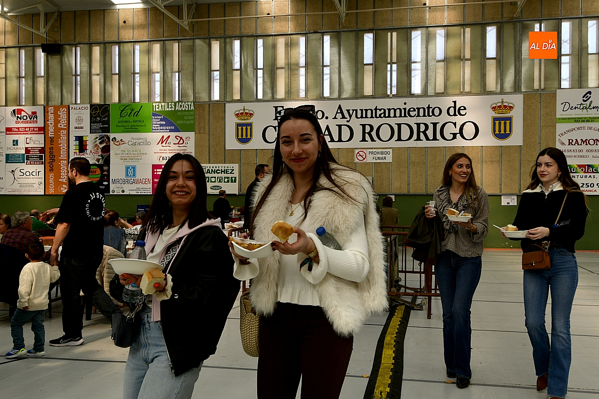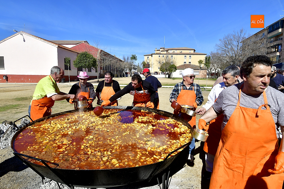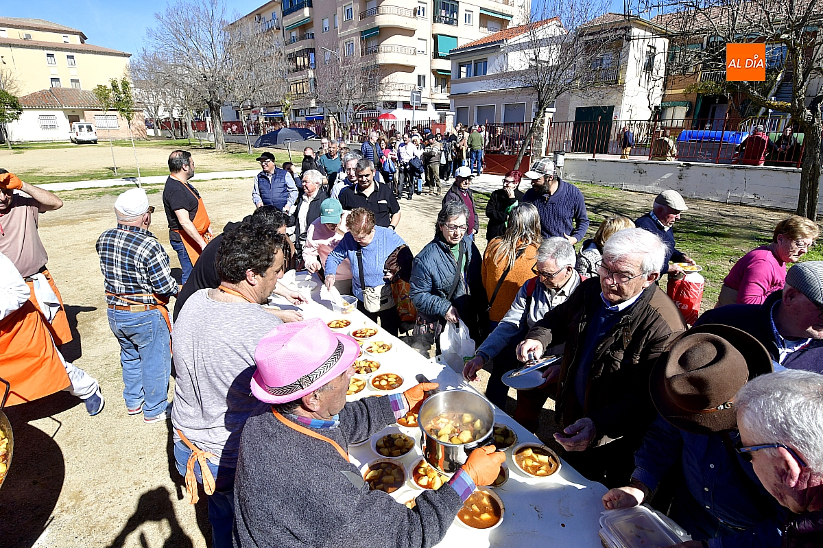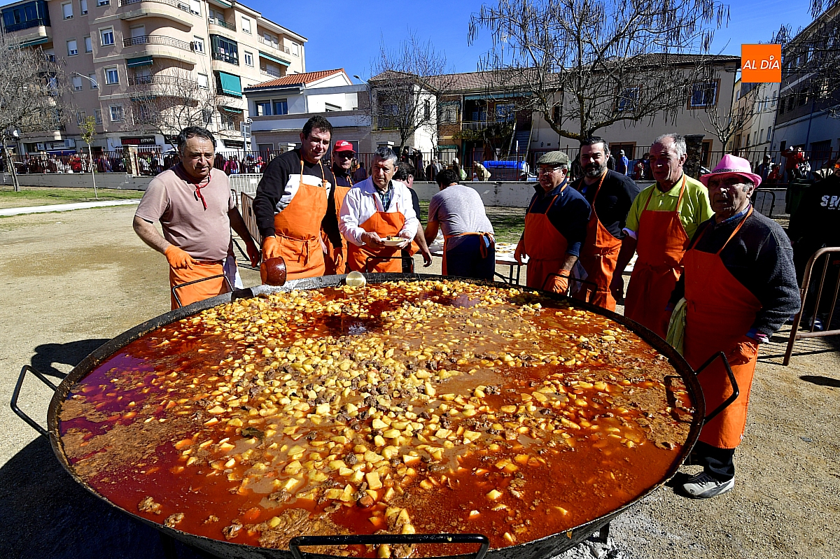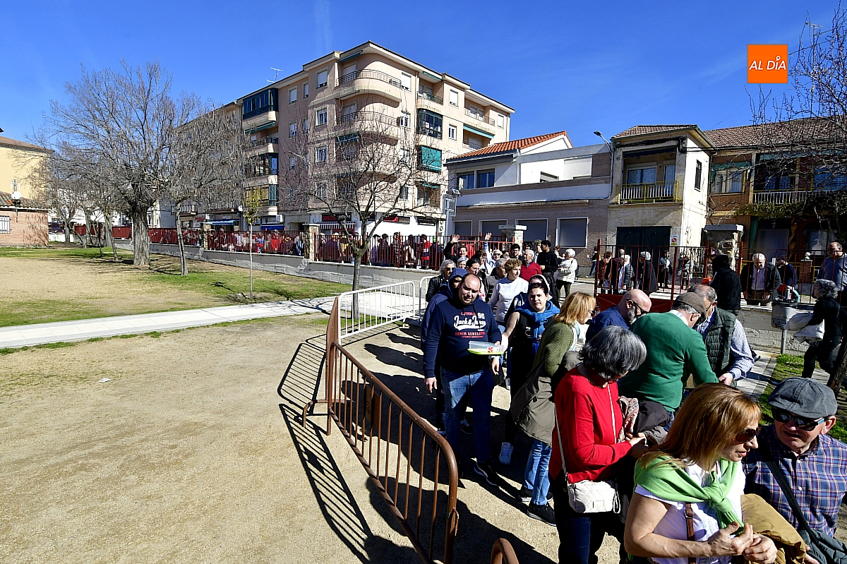 En el patio del Colegio de San Francisco, una treintena de voluntarios trabajaron desde primeras horas para elaborar cerca de 400 kilogramos de carne procedente de dos toros del Carnaval, a los que se sumaron otros 600 kilogramos de patatas repartidos en unas seis mil raciones. El reparto, de forma dádiva y ordenada, congregó a millares de personas que aguardaban su turno bajo un sol agradecido tras semanas de lluvias persistentes.