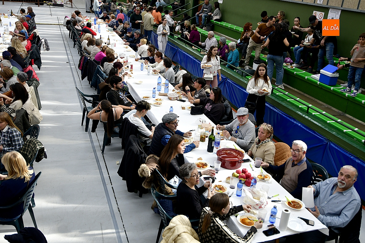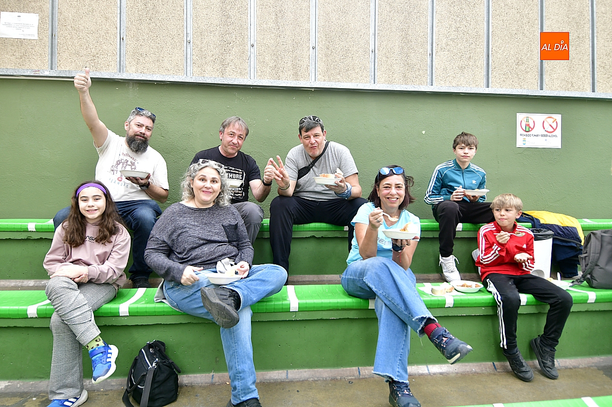 Las mesas instaladas en las pistas deportivas acogieron a familias y grupos de amigos, mientras que varios peñistas optaron por trasladar las cazuelas a las sedes festivas de la zona de Bolonia o improvisar el almuerzo al aire libre en el Picón, aprovechando la tarde luminosa.