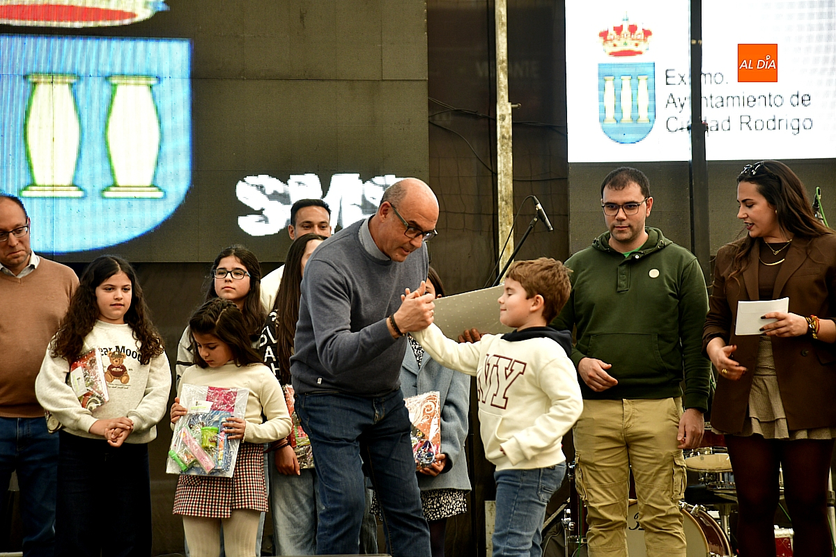 Concluida la comida, la atención se desplazó al escenario institucional, donde el alcalde y miembros de la corporación municipal procedieron a la entrega de premios correspondientes a los concursos celebrados durante las carnestolendas: desde los certámenes de dibujo hasta los galardones de carrozas y disfraces.