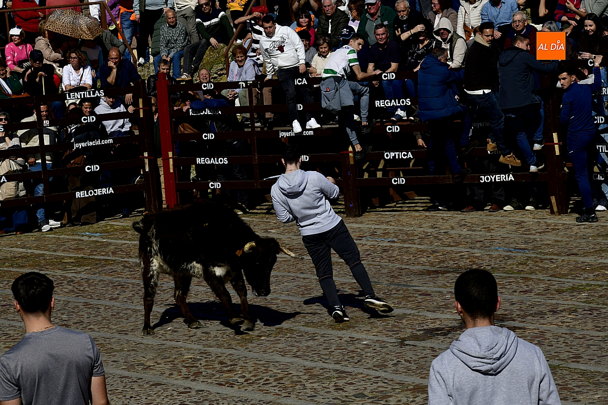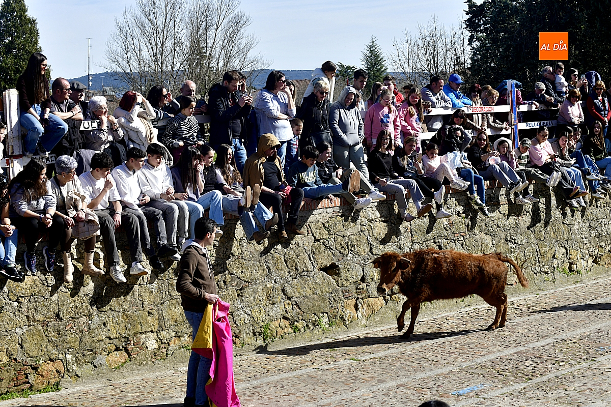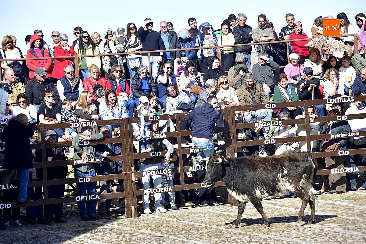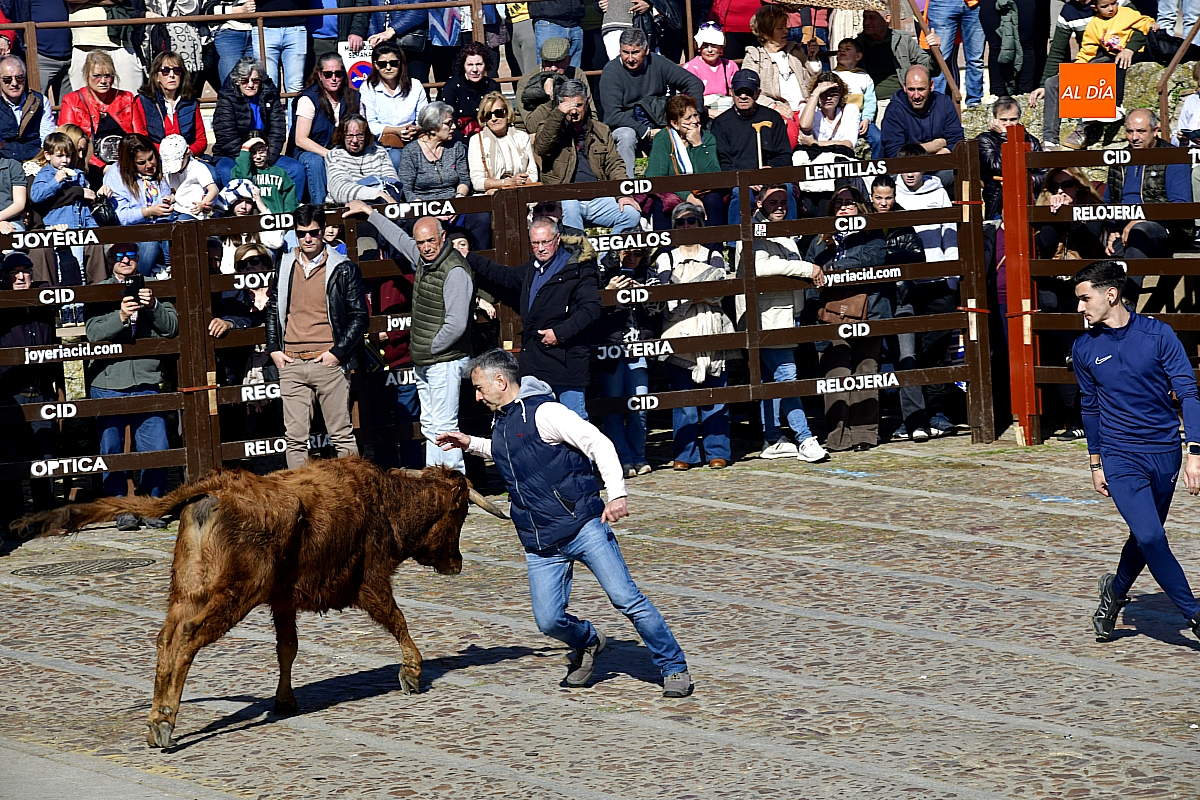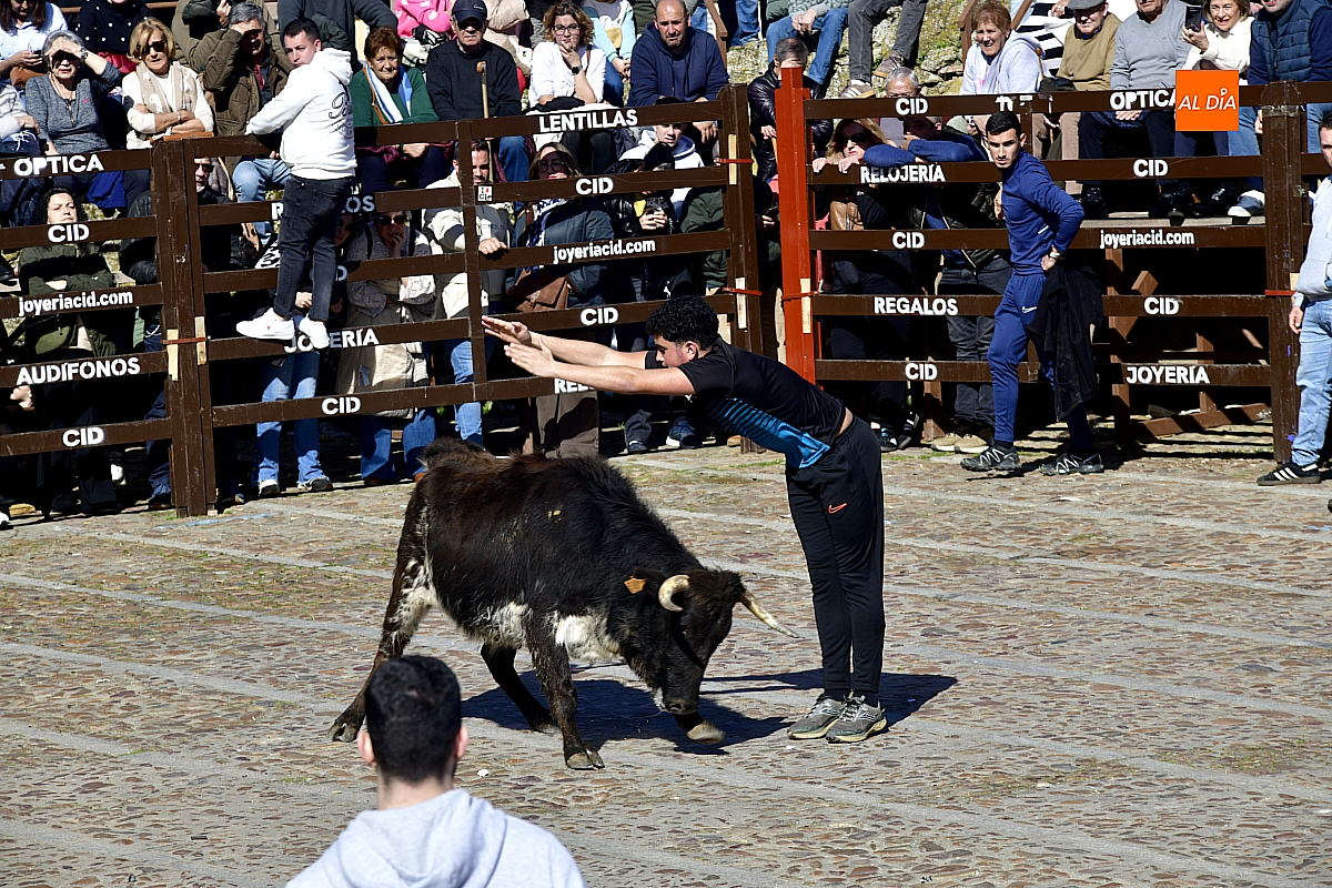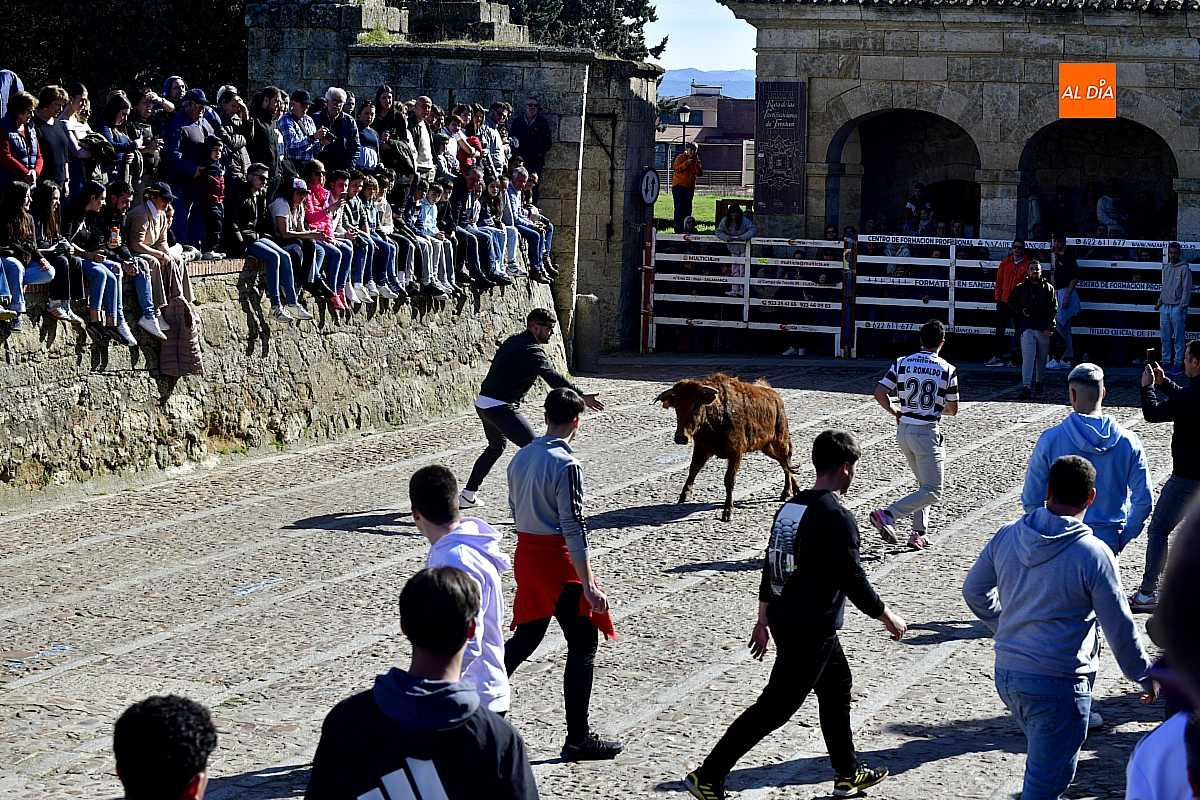 Los mirobrigenses disfrutaron de un espléndido día soleado en este enclave, convertido en escenario de una animada suelta de dos vaquillas procedentes de El Bodón, ganadería de Sänchez Herrero. Las reses ofrecieron un juego vivo y constante, recorriendo sin descanso el recinto empedrado y respondiendo con prontitud a las llamadas de los jóvenes participantes, muchos de ellos en sus primeros escarceos con el recorte. Para estos mozos, la capea constituye una suerte de rito iniciático: un espacio de aprendizaje donde se ensayan valor y técnica antes de aspirar, en años venideros, a enfrentarse a los toros de mayor porte que protagonizan las jornadas centrales del Carnaval.