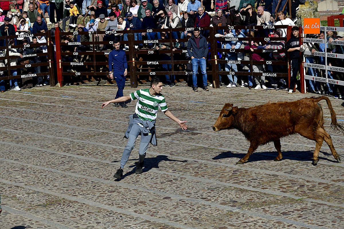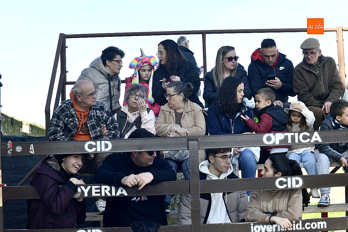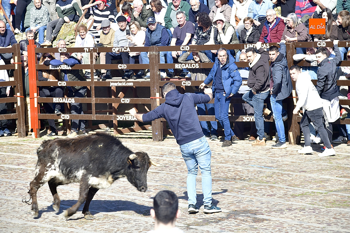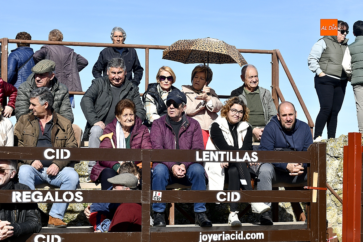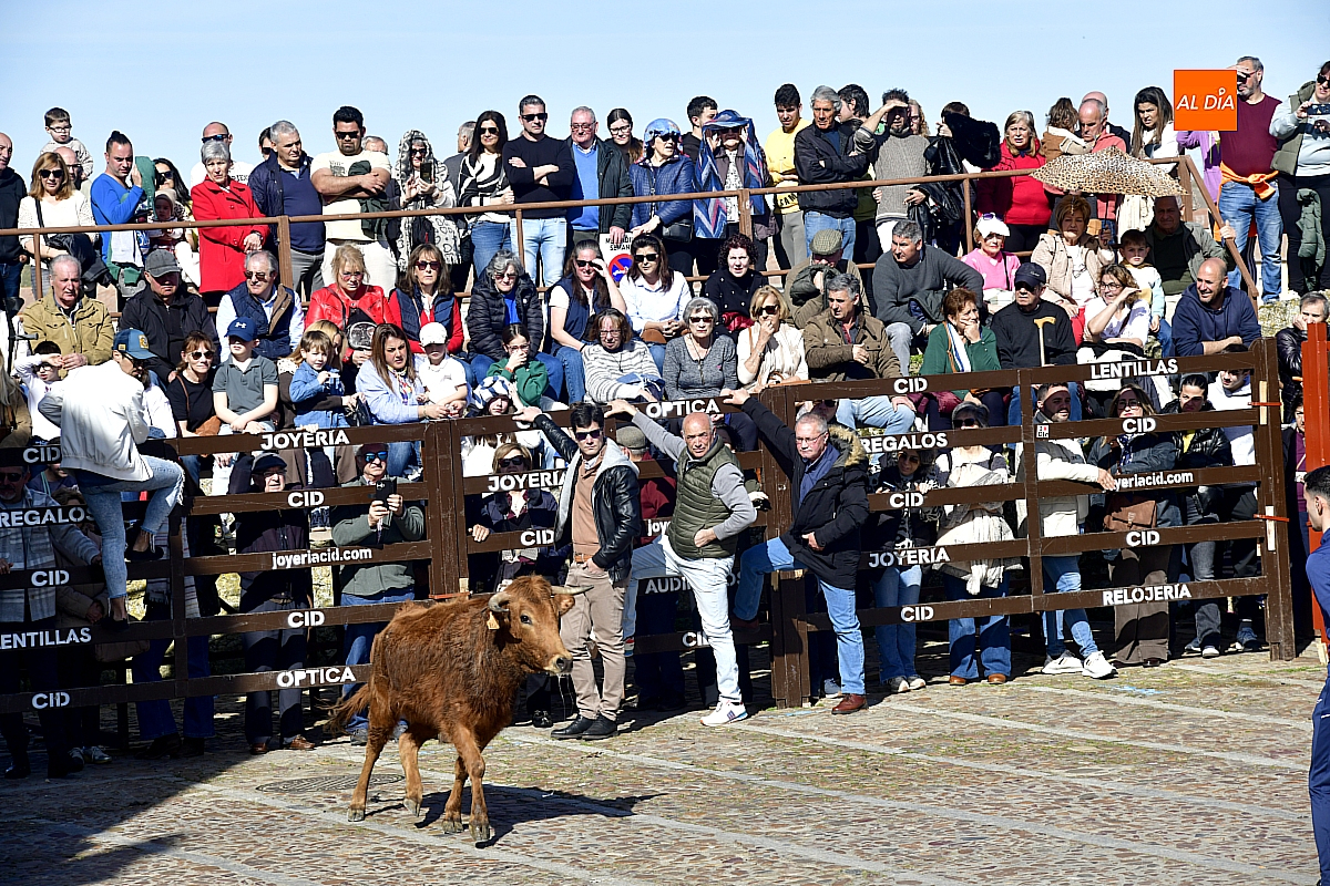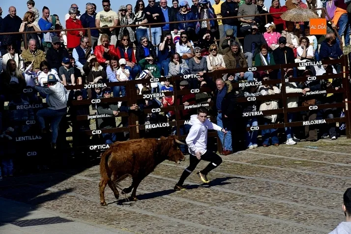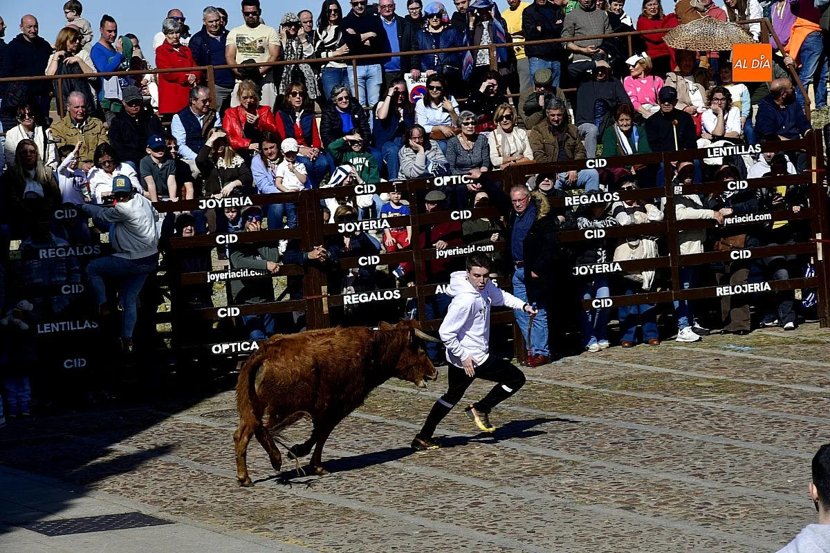 Los mirobrigenses disfrutaron de un espléndido día soleado en este enclave, convertido en escenario de una animada suelta de dos vaquillas procedentes de El Bodón, ganadería de Sänchez Herrero. Las reses ofrecieron un juego vivo y constante, recorriendo sin descanso el recinto empedrado y respondiendo con prontitud a las llamadas de los jóvenes participantes, muchos de ellos en sus primeros escarceos con el recorte. Para estos mozos, la capea constituye una suerte de rito iniciático: un espacio de aprendizaje donde se ensayan valor y técnica antes de aspirar, en años venideros, a enfrentarse a los toros de mayor porte que protagonizan las jornadas centrales del Carnaval.