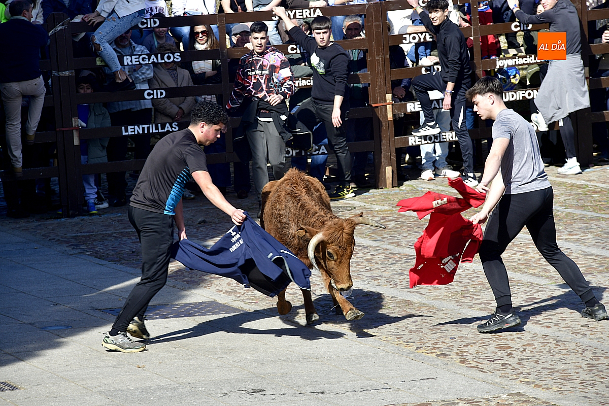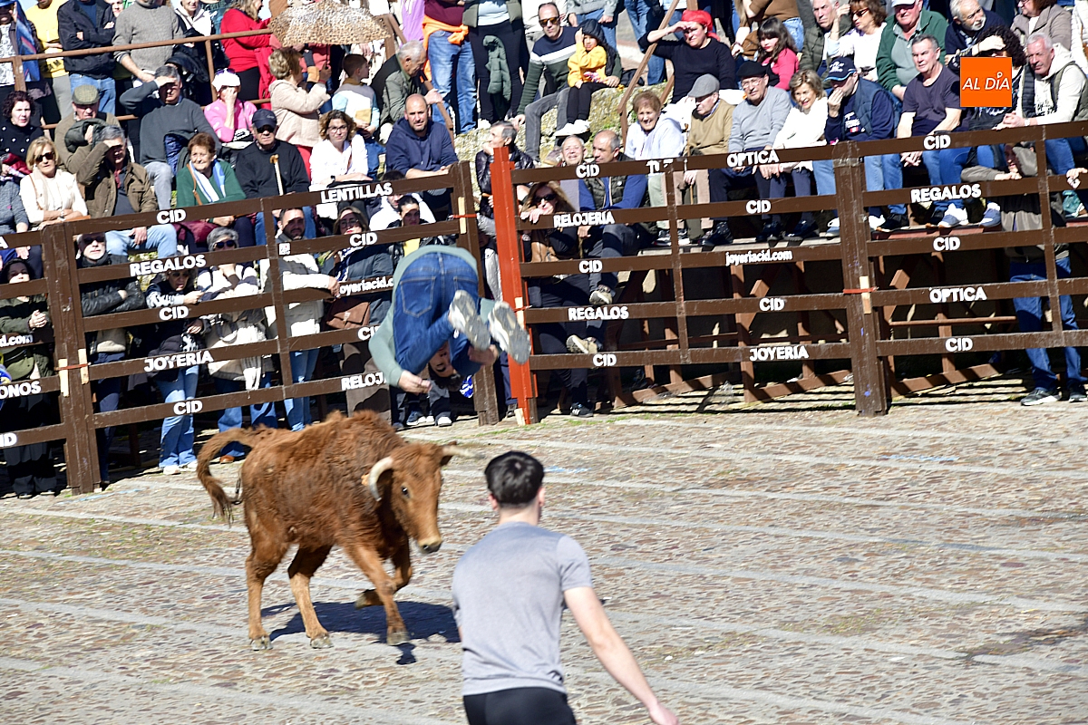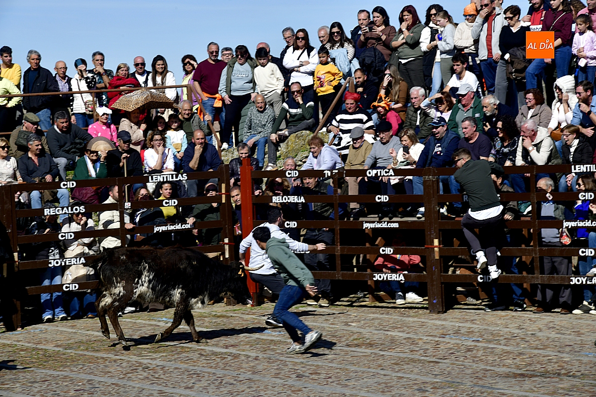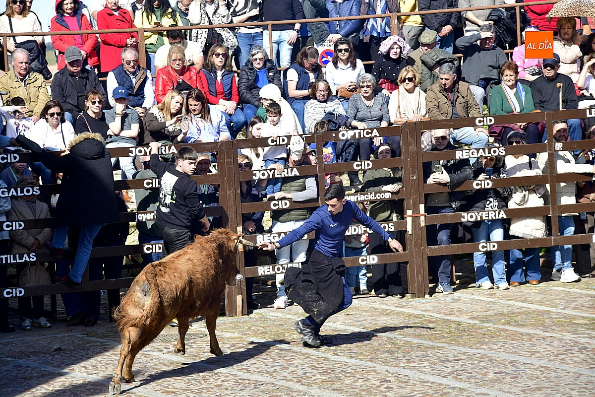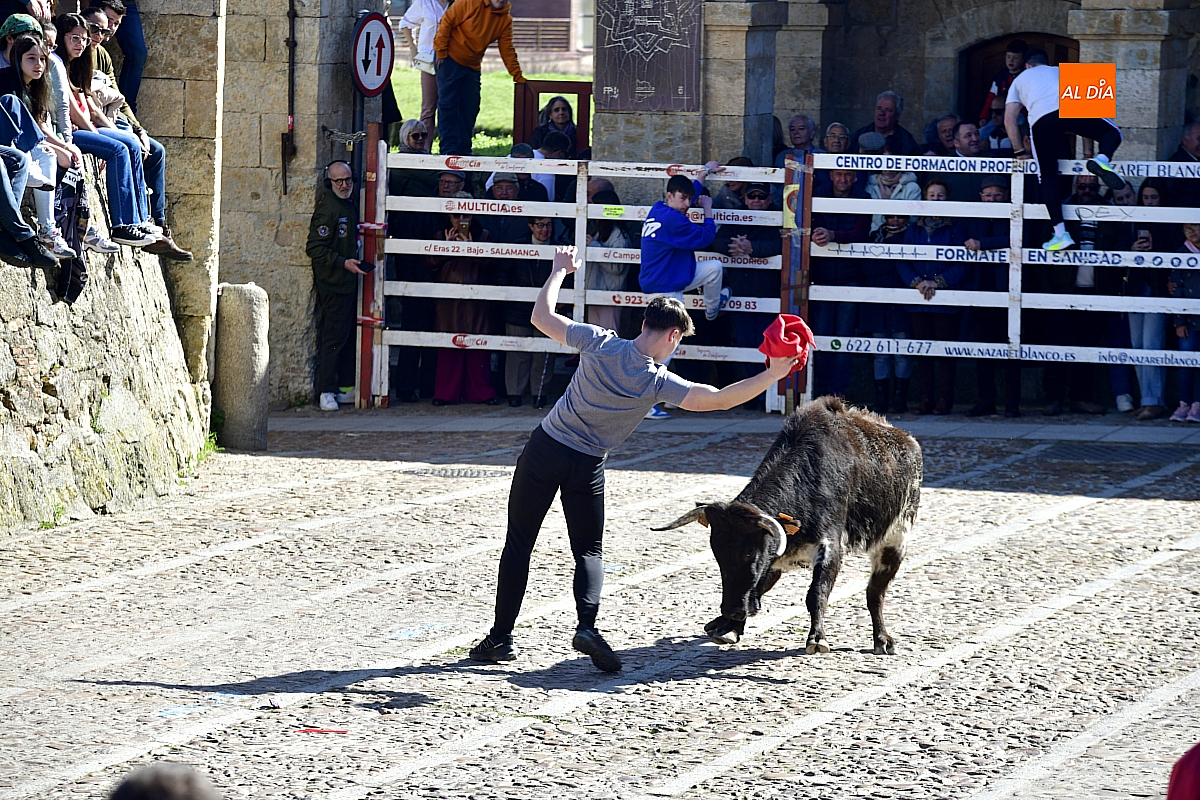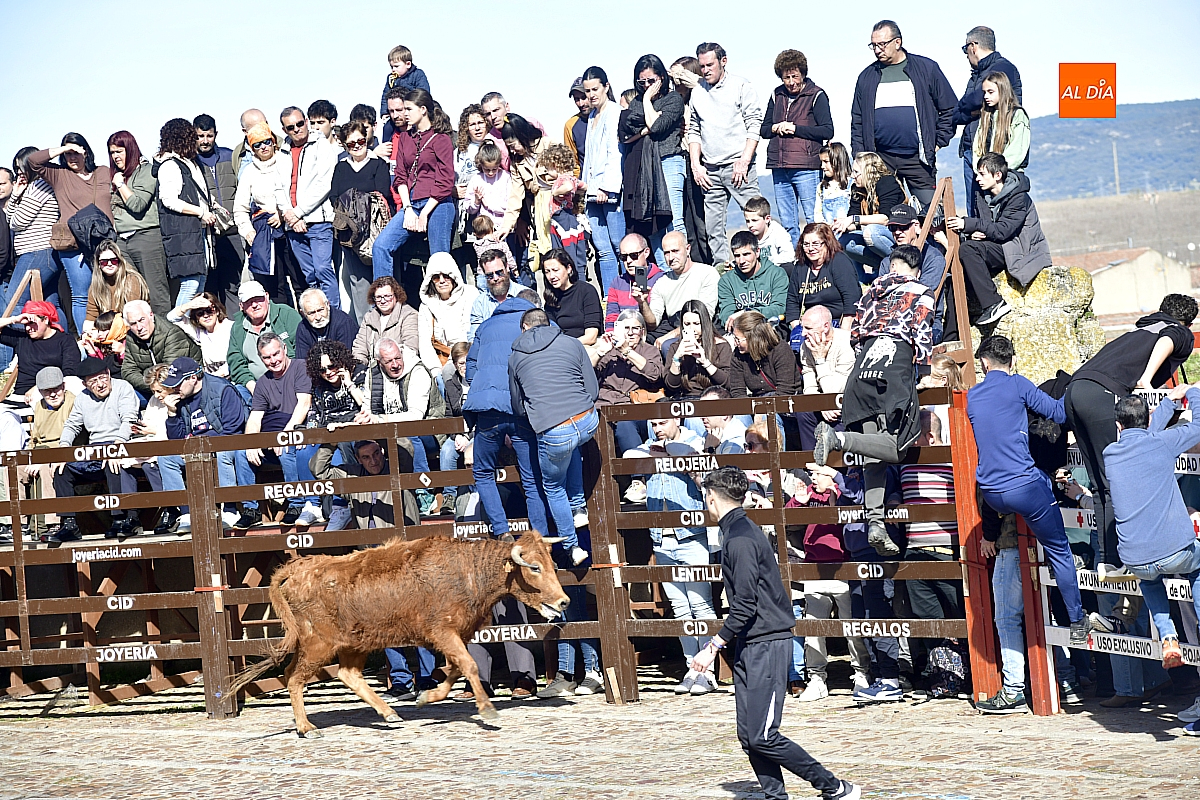 Los mirobrigenses disfrutaron de un espléndido día soleado en este enclave, convertido en escenario de una animada suelta de dos vaquillas procedentes de El Bodón, ganadería de Sänchez Herrero. Las reses ofrecieron un juego vivo y constante, recorriendo sin descanso el recinto empedrado y respondiendo con prontitud a las llamadas de los jóvenes participantes, muchos de ellos en sus primeros escarceos con el recorte. Para estos mozos, la capea constituye una suerte de rito iniciático: un espacio de aprendizaje donde se ensayan valor y técnica antes de aspirar, en años venideros, a enfrentarse a los toros de mayor porte que protagonizan las jornadas centrales del Carnaval.