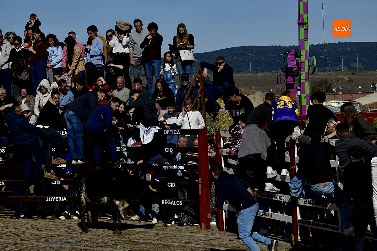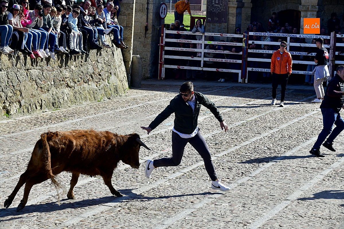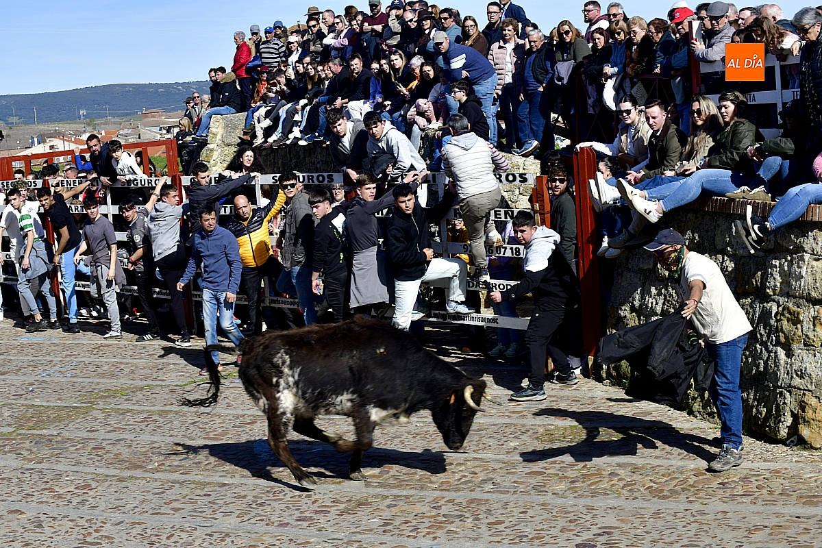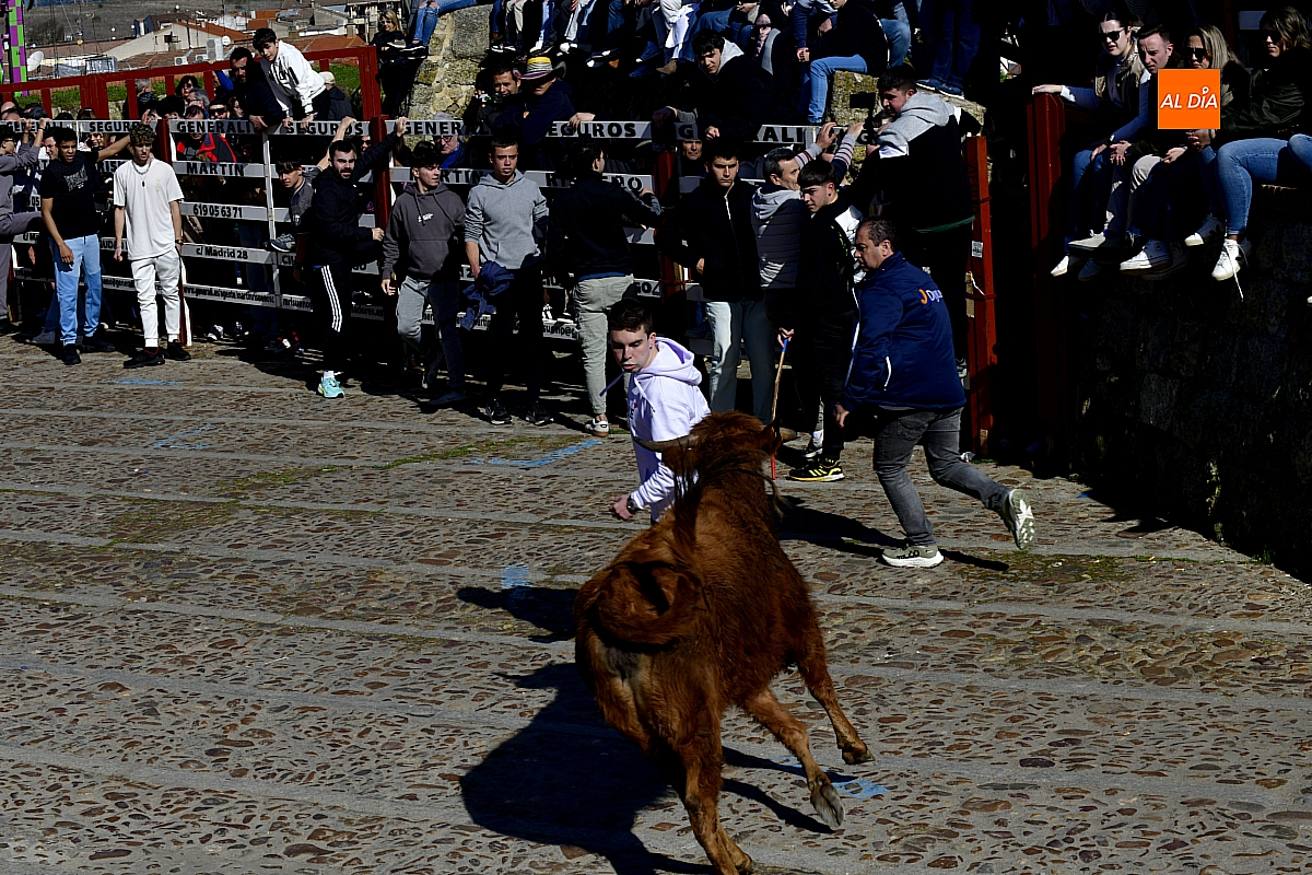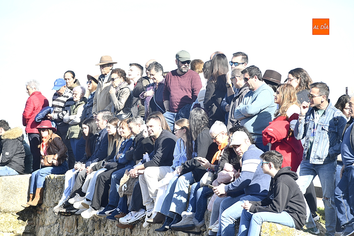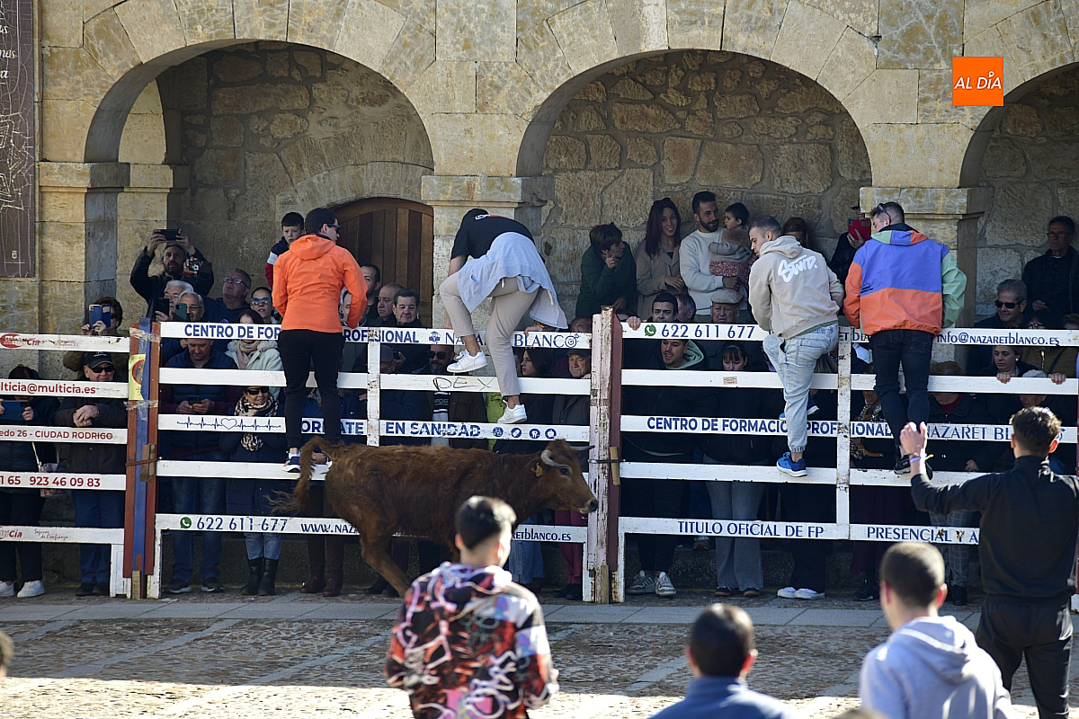 Los mirobrigenses disfrutaron de un espléndido día soleado en este enclave, convertido en escenario de una animada suelta de dos vaquillas procedentes de El Bodón, ganadería de Sänchez Herrero. Las reses ofrecieron un juego vivo y constante, recorriendo sin descanso el recinto empedrado y respondiendo con prontitud a las llamadas de los jóvenes participantes, muchos de ellos en sus primeros escarceos con el recorte. Para estos mozos, la capea constituye una suerte de rito iniciático: un espacio de aprendizaje donde se ensayan valor y técnica antes de aspirar, en años venideros, a enfrentarse a los toros de mayor porte que protagonizan las jornadas centrales del Carnaval.