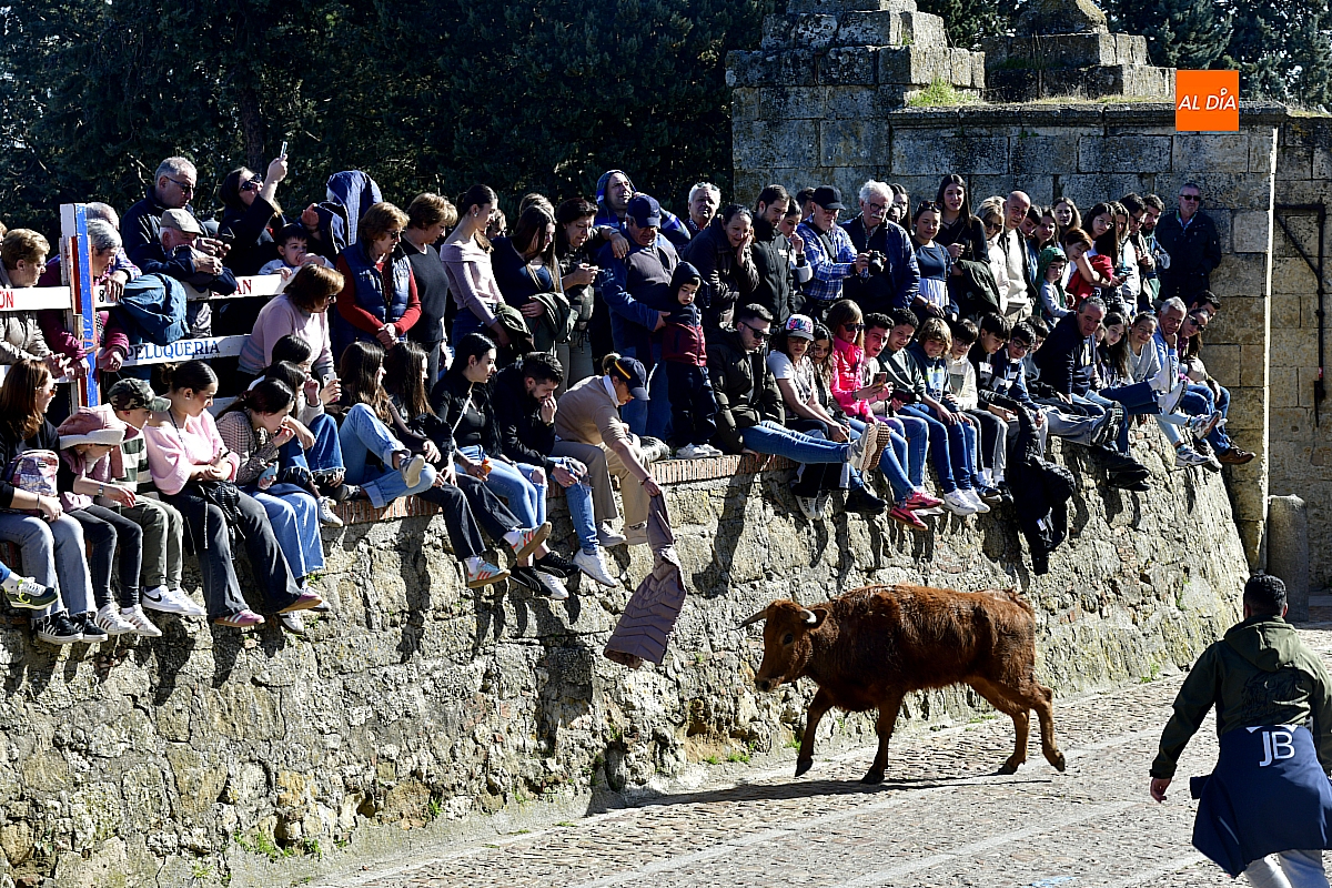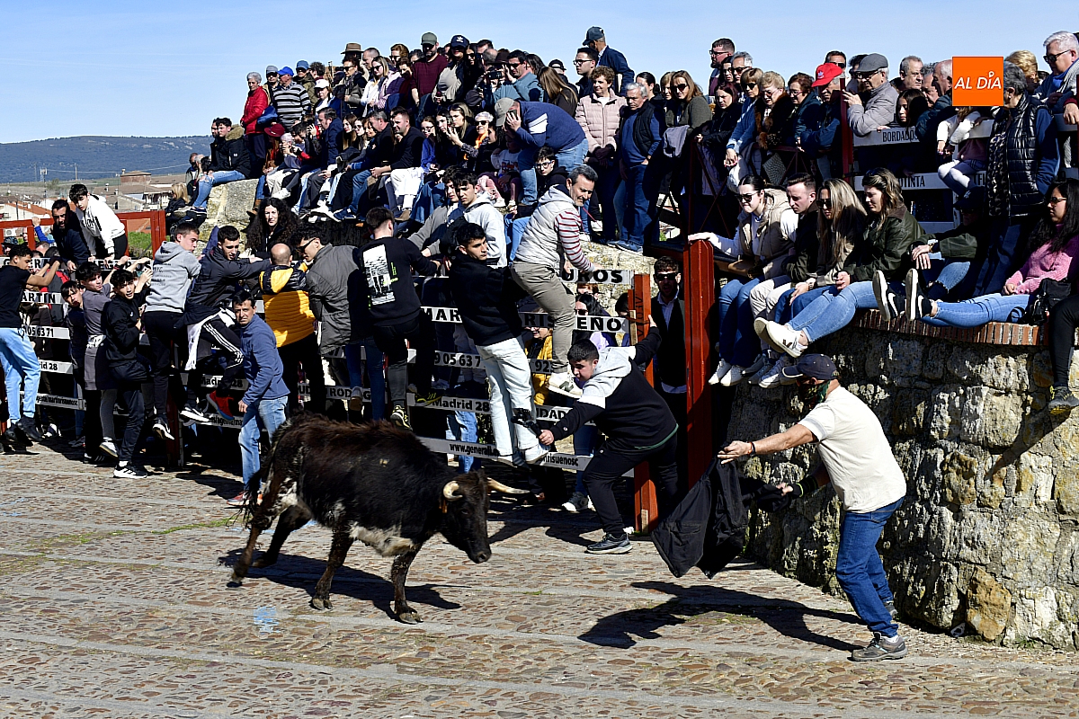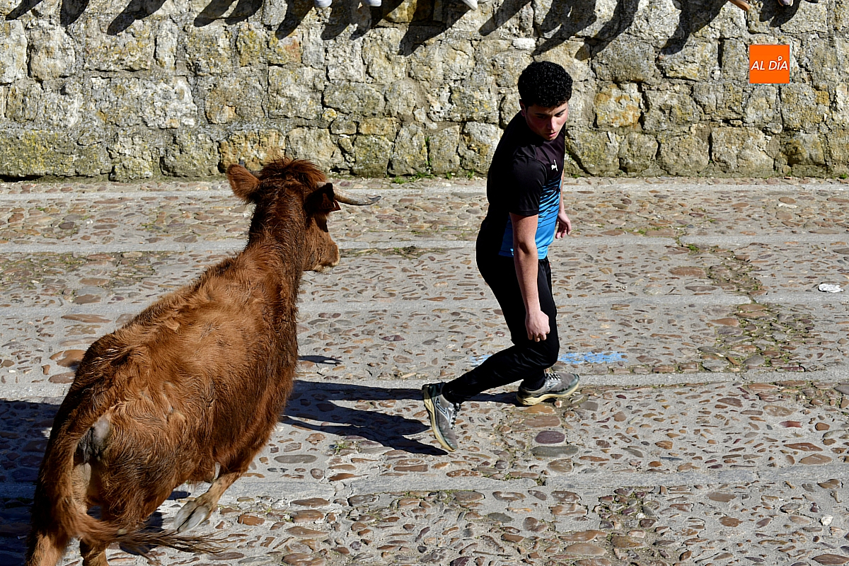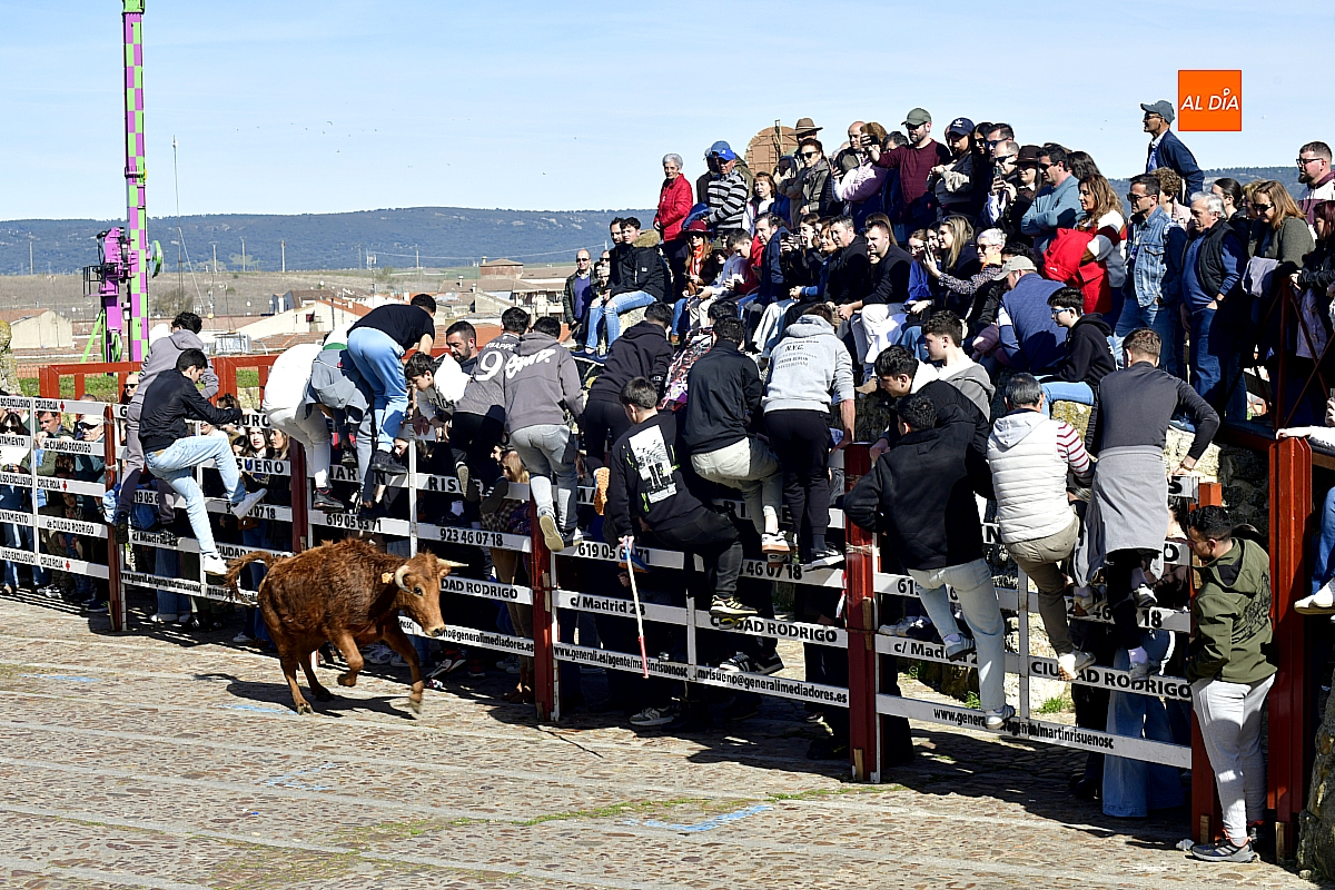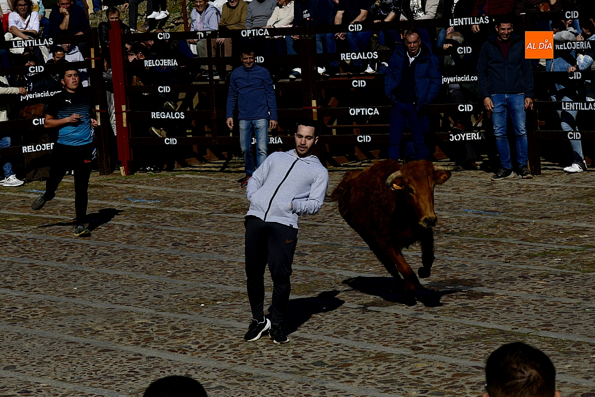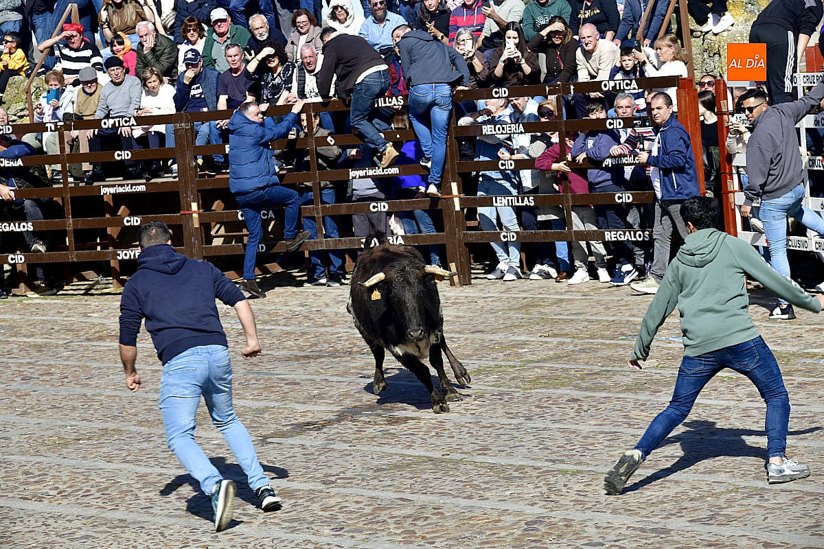 Los mirobrigenses disfrutaron de un espléndido día soleado en este enclave, convertido en escenario de una animada suelta de dos vaquillas procedentes de El Bodón, ganadería de Sänchez Herrero. Las reses ofrecieron un juego vivo y constante, recorriendo sin descanso el recinto empedrado y respondiendo con prontitud a las llamadas de los jóvenes participantes, muchos de ellos en sus primeros escarceos con el recorte. Para estos mozos, la capea constituye una suerte de rito iniciático: un espacio de aprendizaje donde se ensayan valor y técnica antes de aspirar, en años venideros, a enfrentarse a los toros de mayor porte que protagonizan las jornadas centrales del Carnaval.