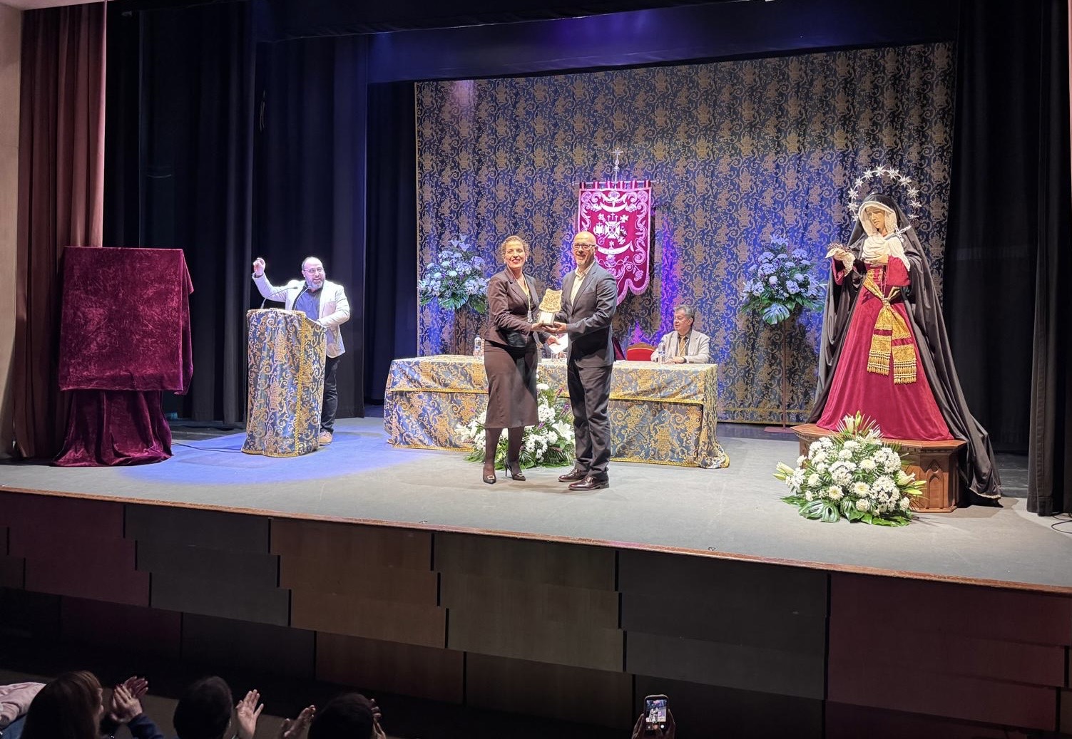 El acto, organizado por la Hermandad de Cofradías, estuvo cargado de simbolismo y emociones. En el transcurso del mismo, Angel Garcia ‘Lillo’ recogía los premios como ganador y accésit del XVI Concurso de Fotografía de la Hermandad de Cofradías, cuya instantánea promocionará a nivel nacional la Semana Santa de este año.
