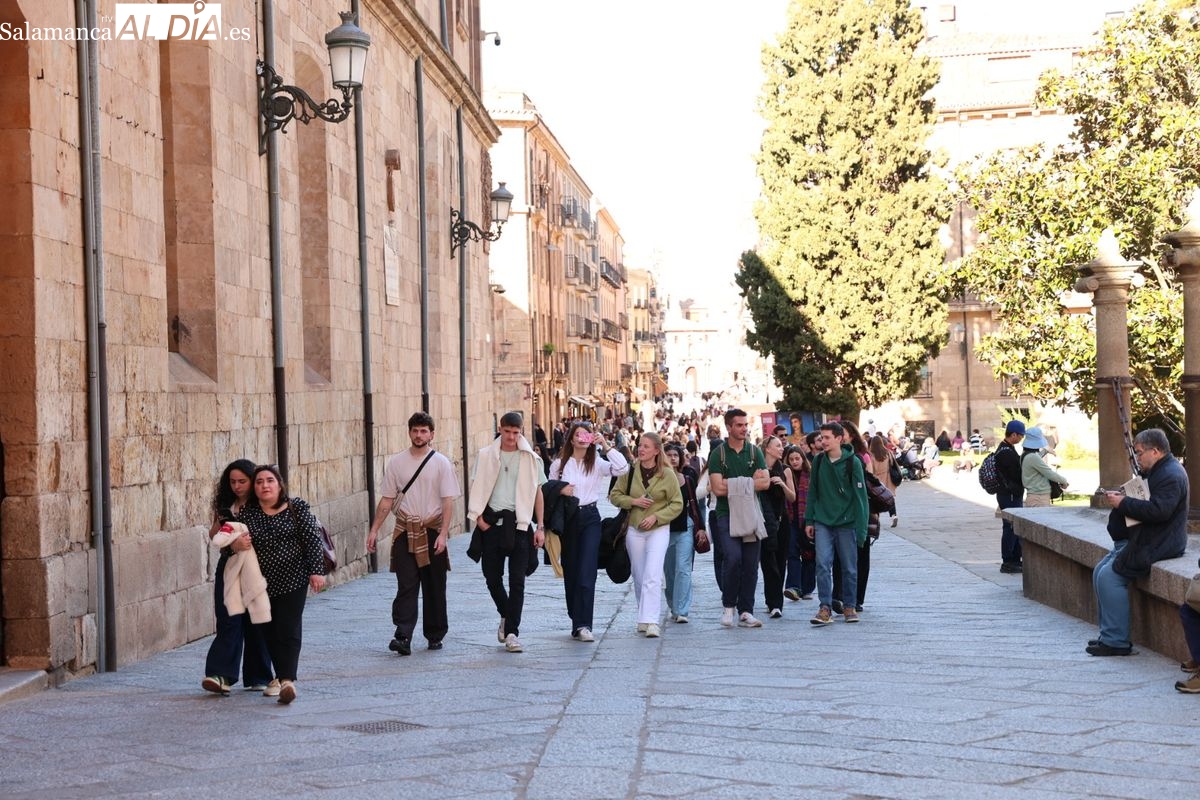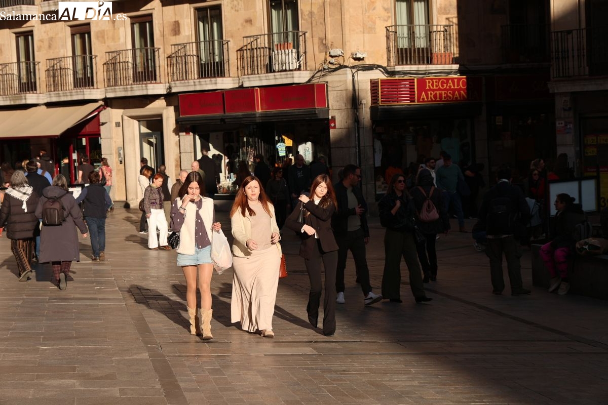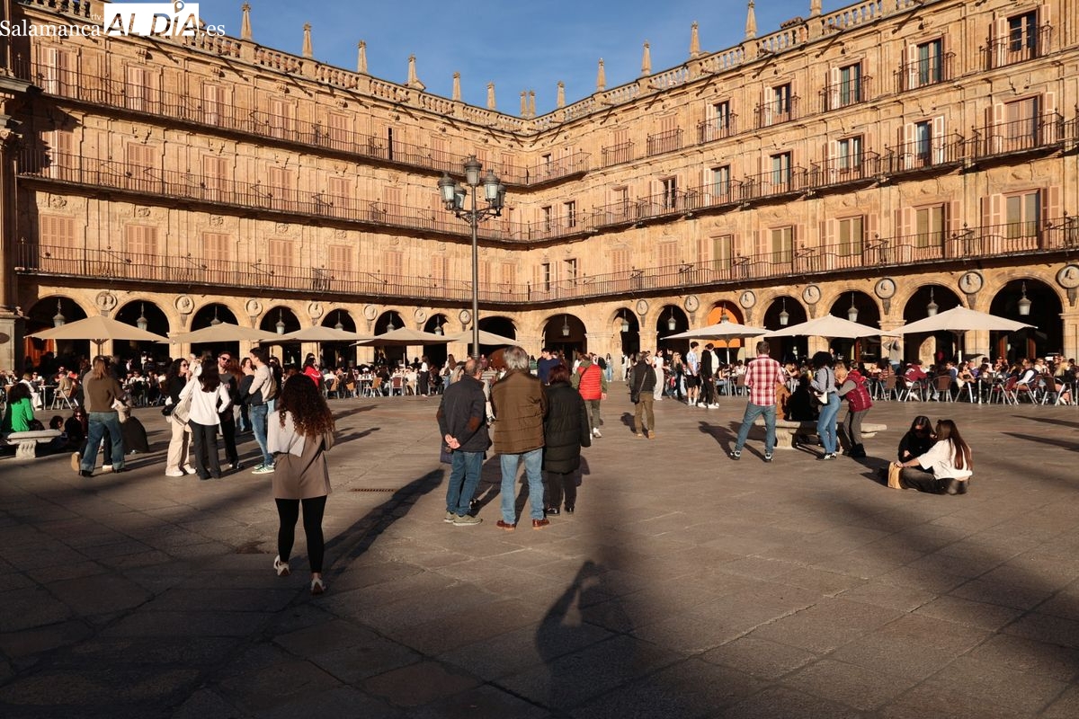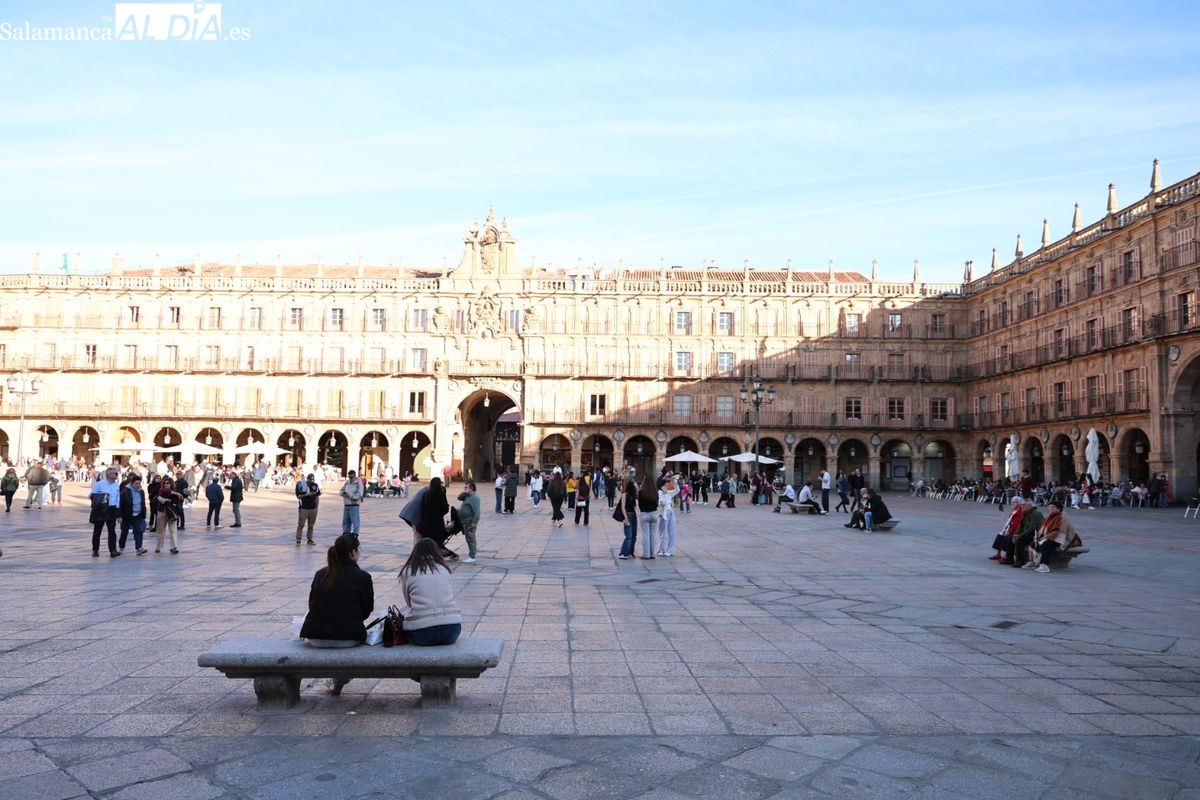 El cambio de tendencia en la meteorología, marcado por la presencia del sol y unos termómetros que han registrado valores propios de la primavera, ha transformado la imagen del casco histórico durante este domingo. Las calles aledañas a la Plaza Mayor y los principales enclaves monumentales han registrado un gran ambiente desde primera hora de la mañana, con una mezcla de vecinos y turistas que han querido aprovechar la ausencia de precipitaciones después de varias semanas de inestabilidad atmosférica.