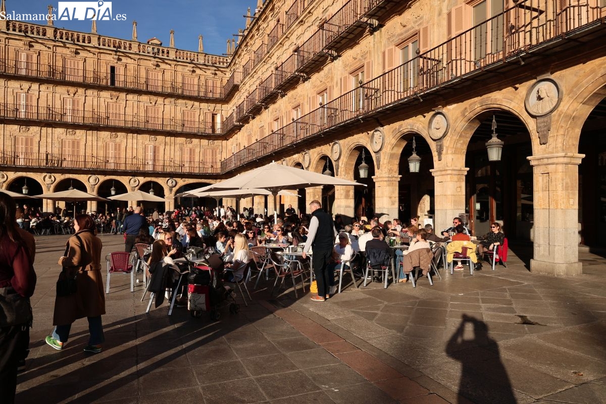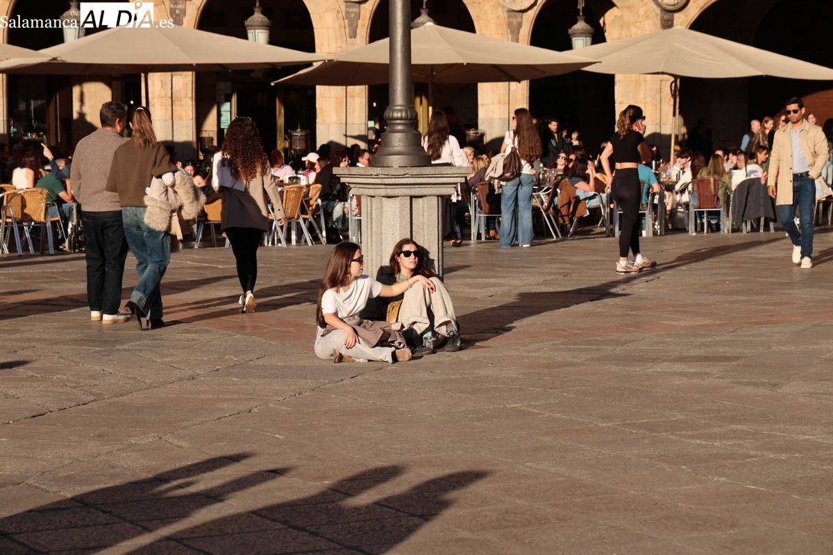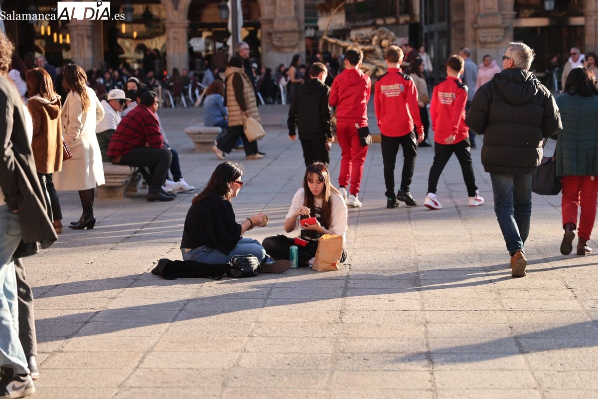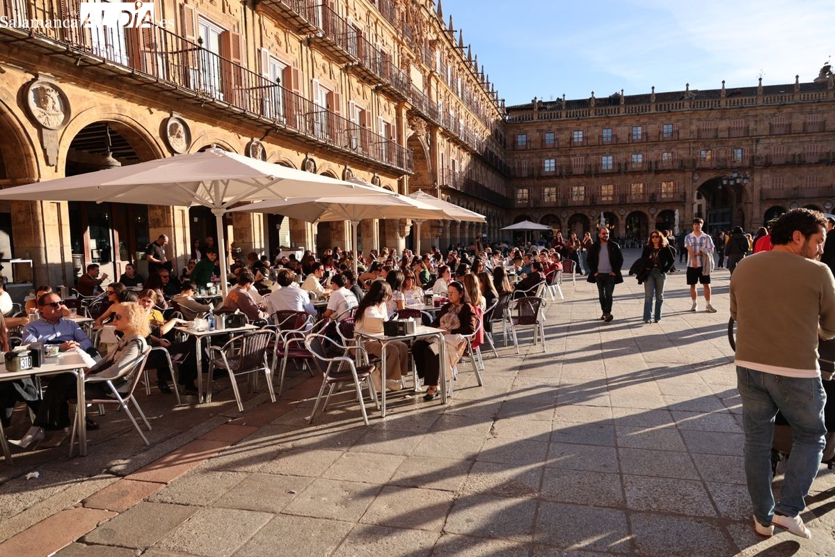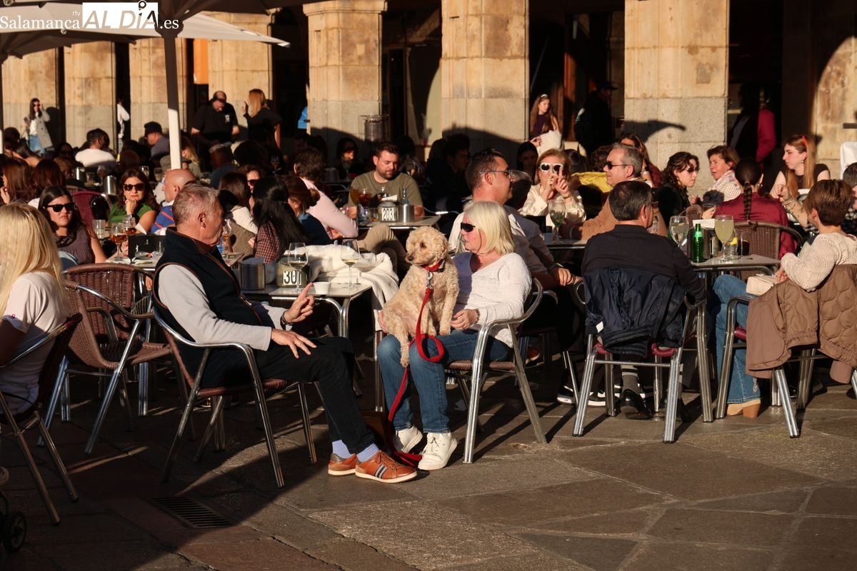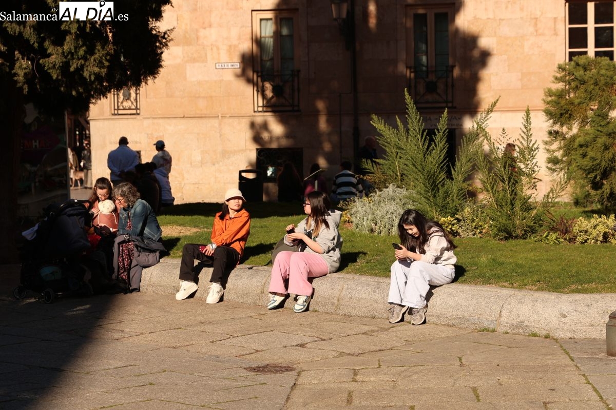 El cambio meteorológico ha propiciado una gran afluencia de salmantinos y turistas en el casco histórico y las terrazas de la ciudad
