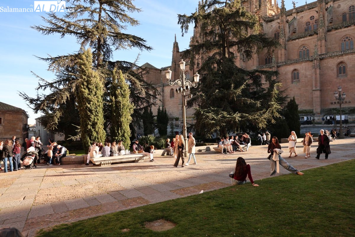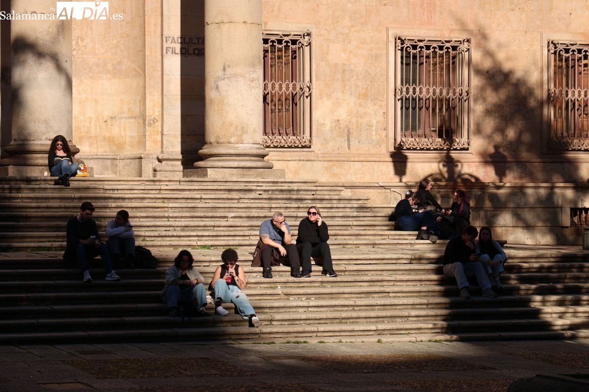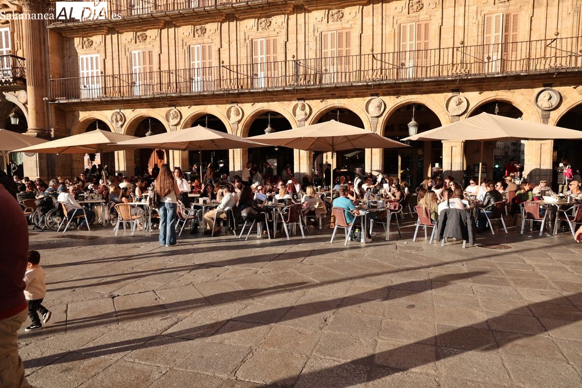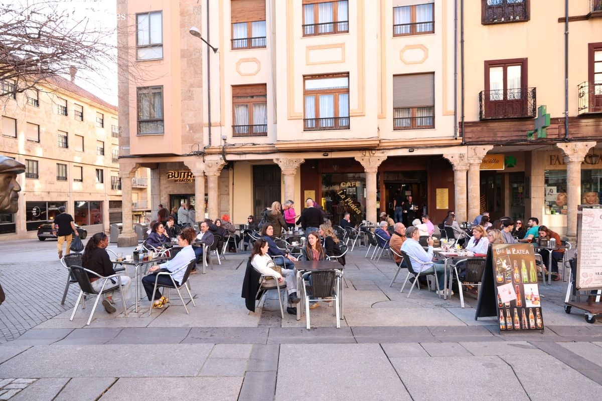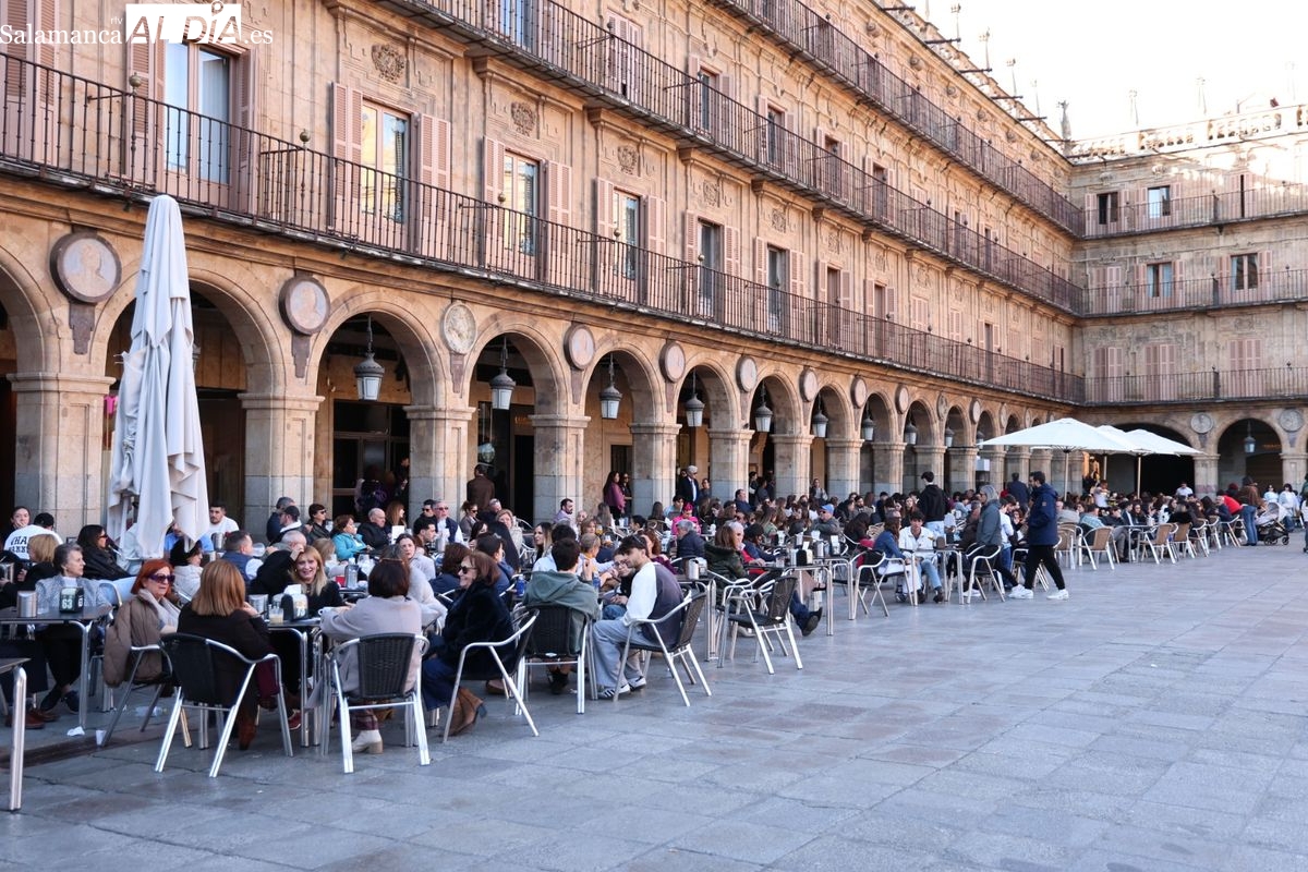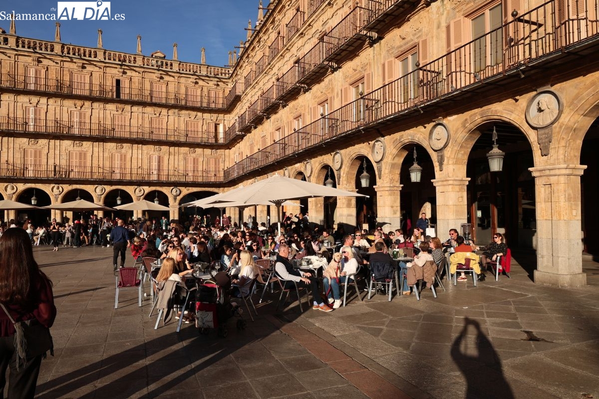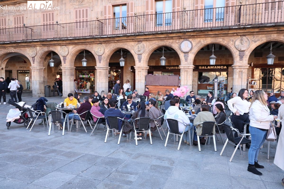 El cambio meteorológico ha propiciado una gran afluencia de salmantinos y turistas en el casco histórico y las terrazas de la ciudad