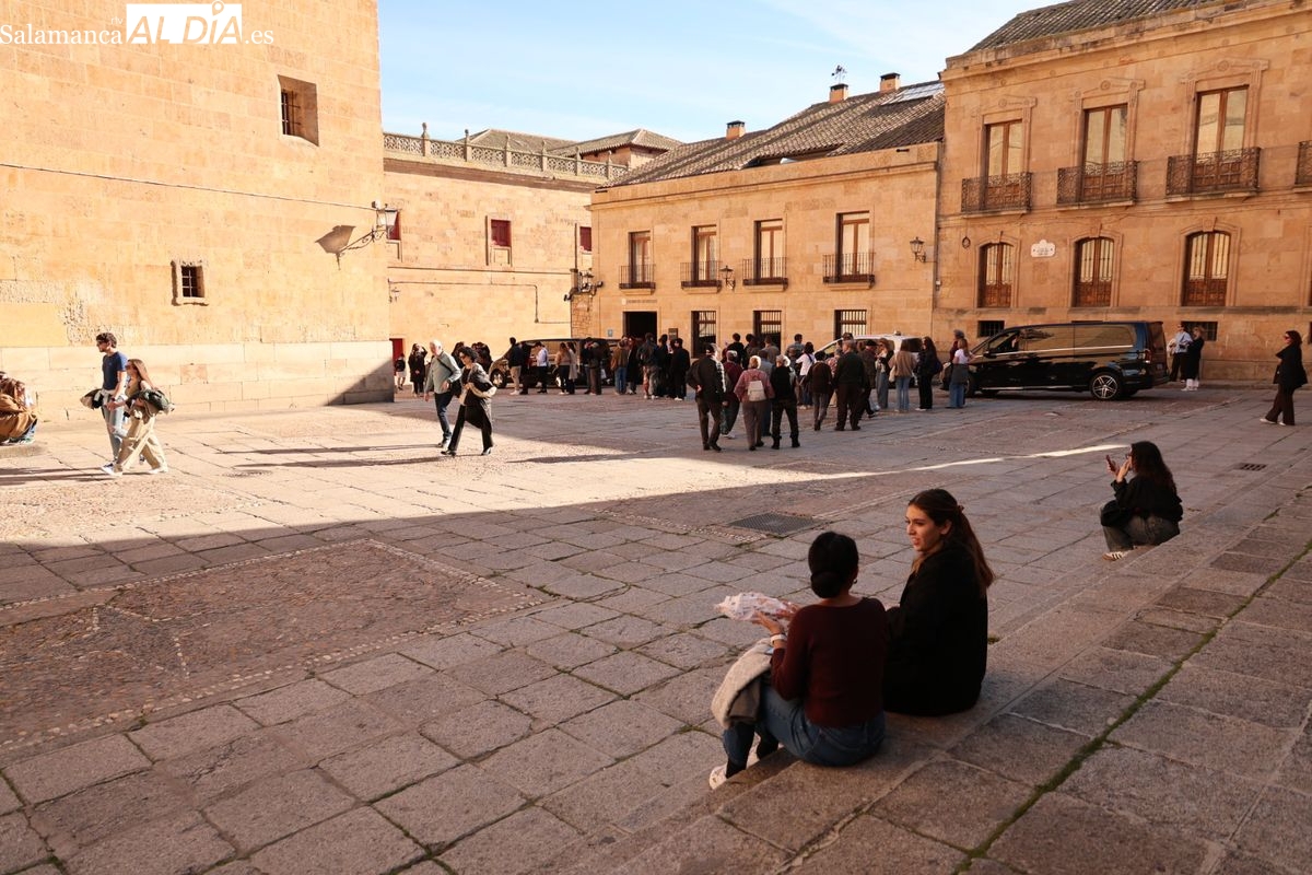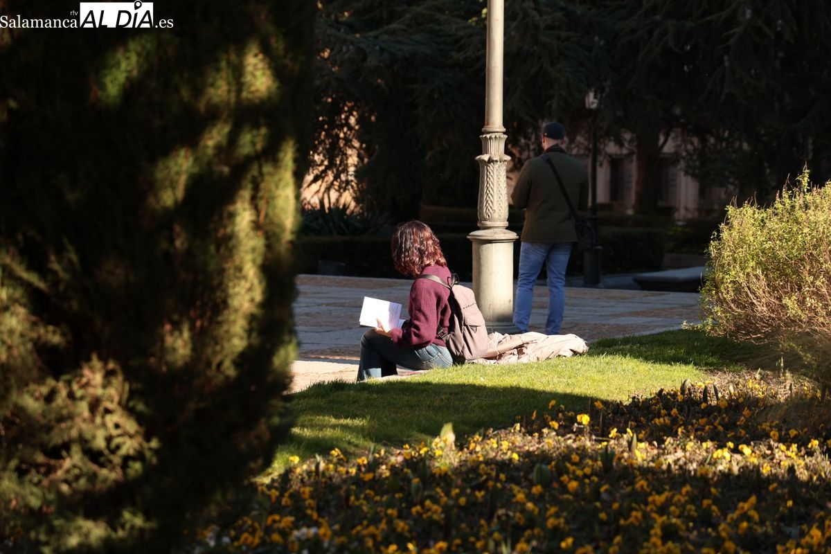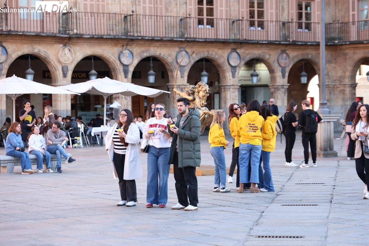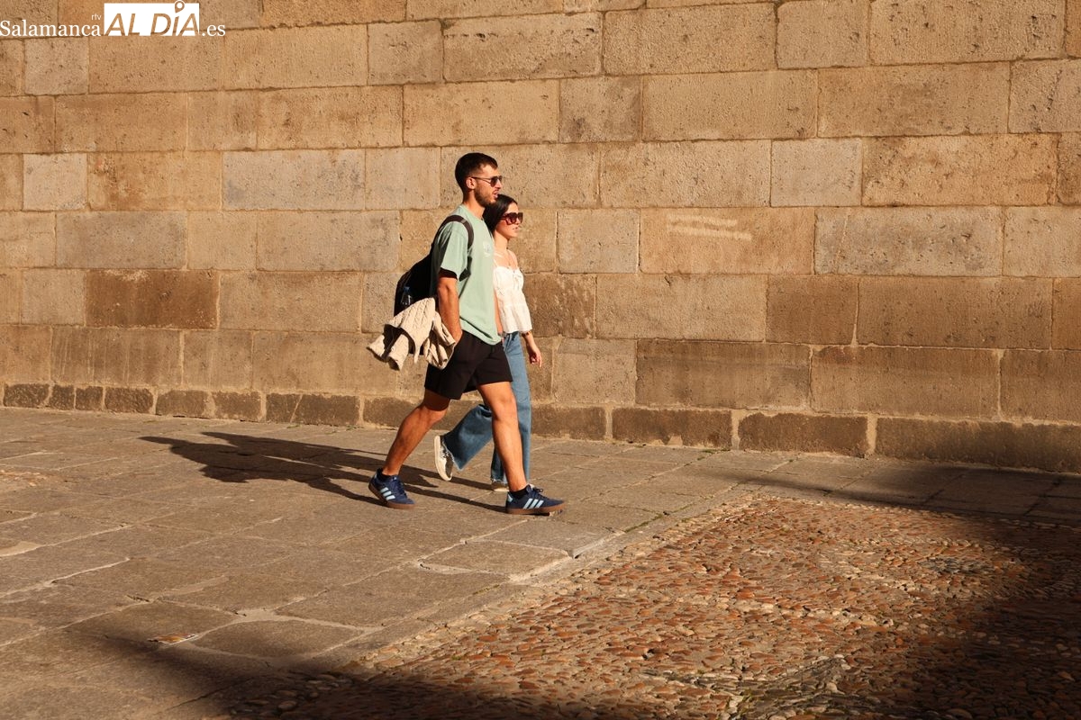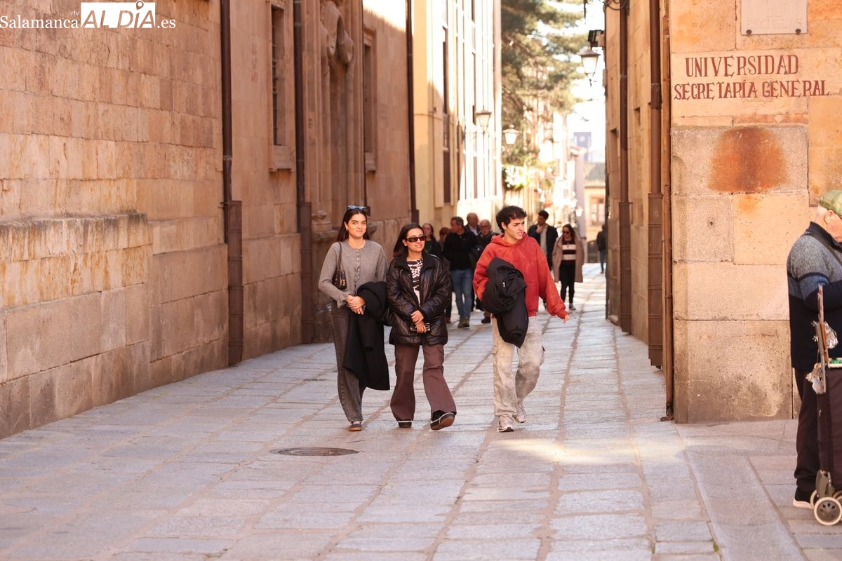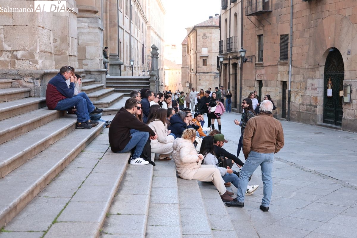 El cambio meteorológico ha propiciado una gran afluencia de salmantinos y turistas en el casco histórico y las terrazas de la ciudad