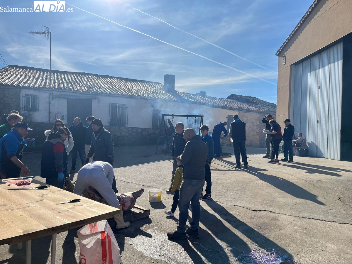 La localidad de Gejo de los Reyes, pedanía perteneciente al municipio de Villaseco de los Reyes, celebró ayer sábado, 21 de febrero, una nueva edición de su Matanza Tradicional. La jornada festiva destacó no solo por la recuperación de las costumbres gastronómicas, sino por registrar una afluencia de público histórica y por el emotivo homenaje rendido a quienes colaboraron en la extinción del incendio sufrido el pasado verano.
