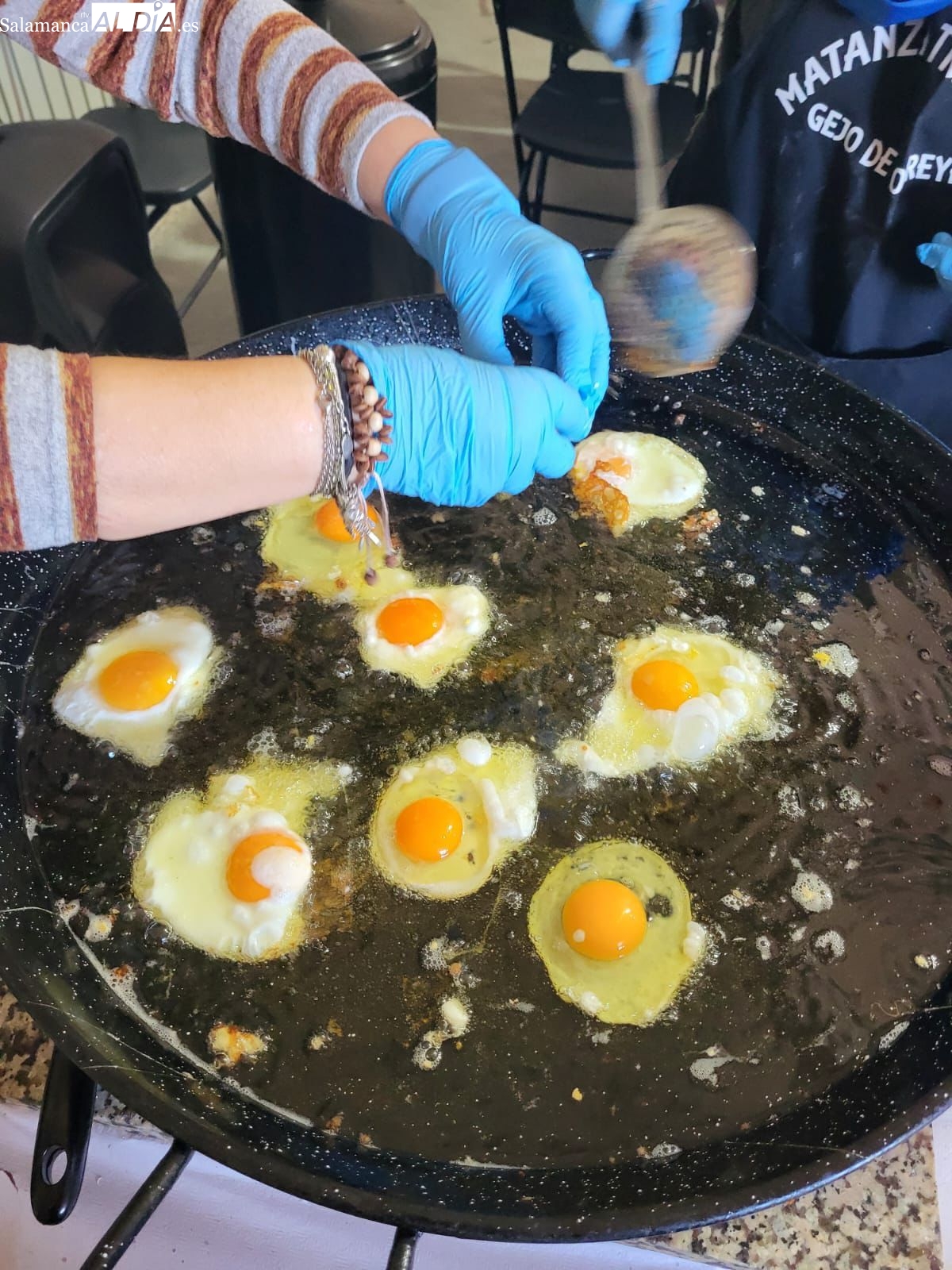En cuanto al programa matancero, organizado por los Vecinos de Gejo de los Reyes con la colaboración del Ayuntamiento de Villaseco, las actividades comenzaron a las 10:00 horas. Para "calentar motores", se ofrecieron perronillas y aguardiente mientras se realizaban las operaciones con el cerdo, ya sacrificado según la normativa, procediendo a su chamuscado con escoba y posterior despiece.