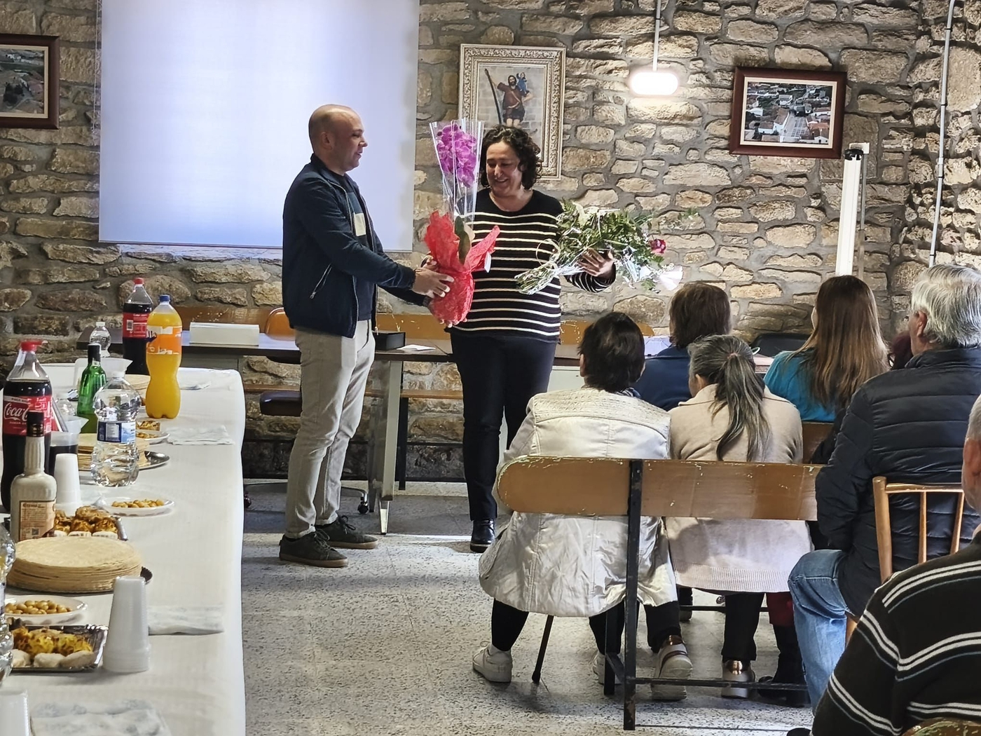 El alcalde y los vecinos han entregado una placa y flores a la sanitaria, destacando su papel fundamental como apoyo moral para los mayores del municipio