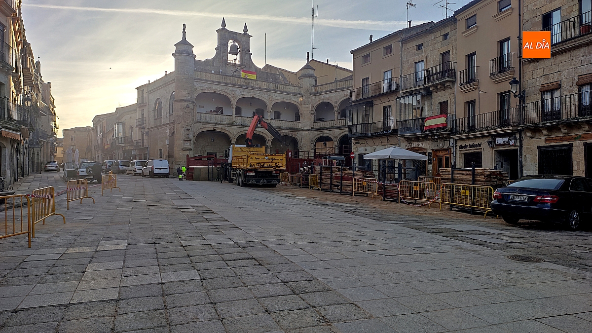 La Plaza Mayor de Ciudad Rodrigo encara estos días el retorno a su fisonomía habitual tras la celebración del Carnaval, aunque este año el proceso se ha visto alterado por contratiempos logísticos y meteorológicos que han prolongado los trabajos más allá de los plazos acostumbrados.